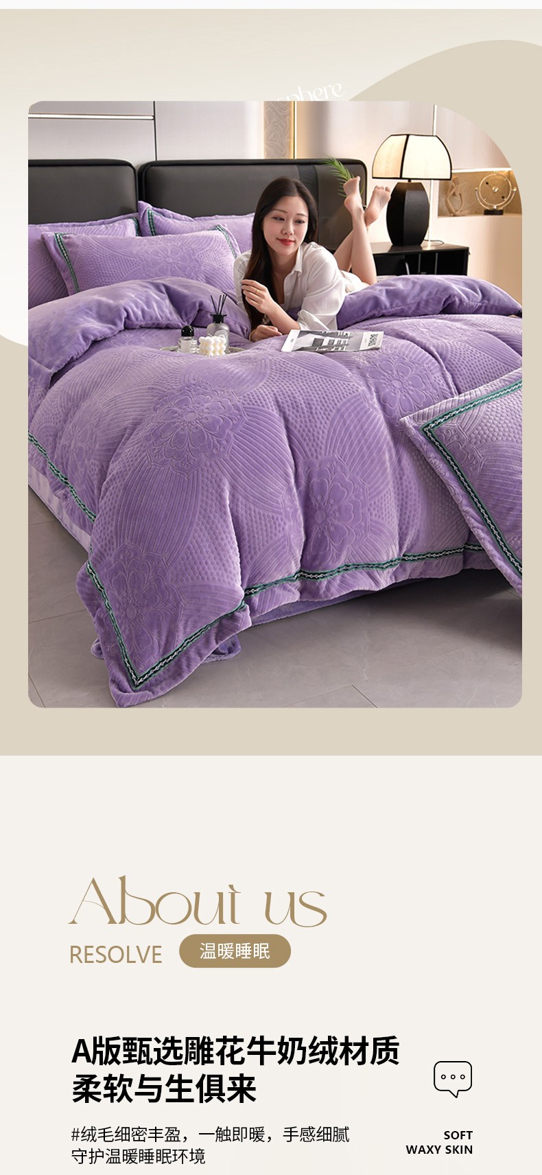 绒耀 2025新款高克重雕花绒四件套 梵迪-魅力紫