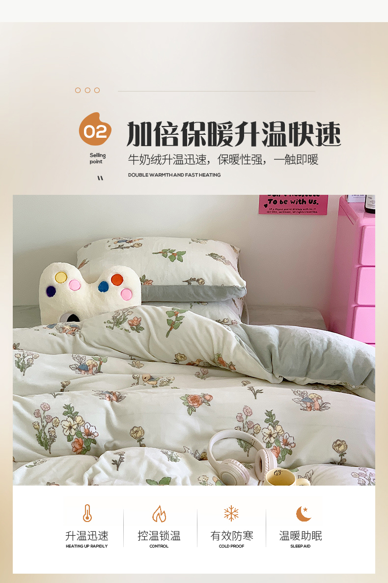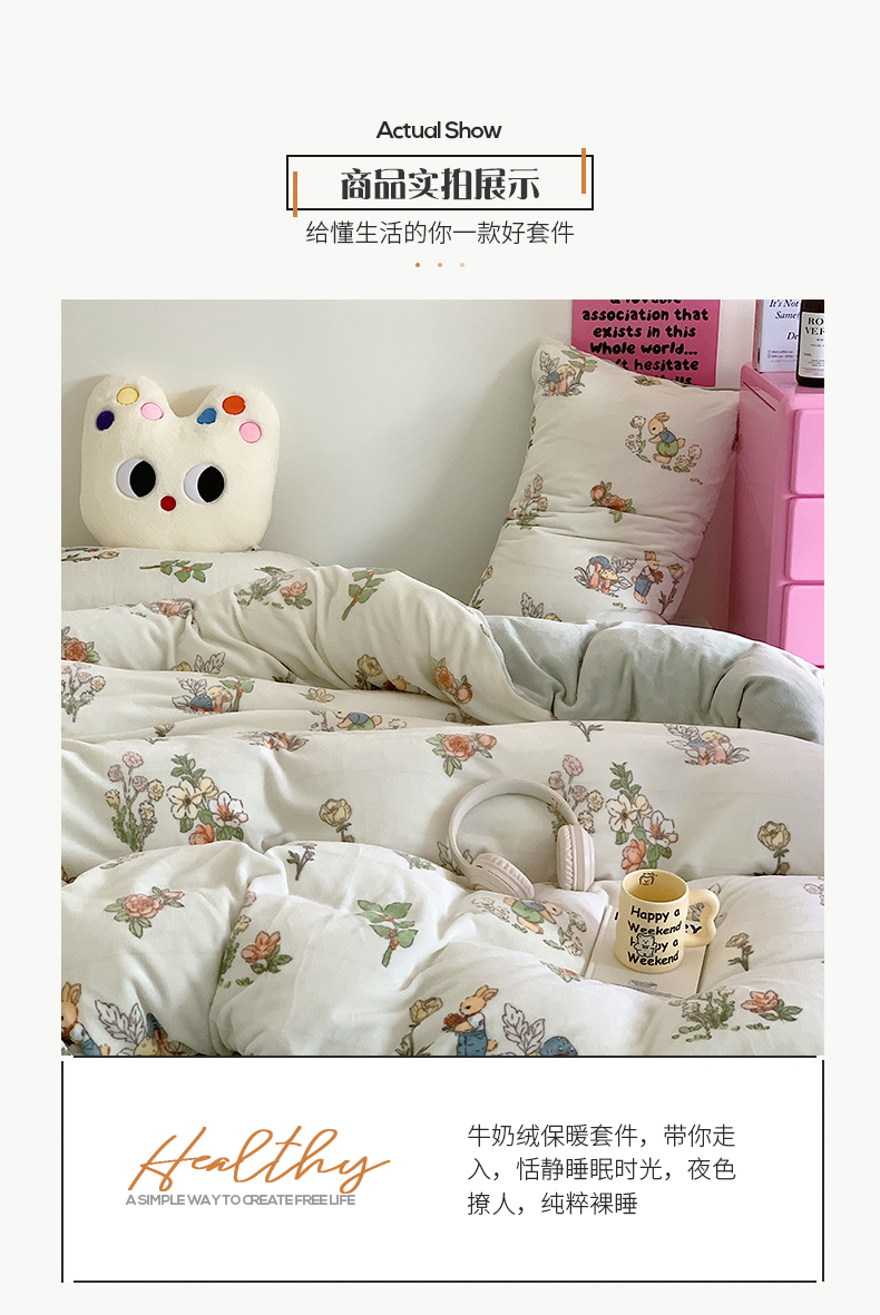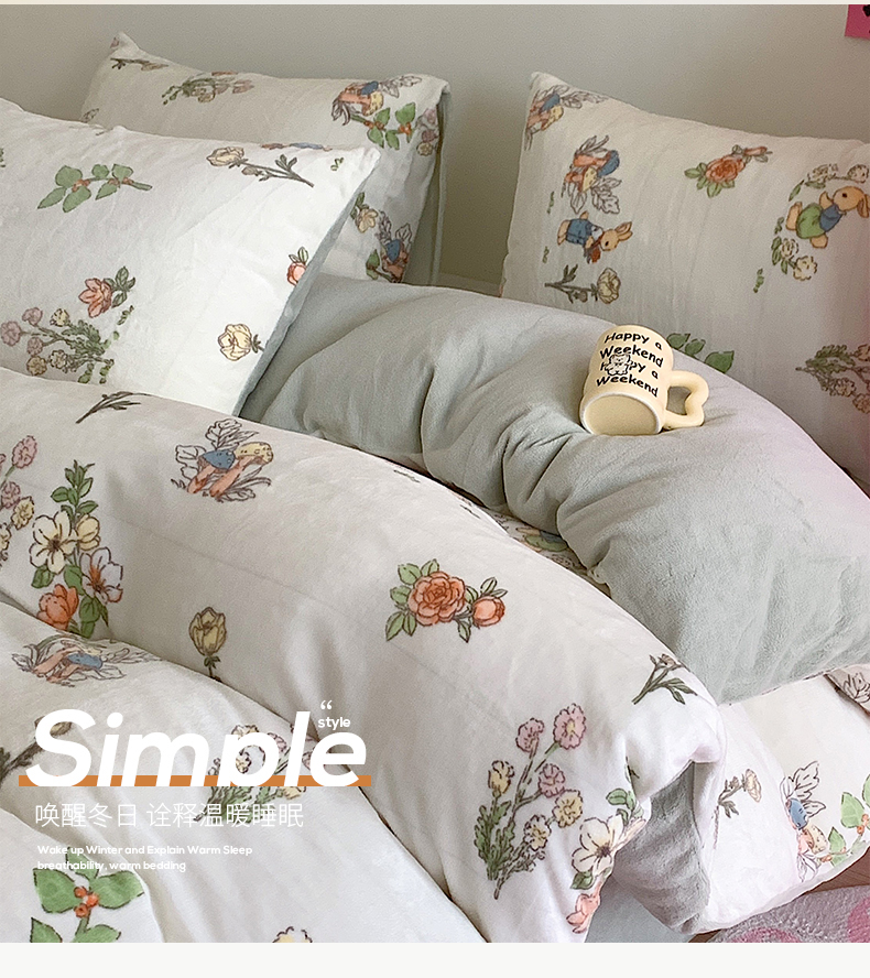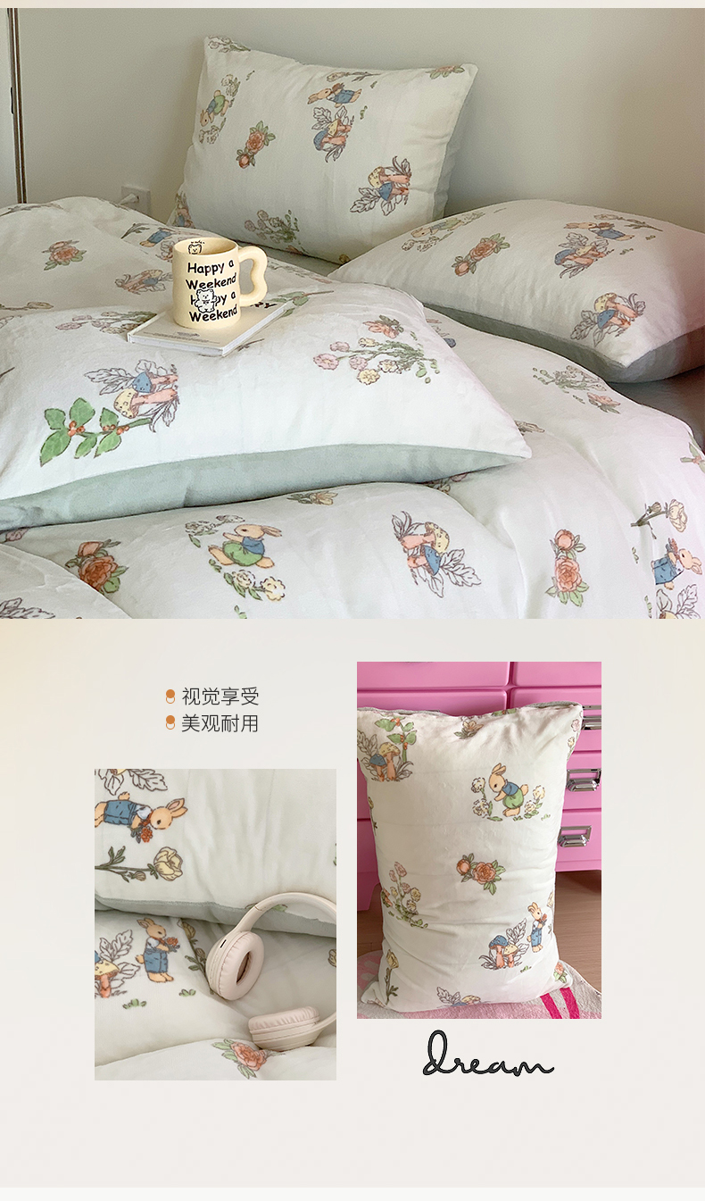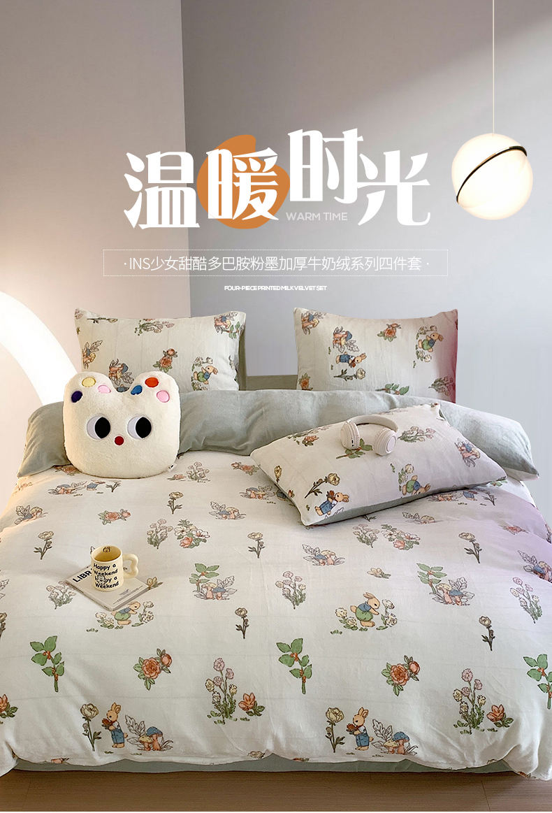 桃子家居 2023新款ins少女甜酷多巴胺粉墨加厚牛奶绒系列四件套 绒-彼得兔花园
