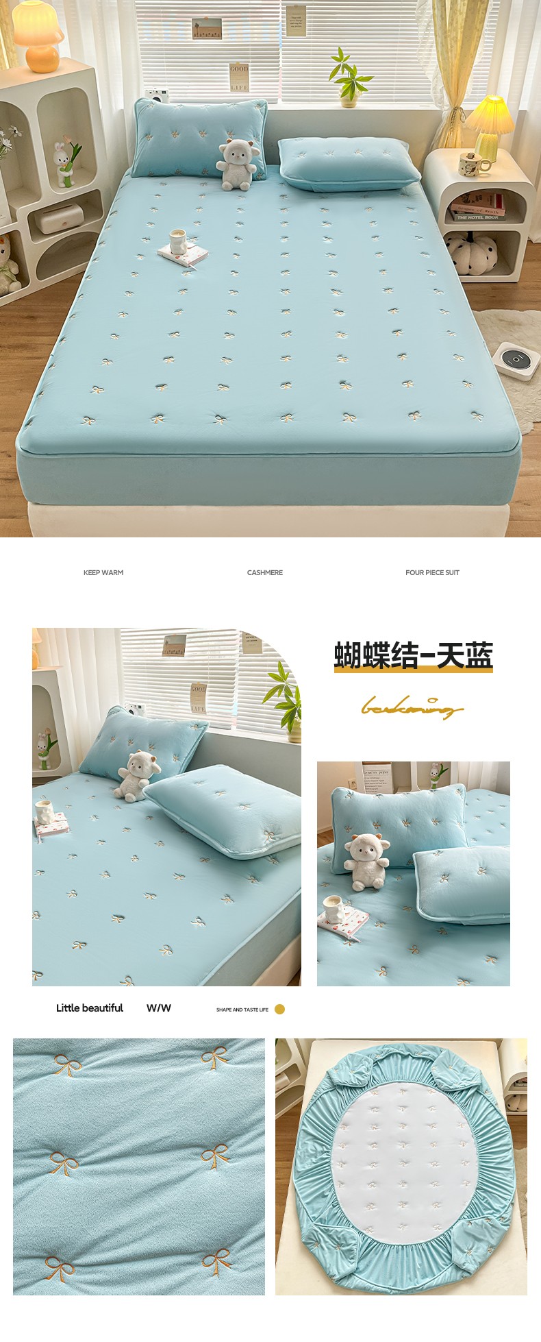 当前位置: 91家纺网 > 商品网购 > 床上用品 > 床笠 > 宇航2023新款婴儿绒宝宝绒牛奶绒夹棉绣花床笠三件套 蝴蝶结—天蓝