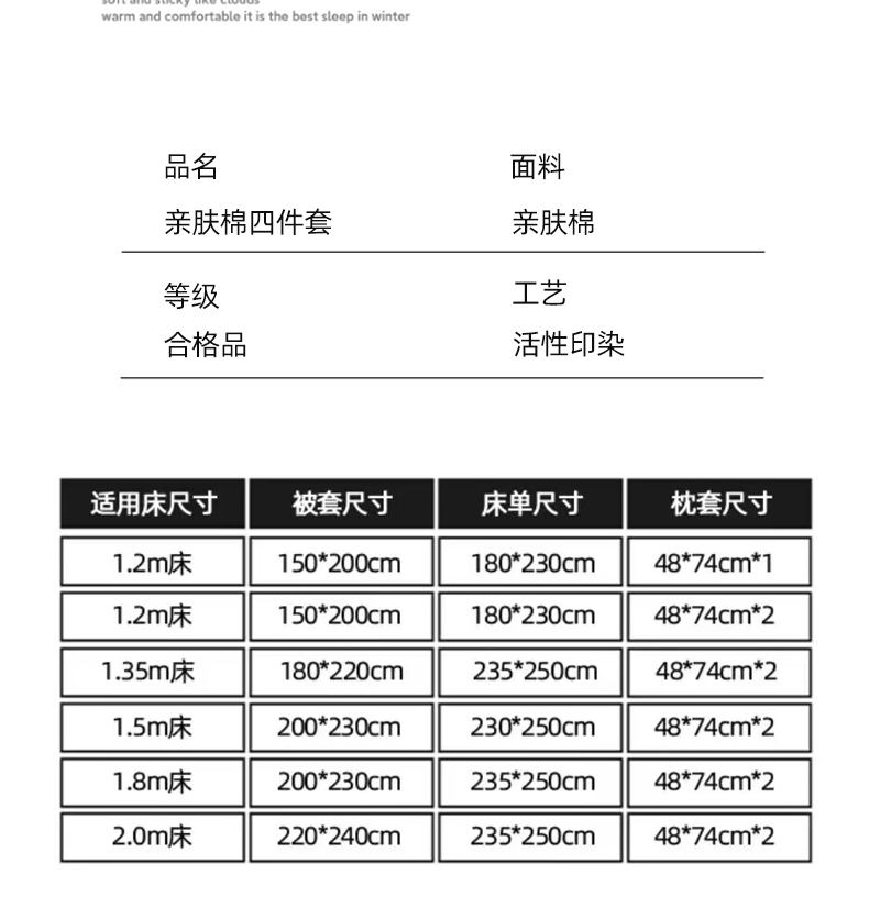 1.8m床单款四件套(被套200x230cm) | ¥40.00 |