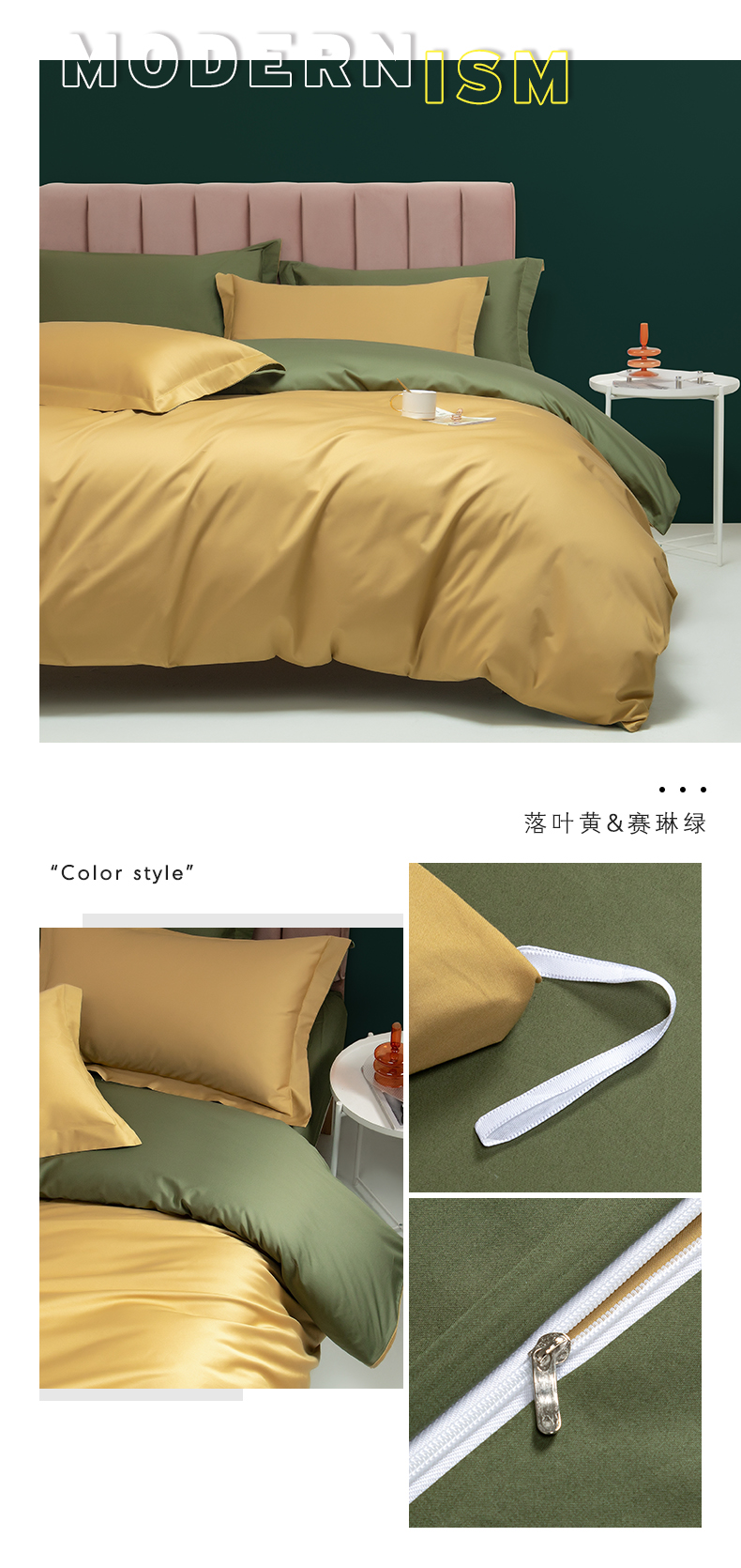 云栖家居 2023A类长绒棉纯色单被套 落叶黄&赛琳绿