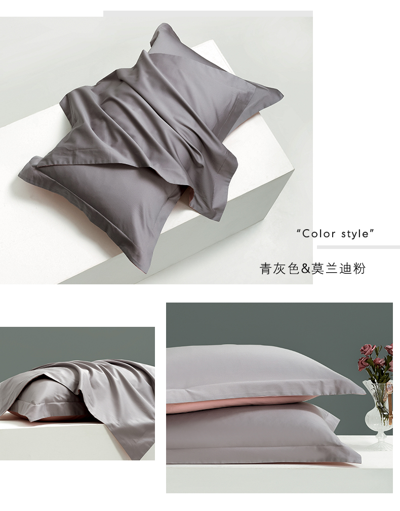 商品名称:云栖家居 2023A类长绒棉纯色单枕套 青灰色&莫兰迪粉