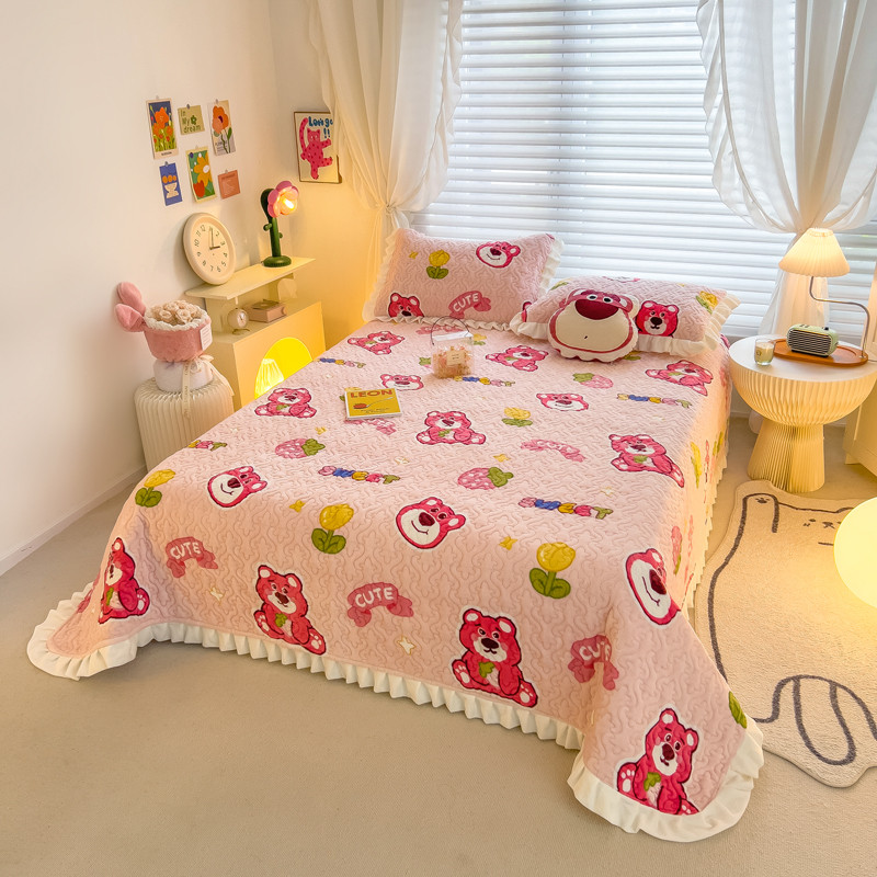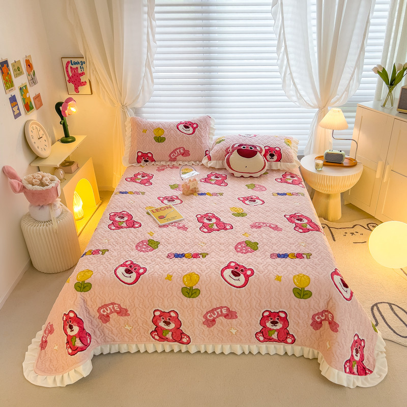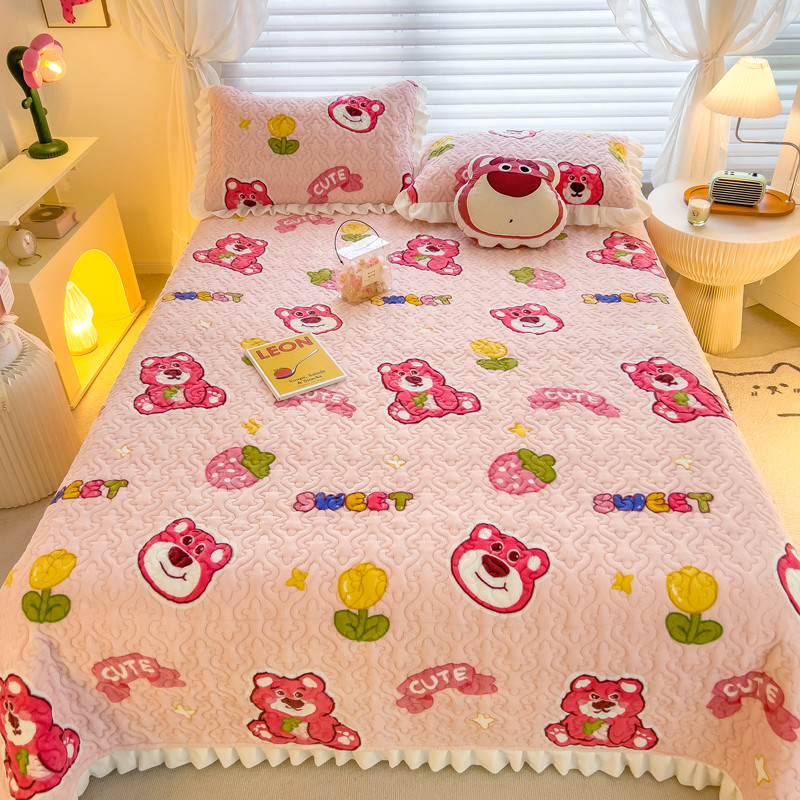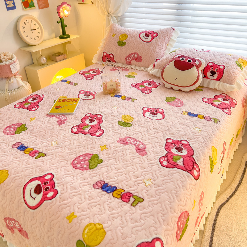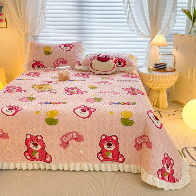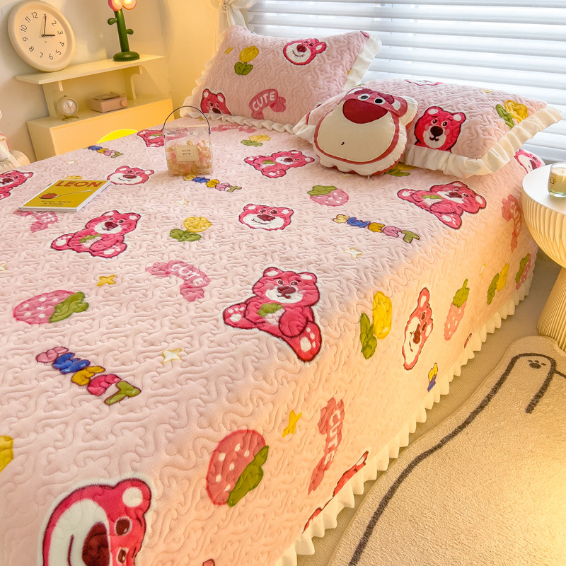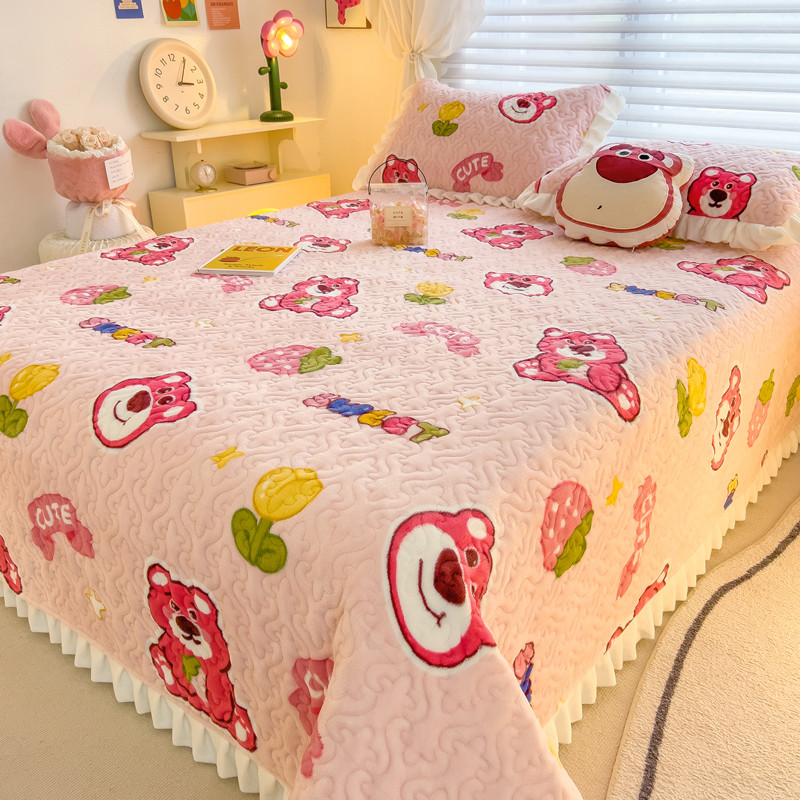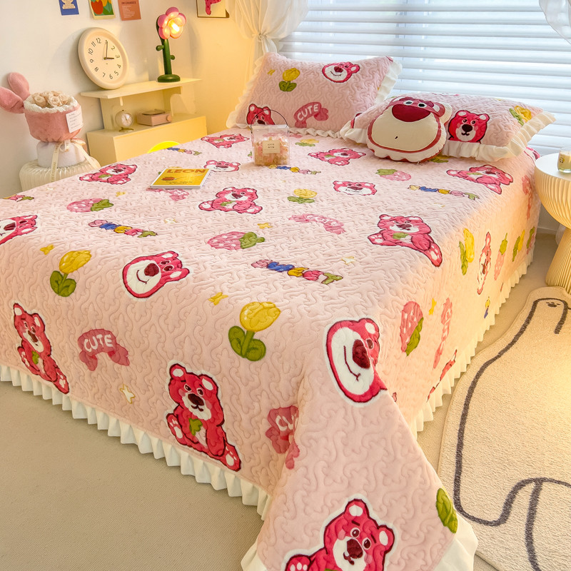 梵朴 2023年新款牛奶绒夹棉床盖 甜蜜熊仔