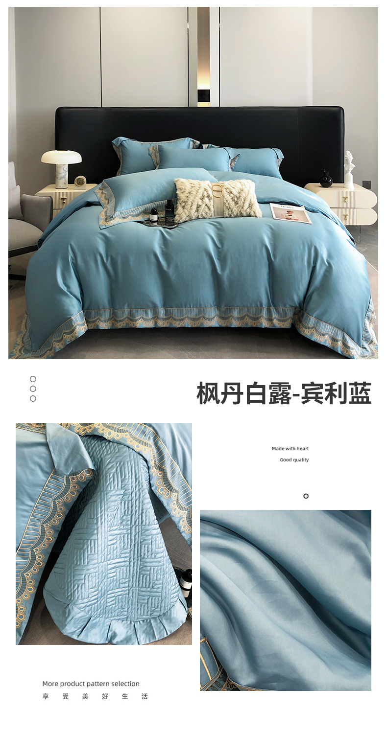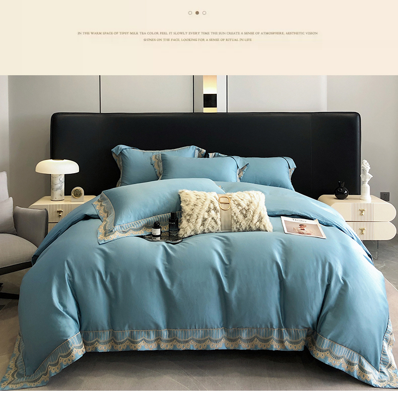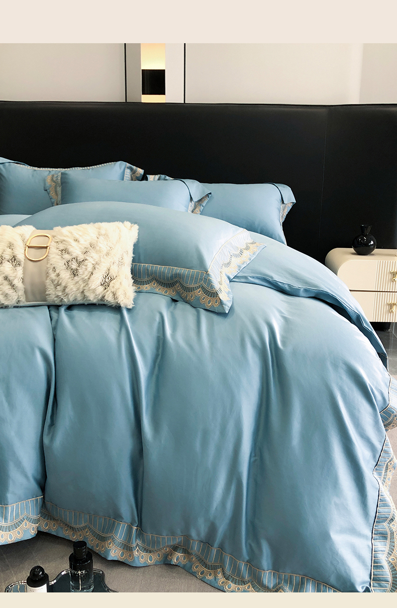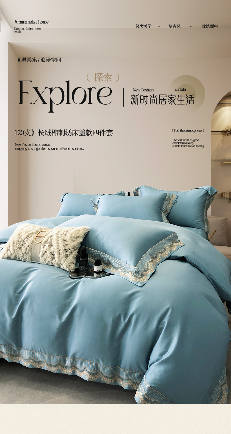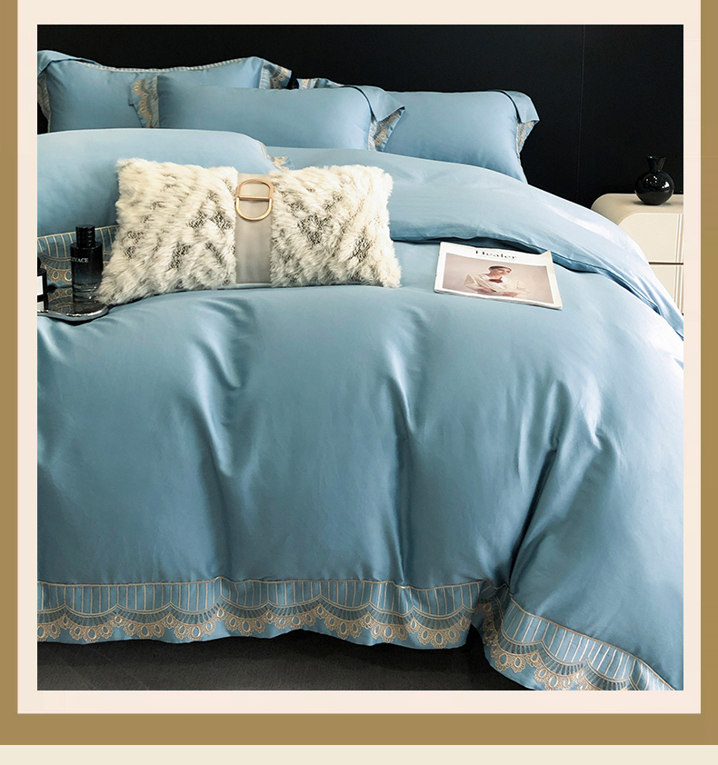商品名称:保罗圣迪奥 120支长绒棉刺绣床盖款四件套 枫丹白露-宾利蓝