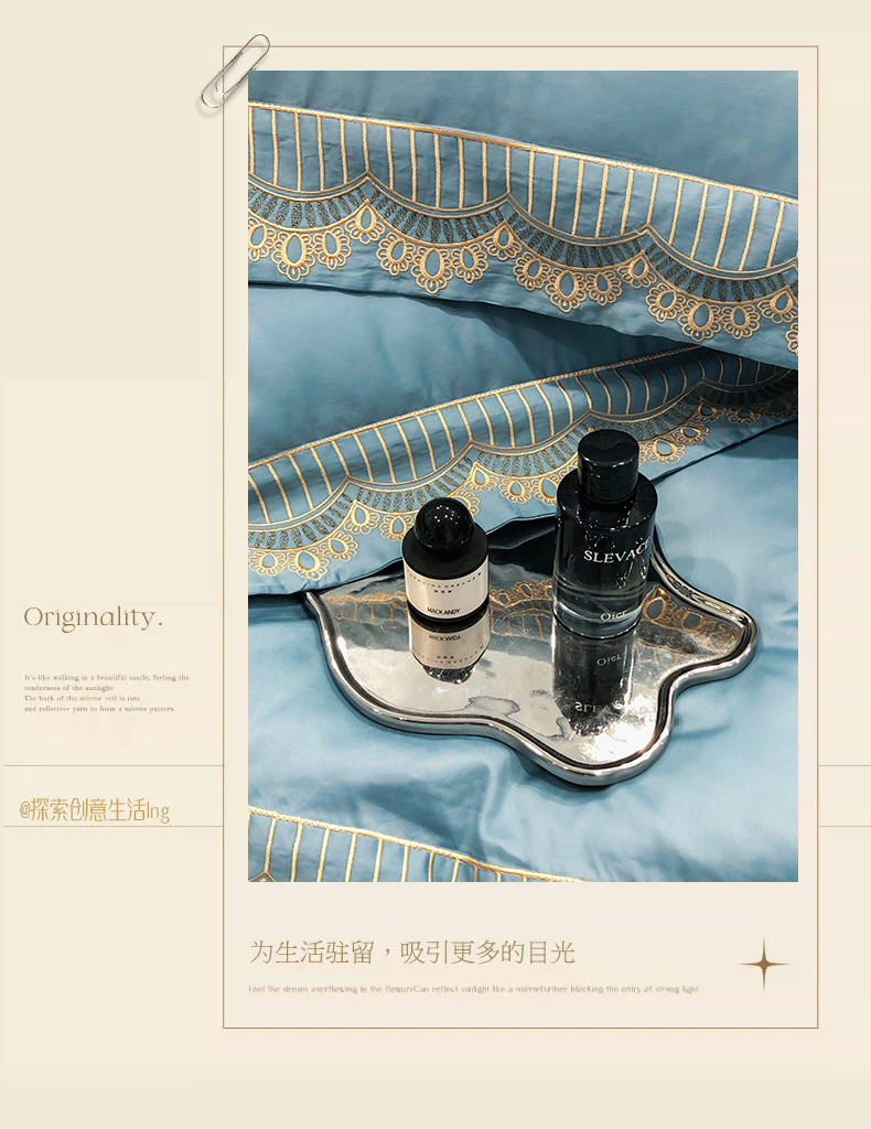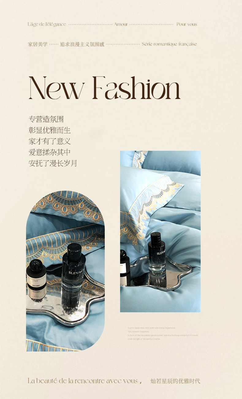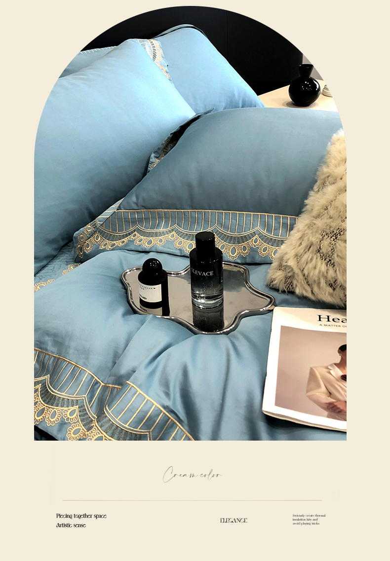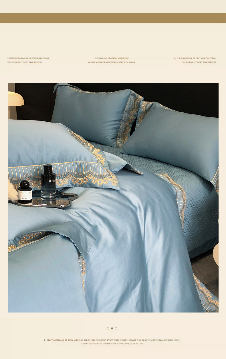 商品名称:保罗圣迪奥 120支长绒棉刺绣床盖款四件套 枫丹白露-宾利蓝