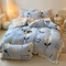 商品名称:潘朵拉家纺 2023新款雕花韩式华夫格花边牛奶绒四件套 小情调(蓝)