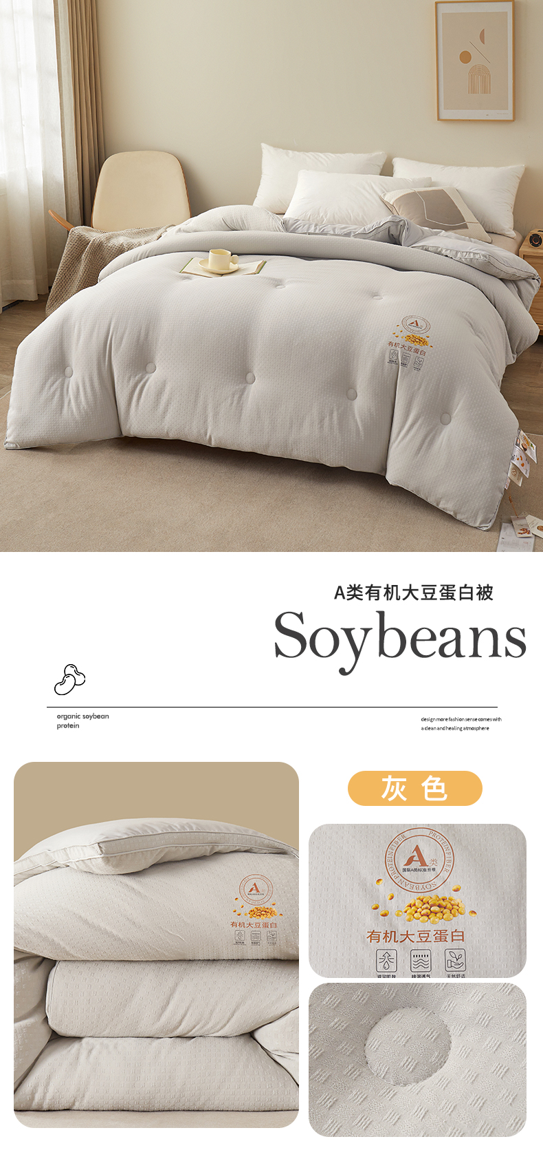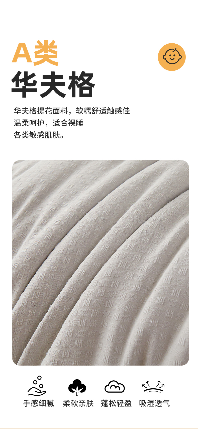 伊被源 2023秋冬新款A类母婴级有机抗菌大豆蛋白被 被子被芯---华夫格田园 灰色