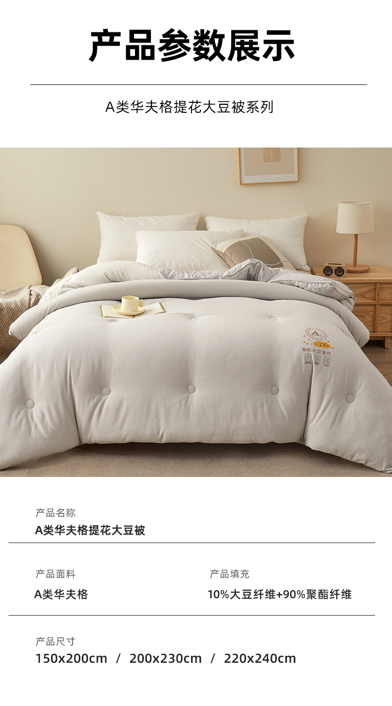• 91家纺网 家纺一手货源 找家纺 伊被源 2023秋冬新款A类母婴级有机抗菌大豆蛋白被 被子被芯---华夫格田园 灰色