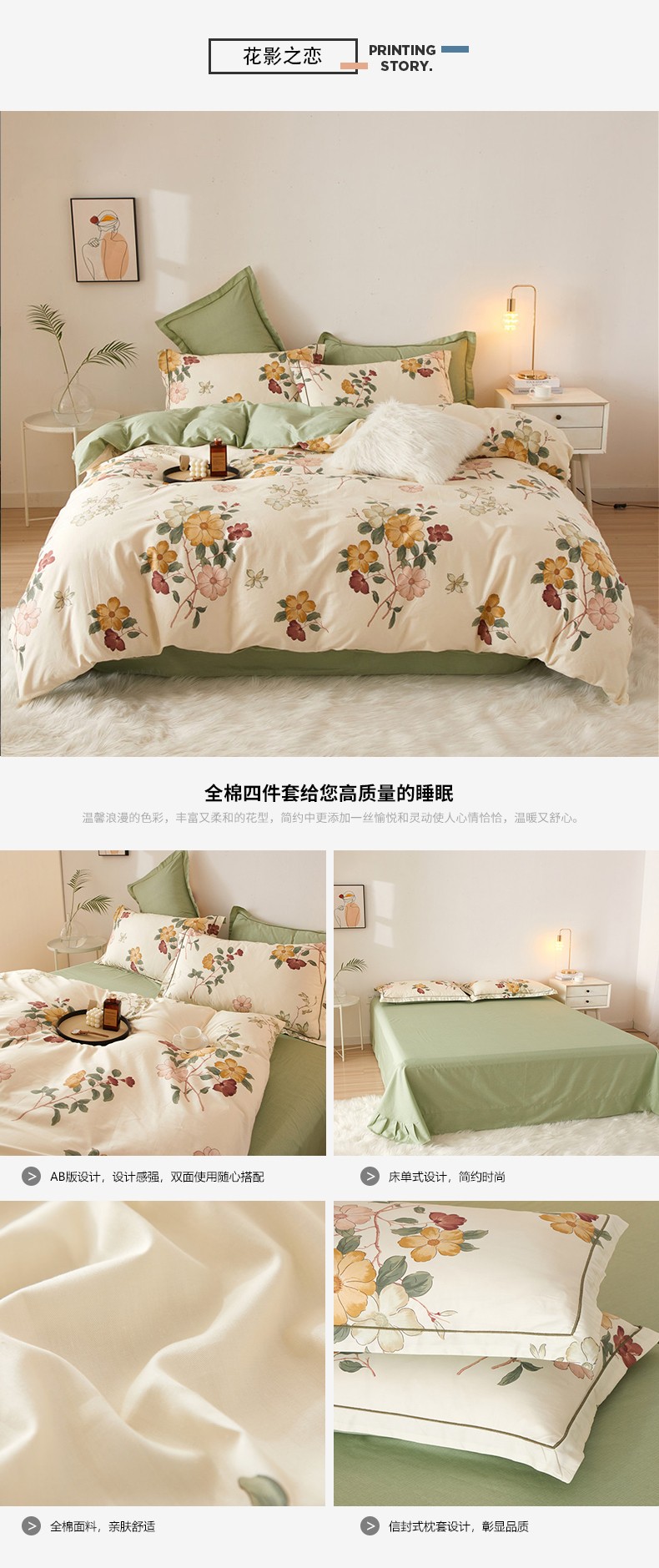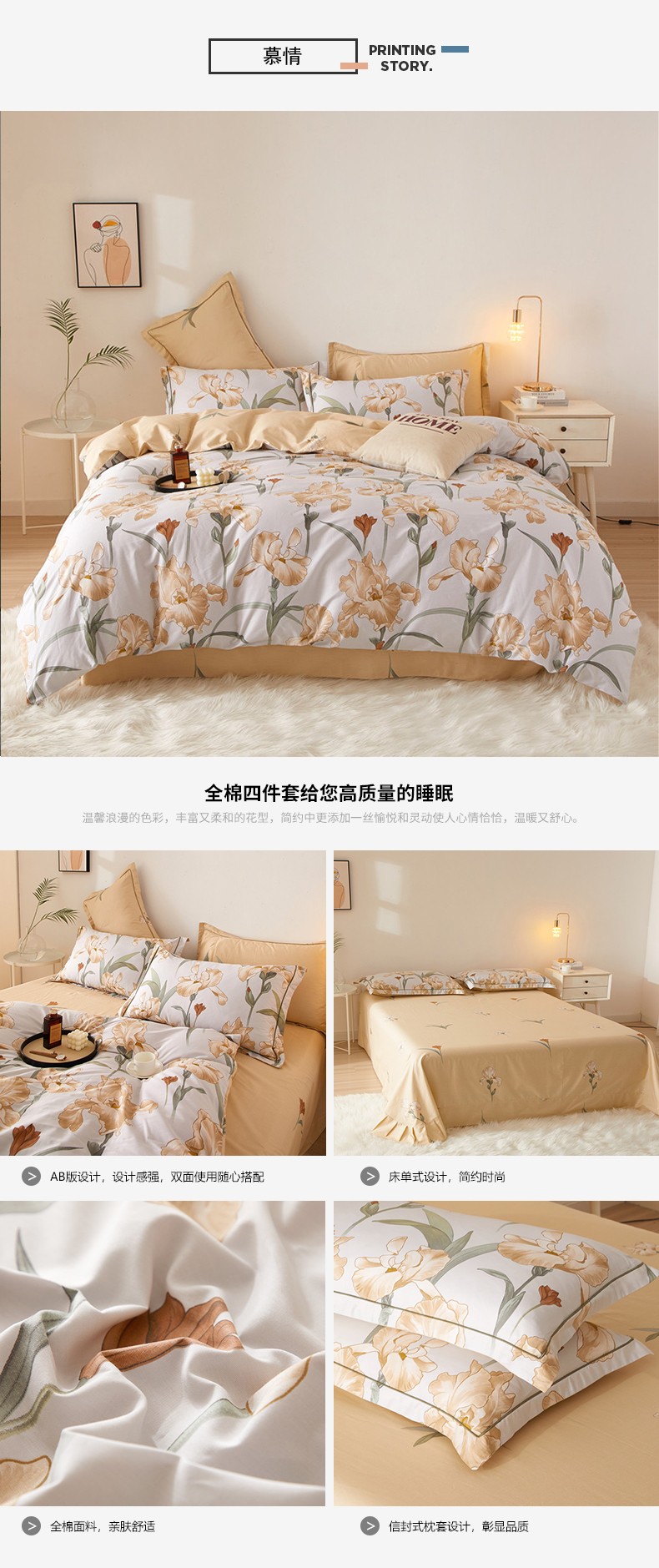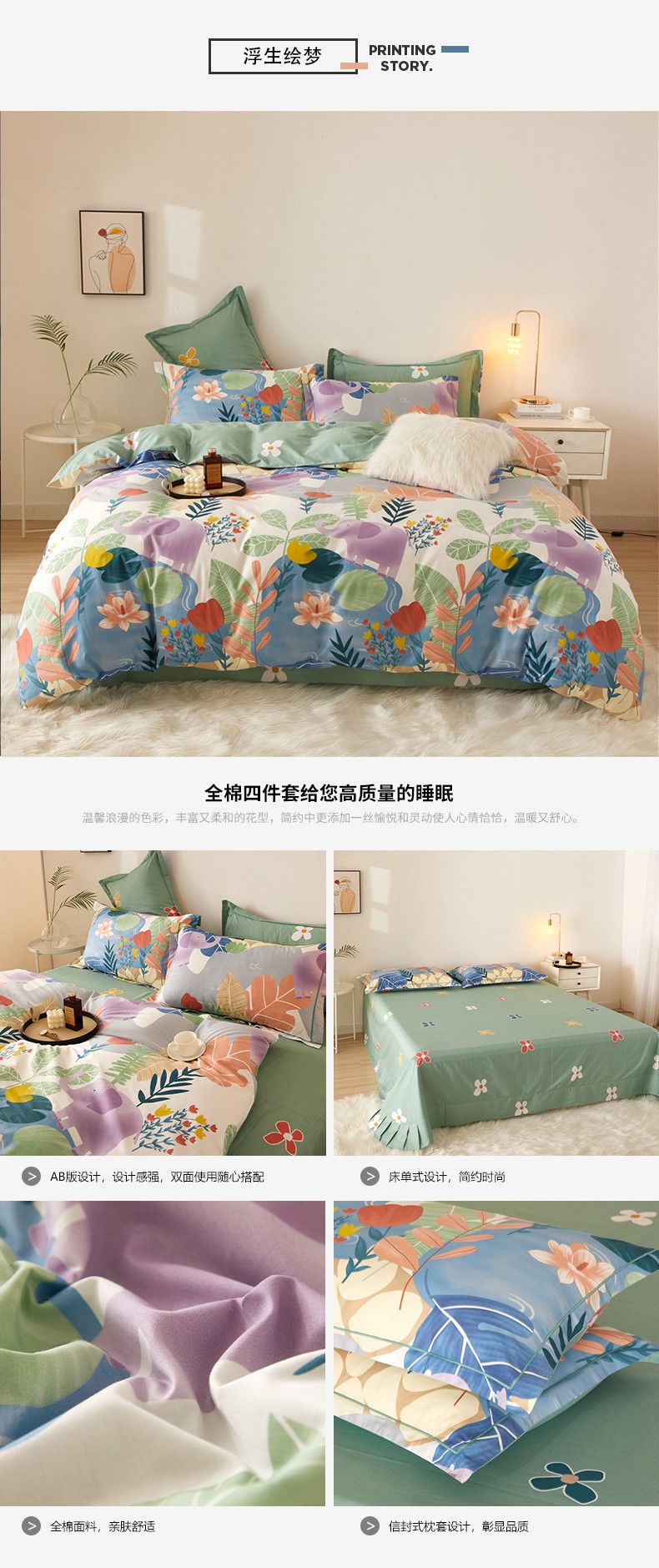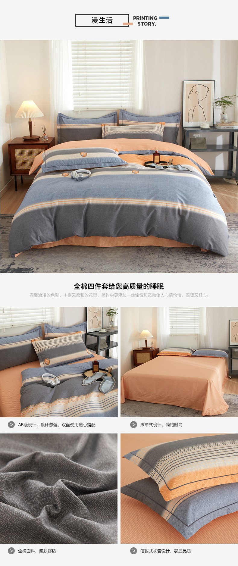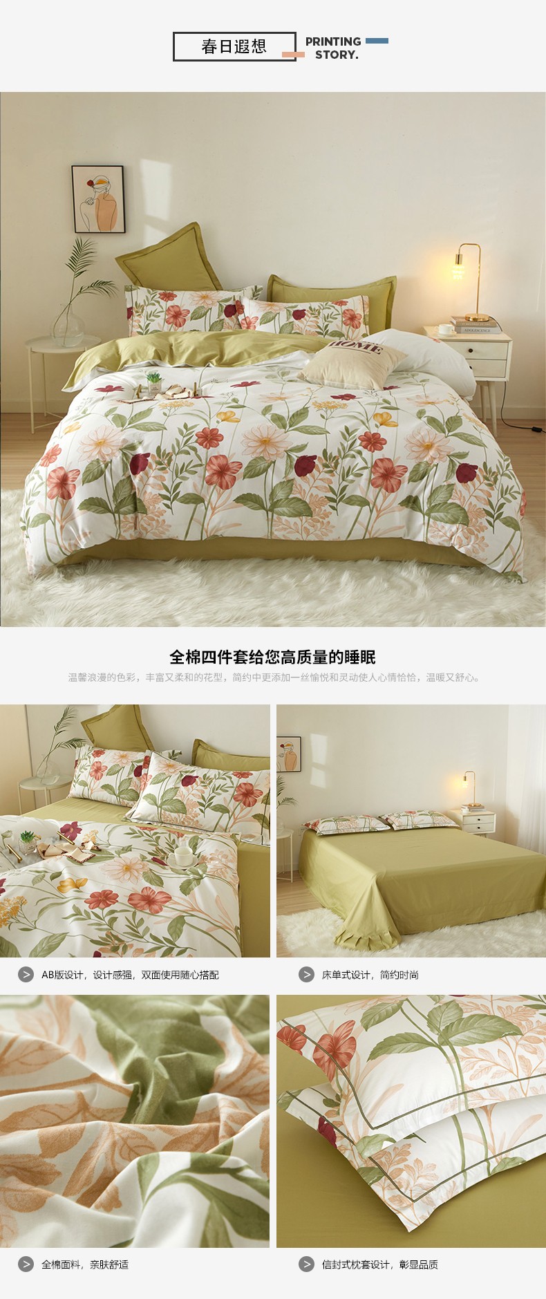 (总)沐白 2023全棉13376花卉条格系列印花四件套
