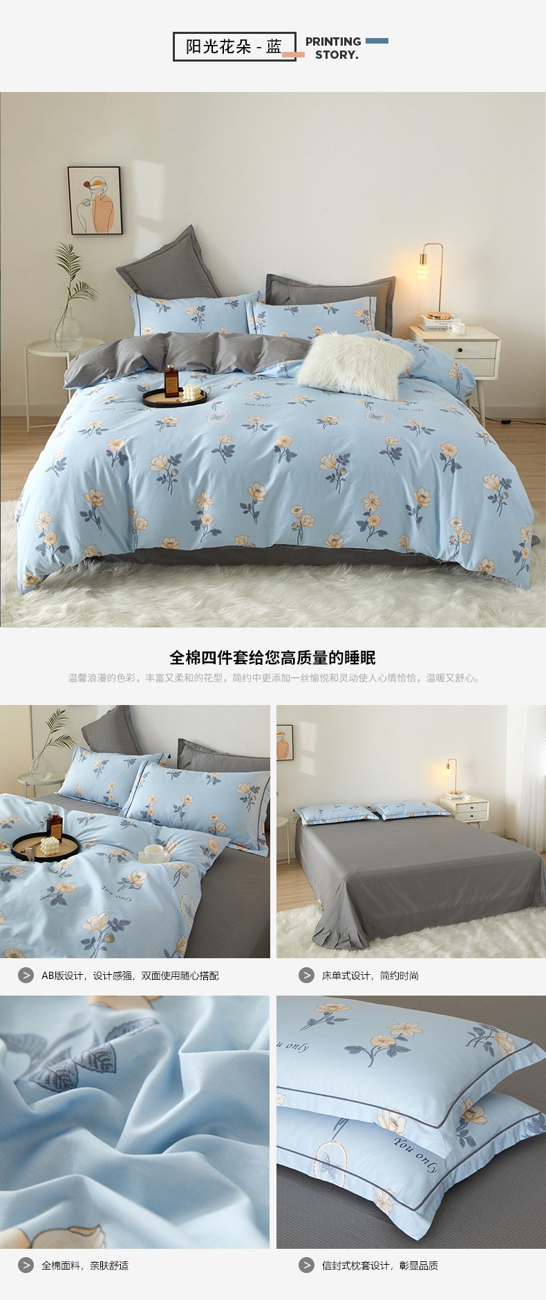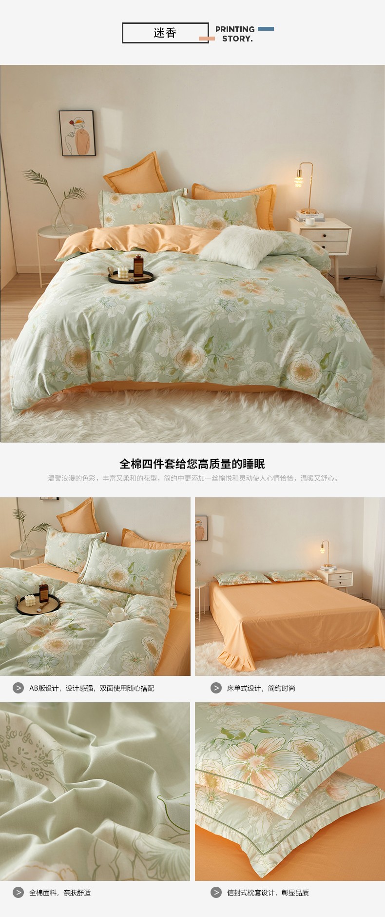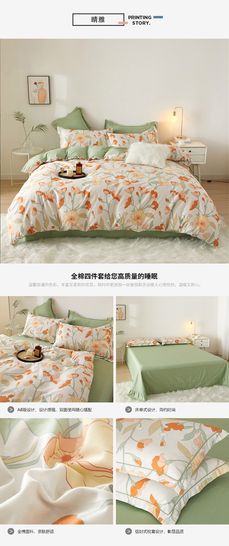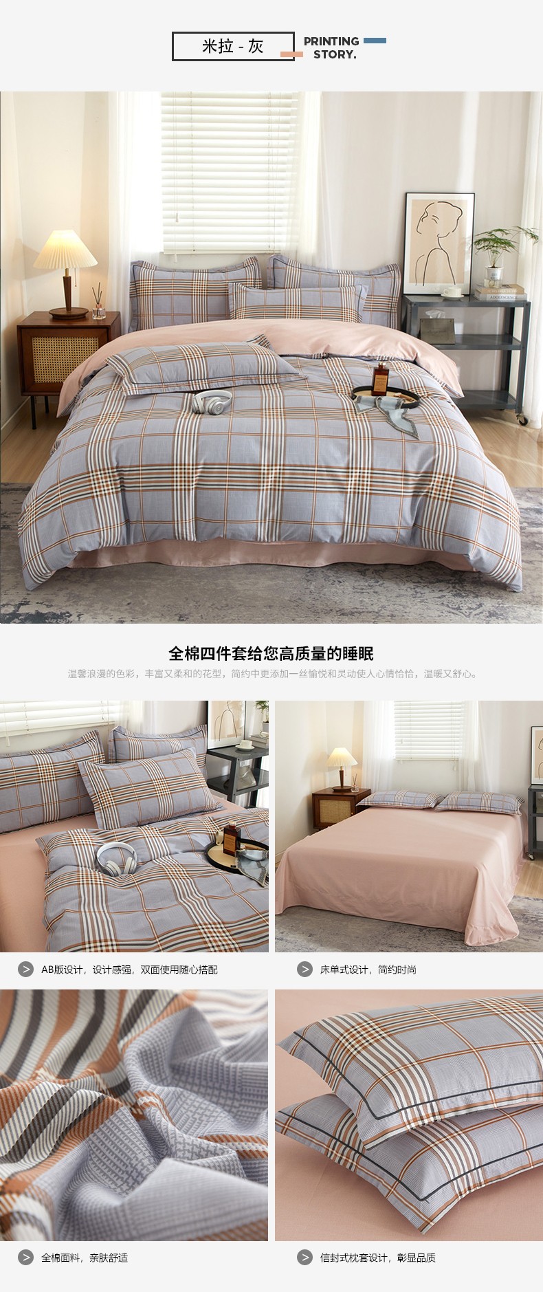 (总)沐白 2023全棉13376花卉条格系列印花四件套