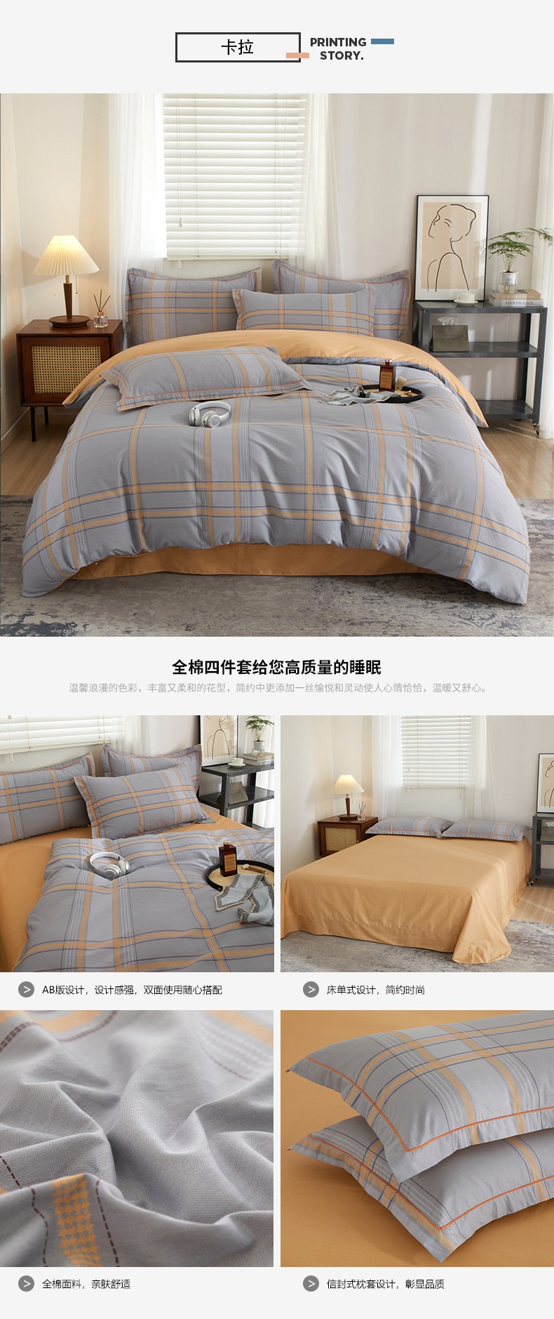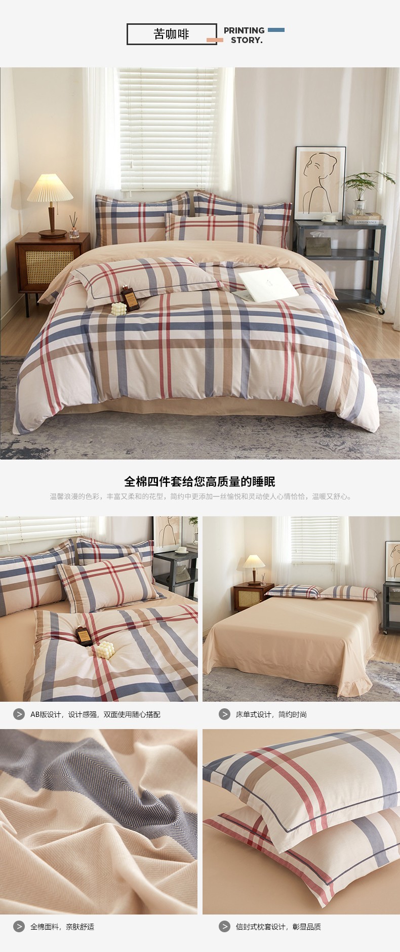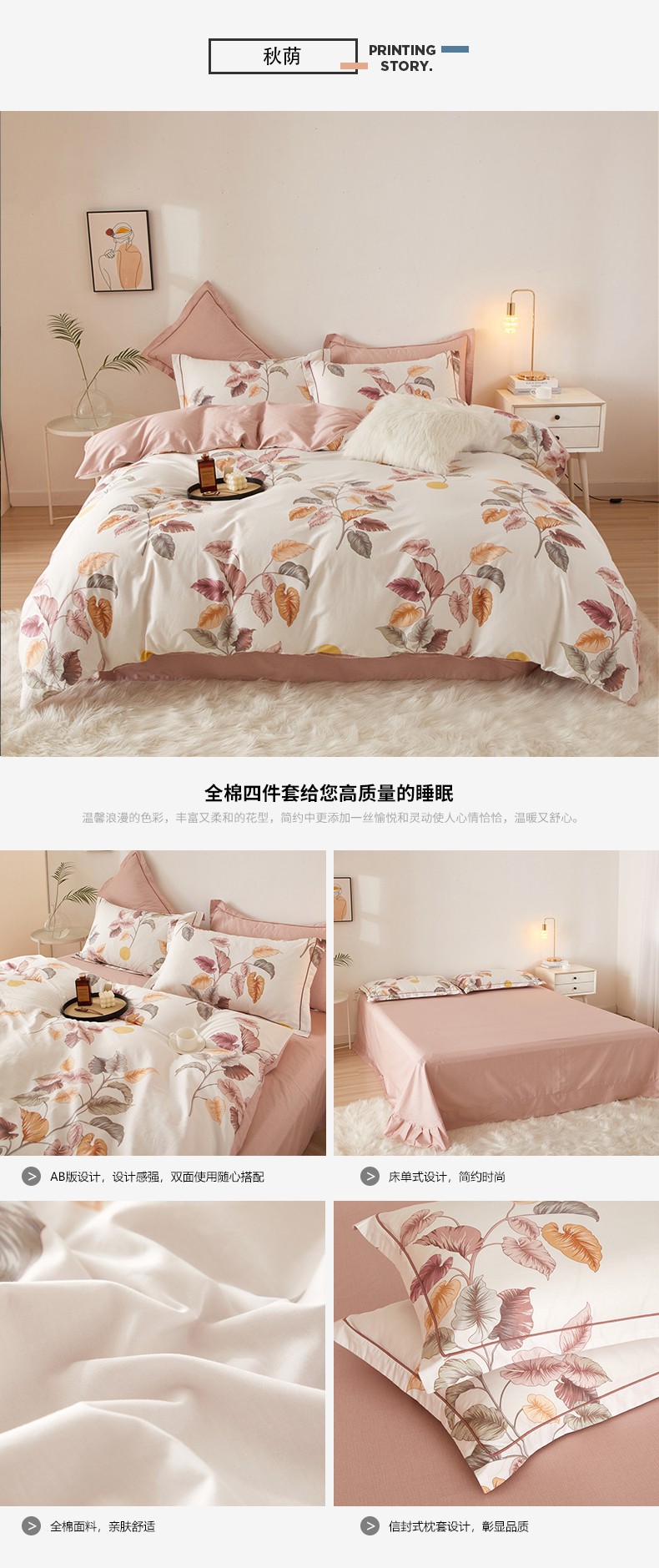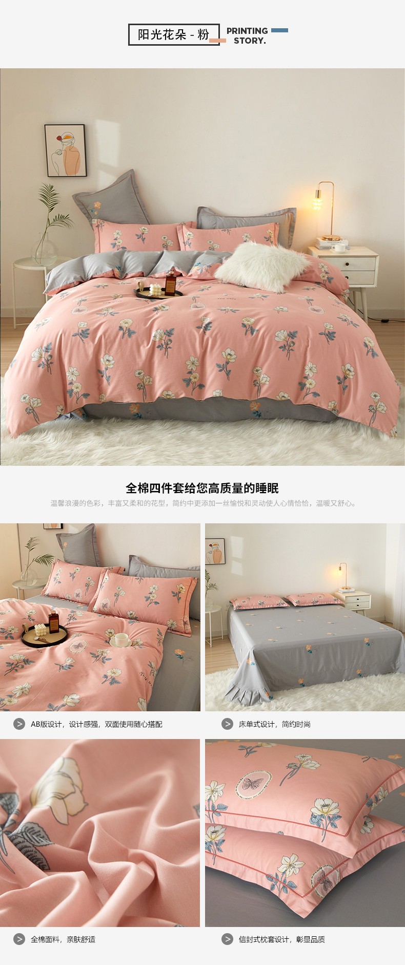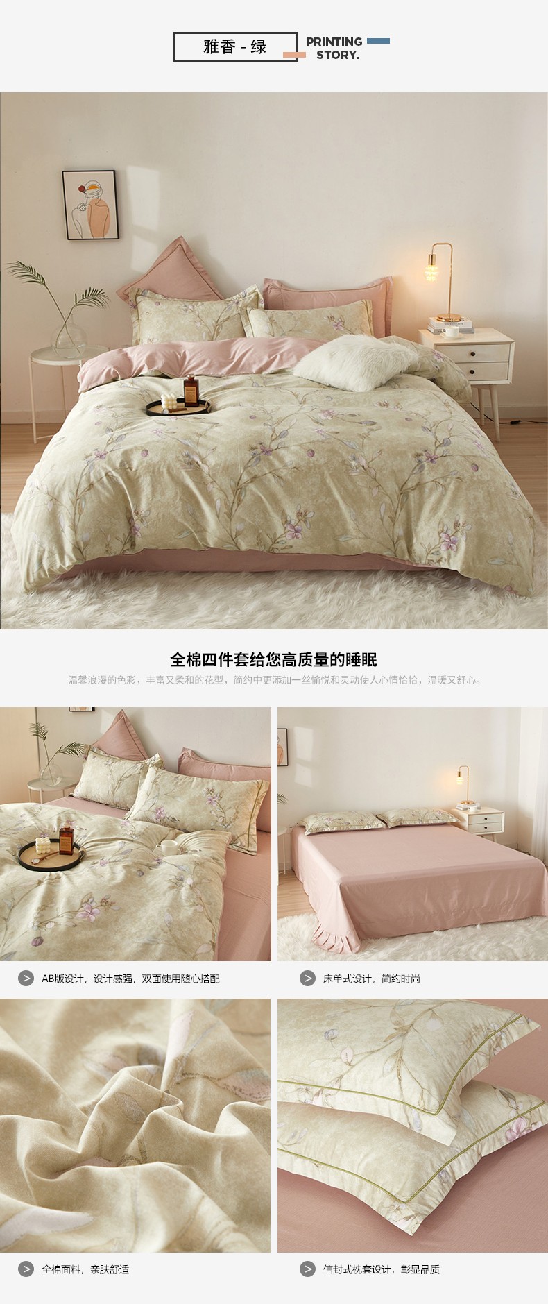 (总)沐白 2023全棉13376花卉条格系列印花四件套
