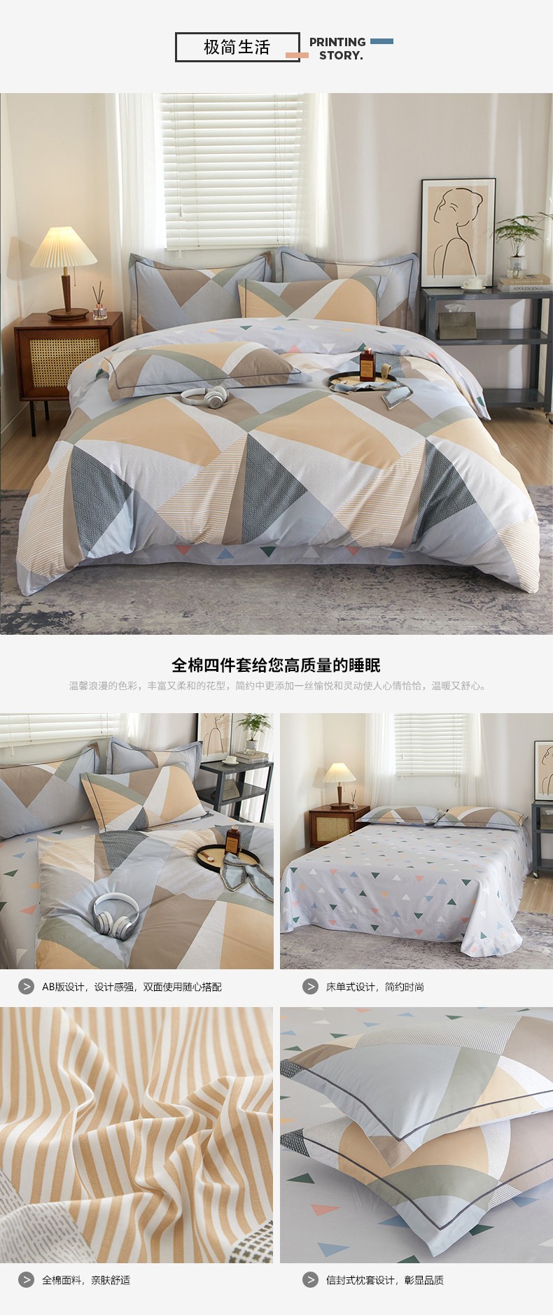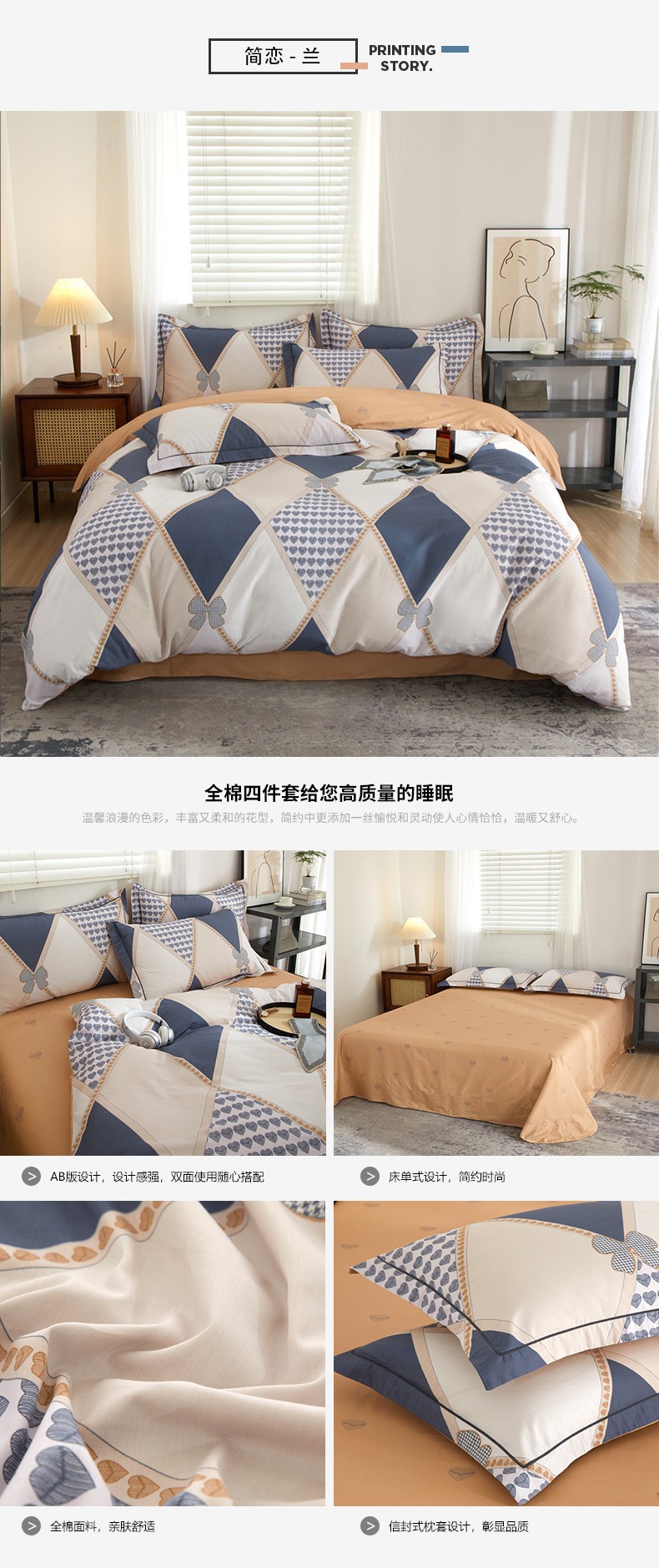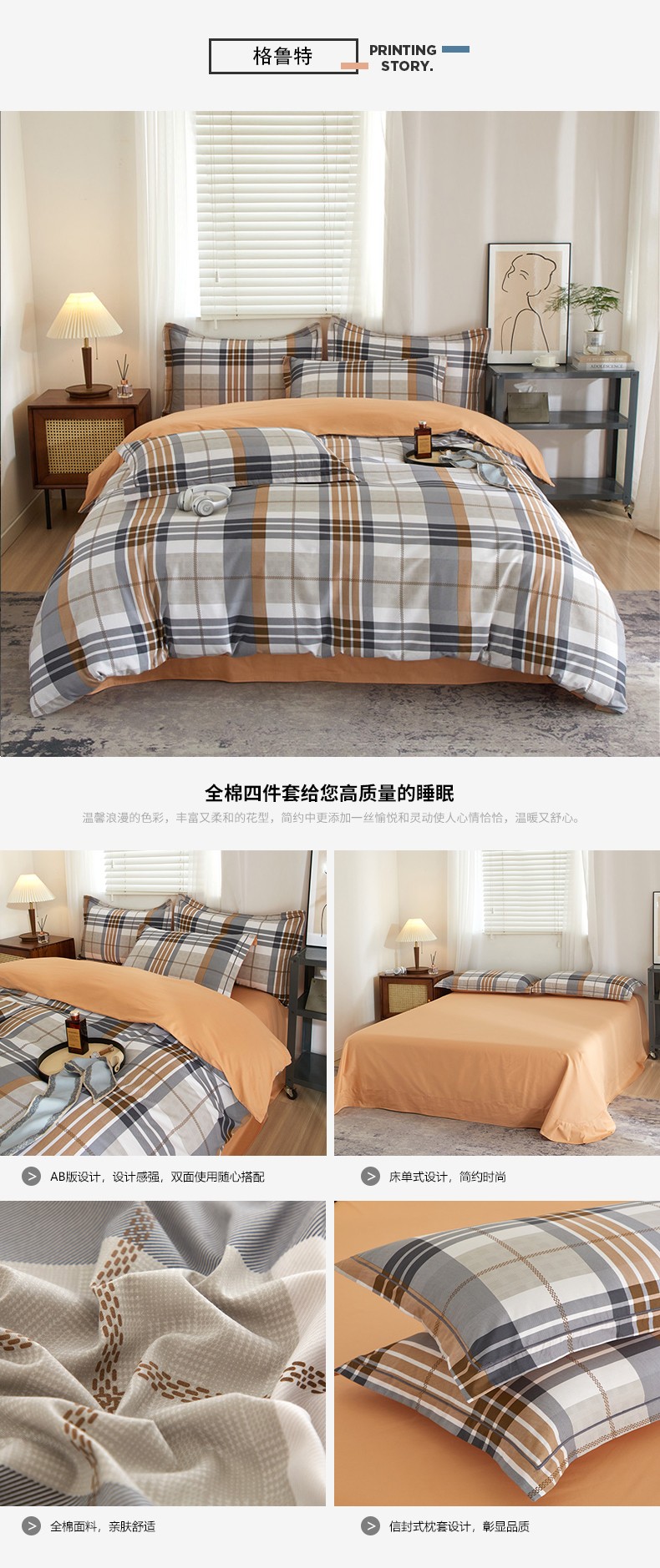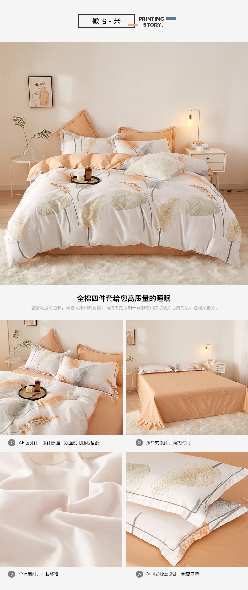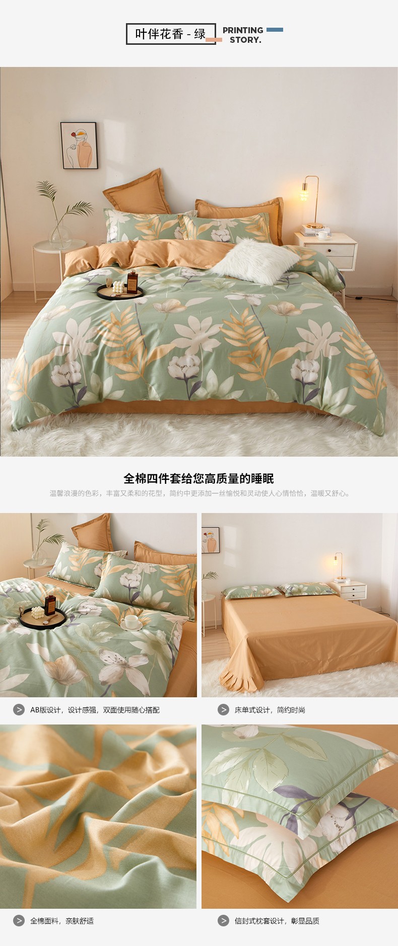 (总)沐白 2023全棉13376花卉条格系列印花四件套