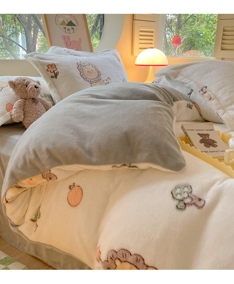 (总)2025新款牛奶绒+全棉毛巾绣四件套,背篓熊猫,乖乖熊,蔬菜庄园,甜甜圈,小比熊,摇摇马