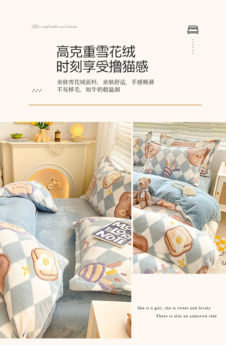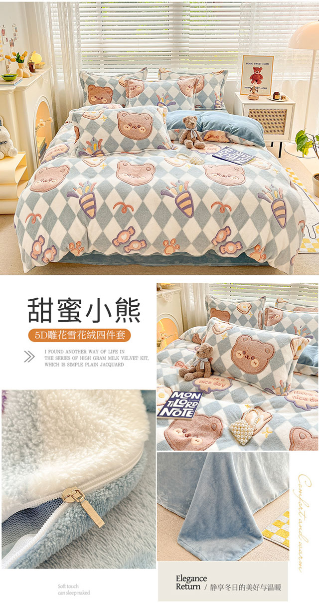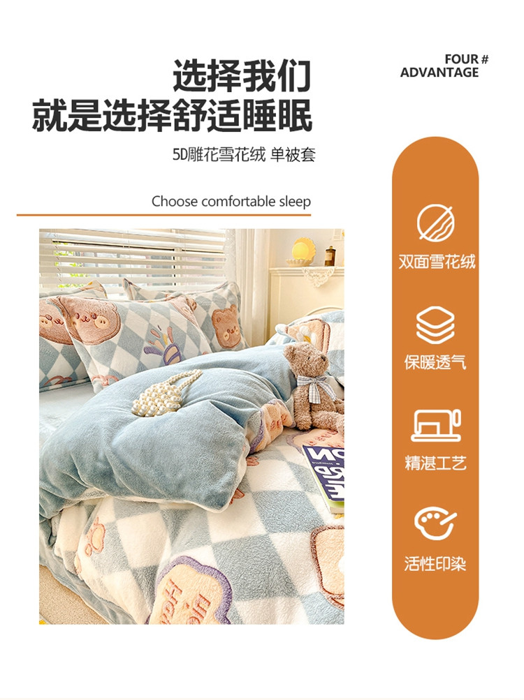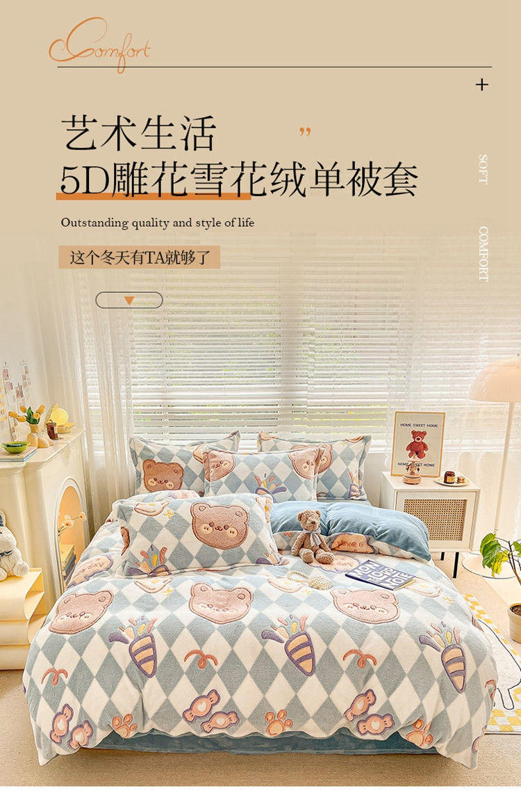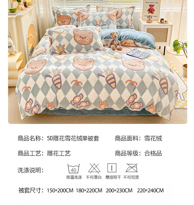 商品名称:慕尚 2025新款5D雪花绒单品系列-单被套 甜蜜小熊