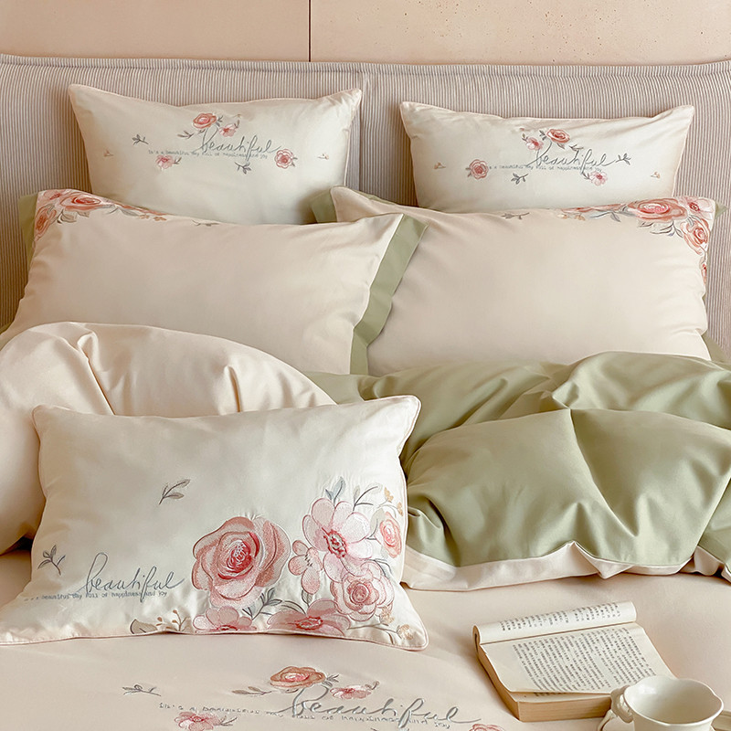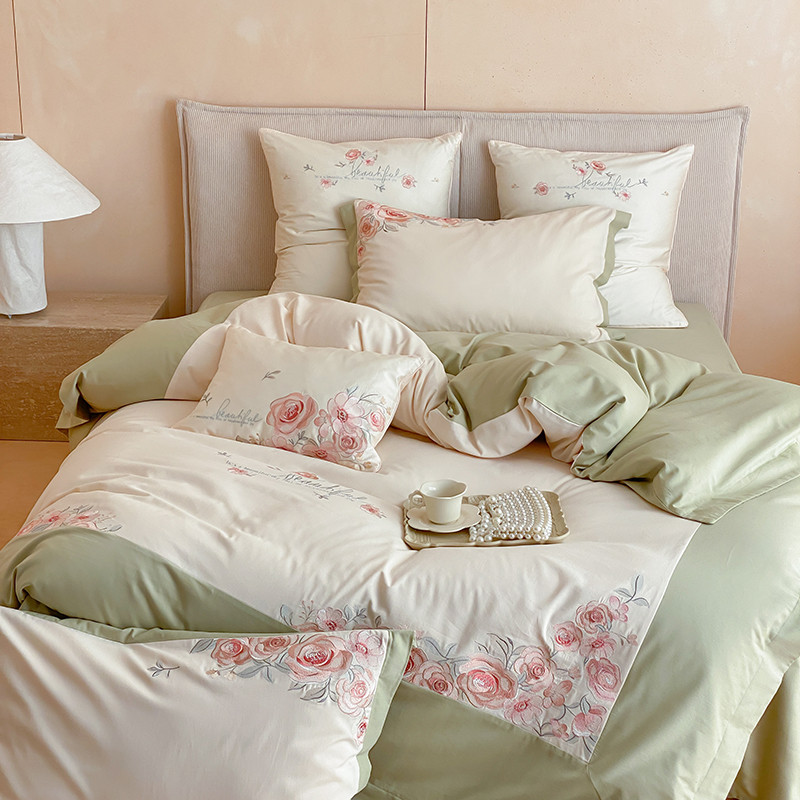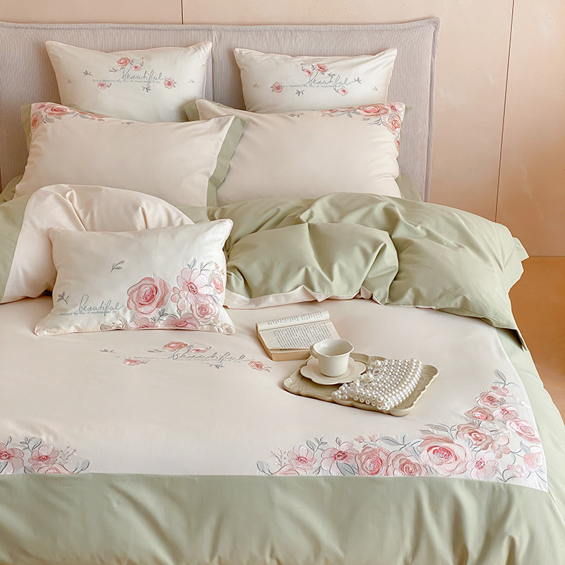 商品名称:MIU缪家居 2023新款100支全棉磨毛系列四件套-满园 豆绿