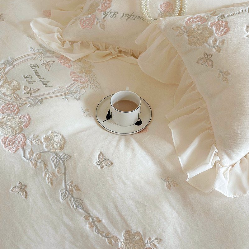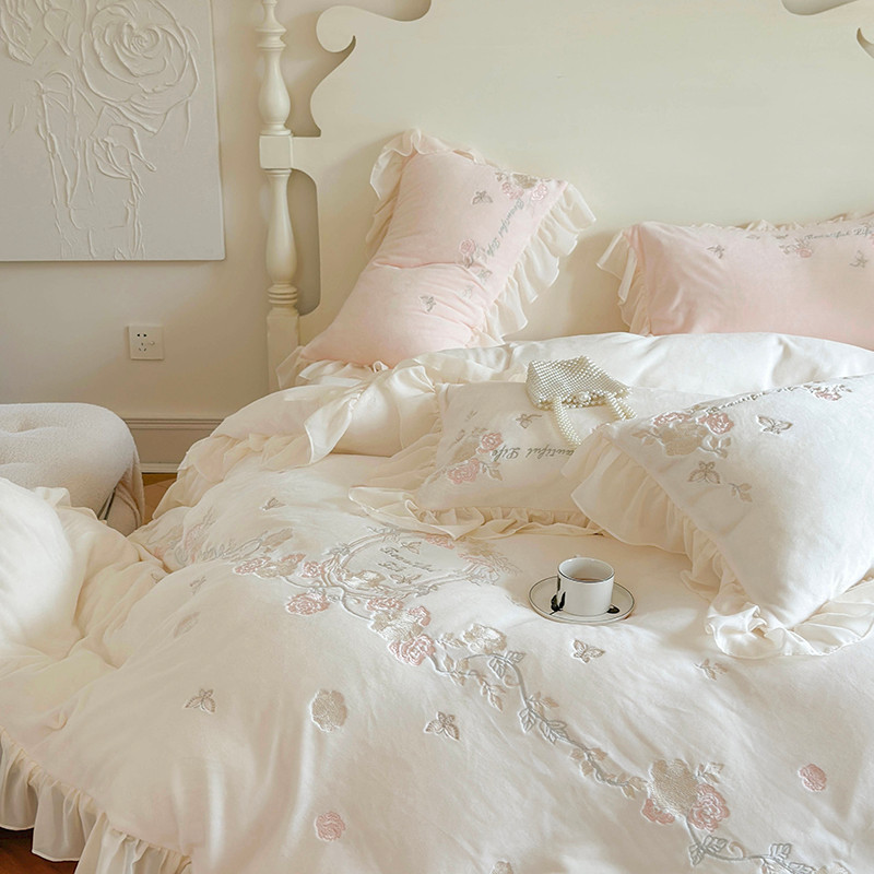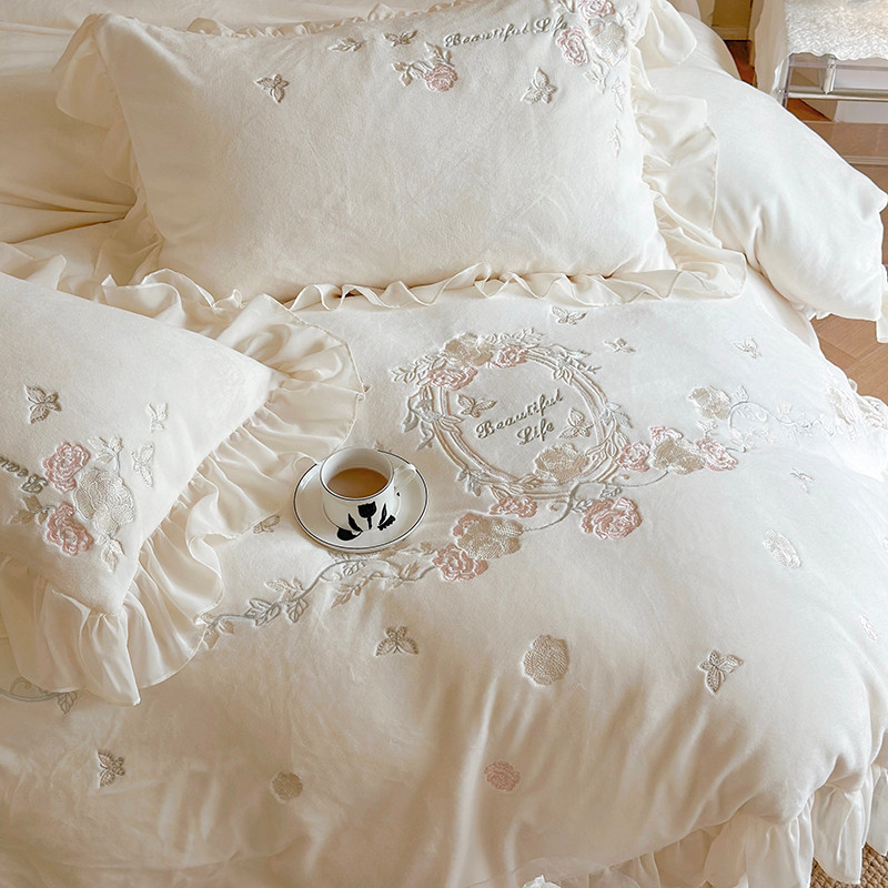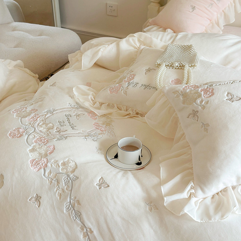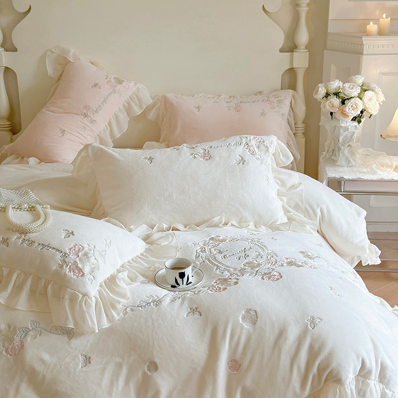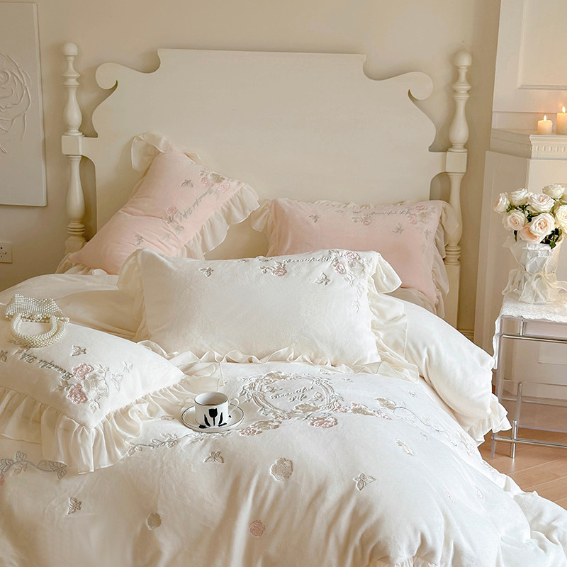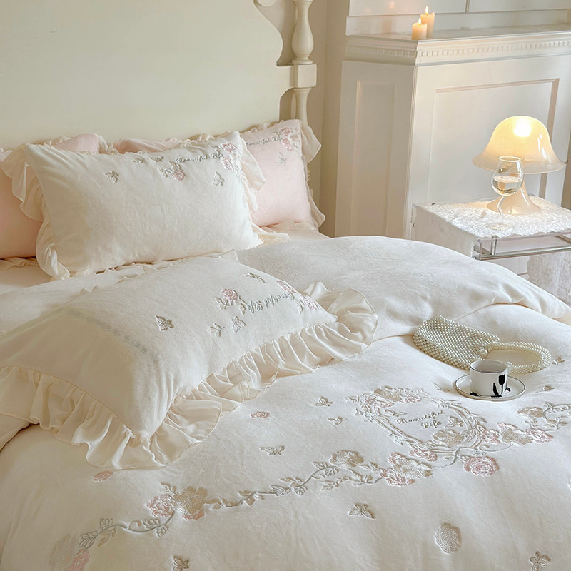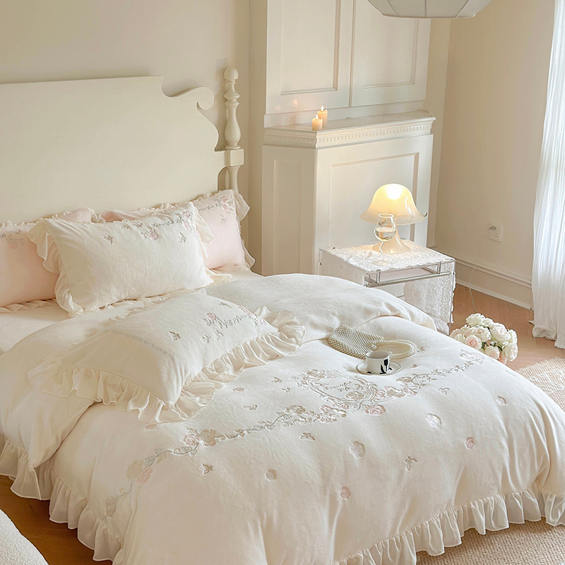 MIU缪家居 2023新款亲肤舒适高克重加厚牛奶绒四件套-浪漫主义 白