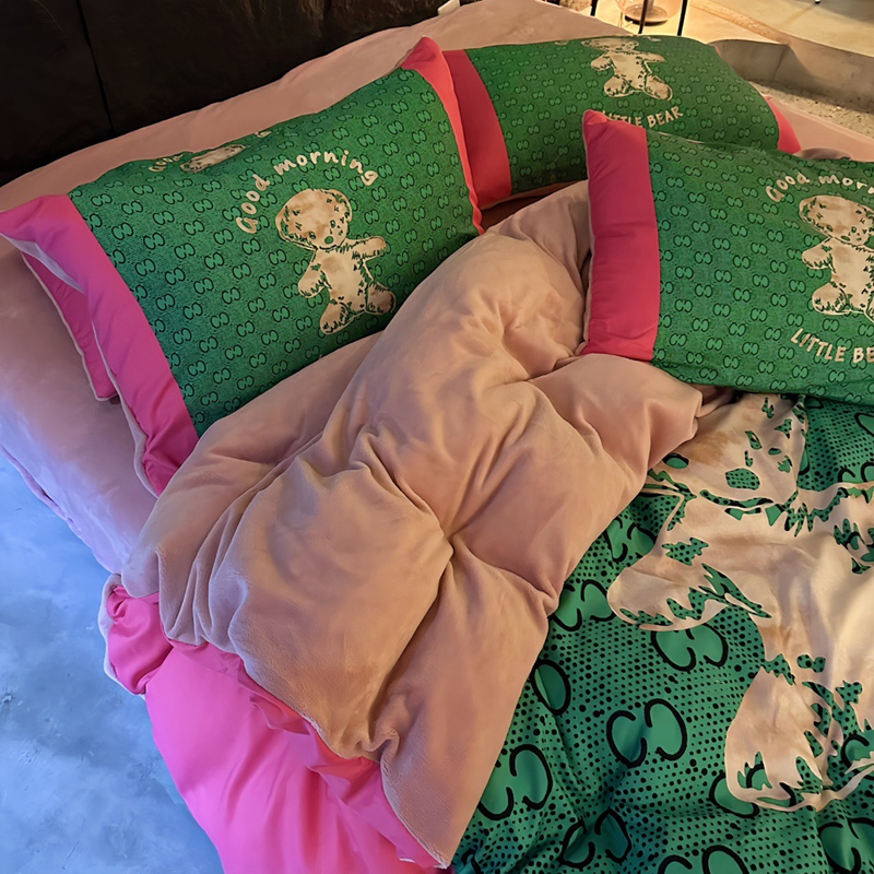 商品名称:色鬼 2023新款轻奢潮牌大牌风棉加绒四件套印花牛奶绒四件套 多巴胺