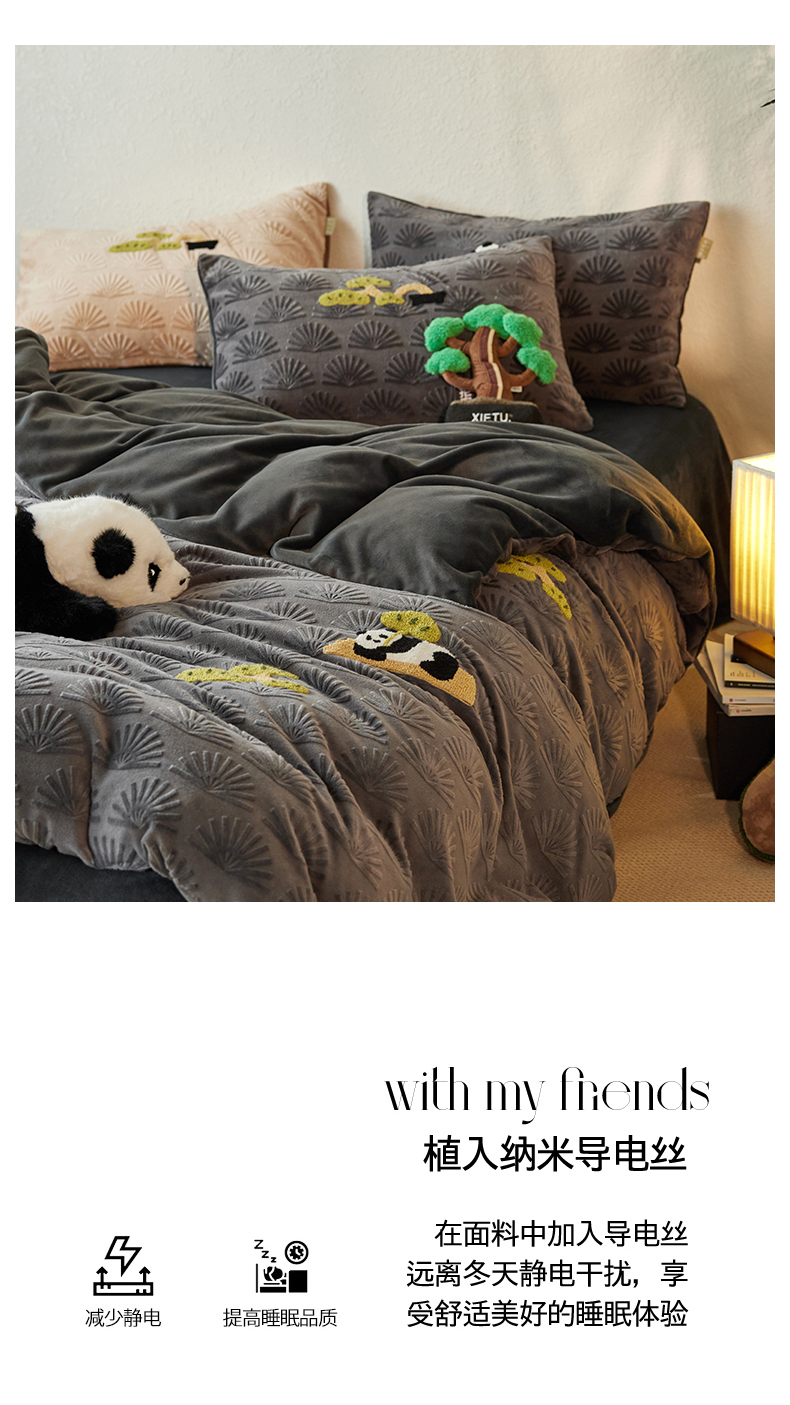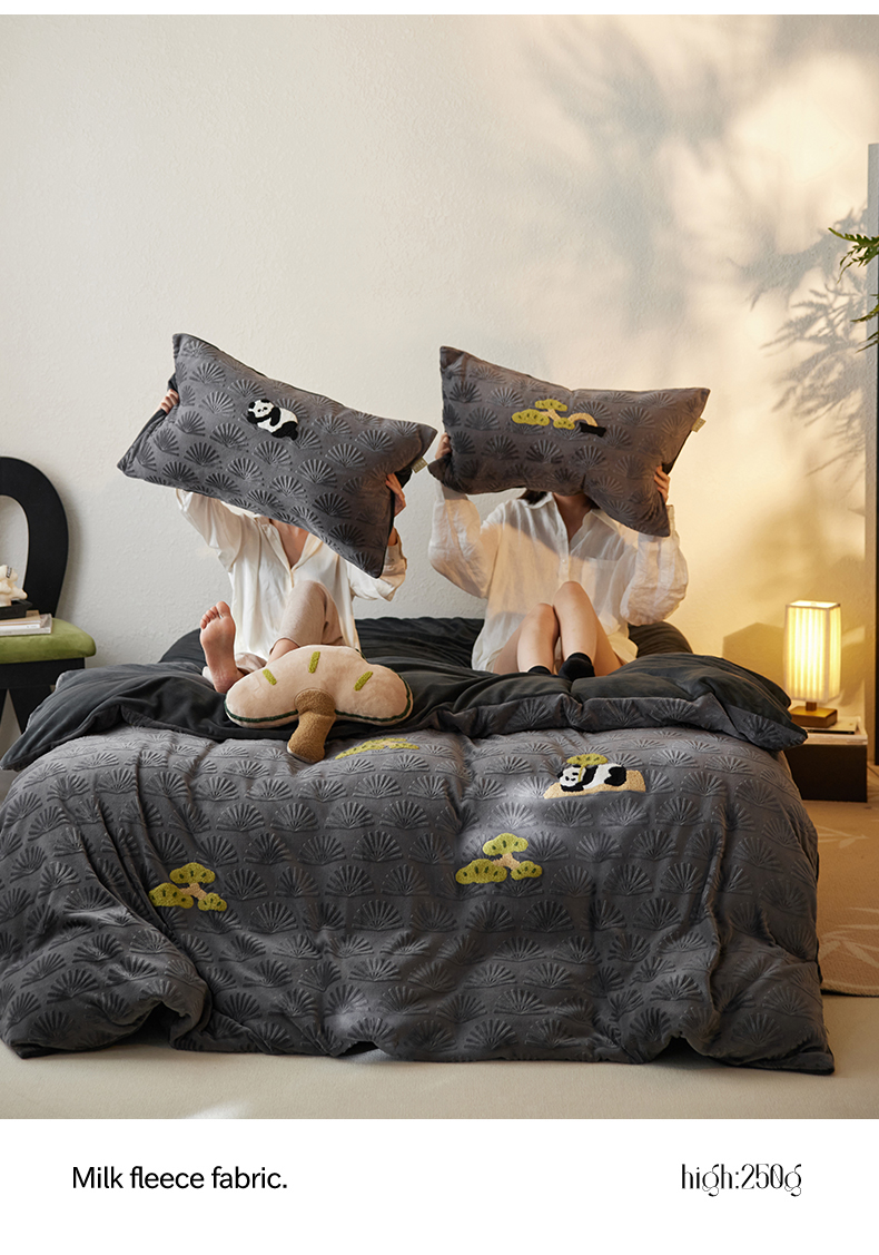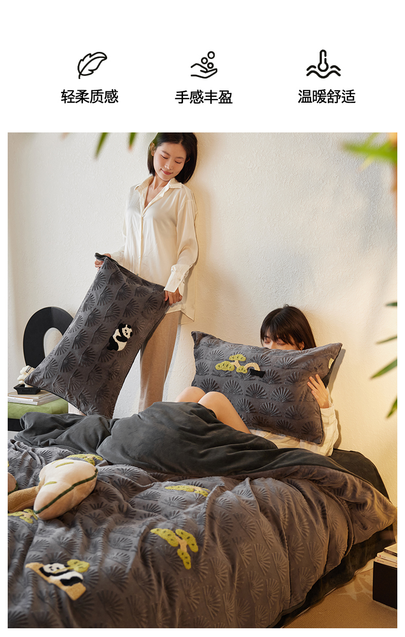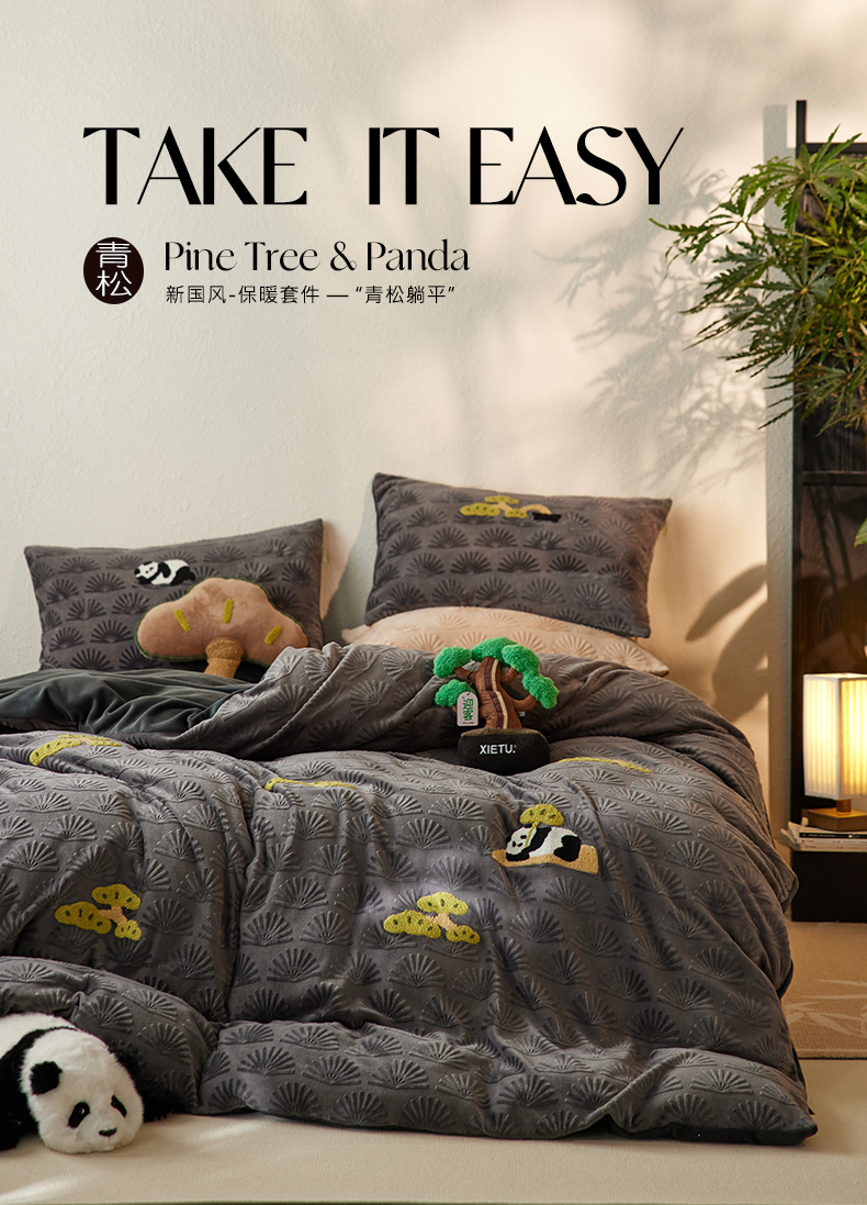 当前位置: 91家纺网 > 商品网购 > 床品套件 > 四件套 > 牛奶绒四件套 > 安莱生活 2023新款雕花绒牛奶绒毛巾绣“青松躺平”四件套放青松-黑松