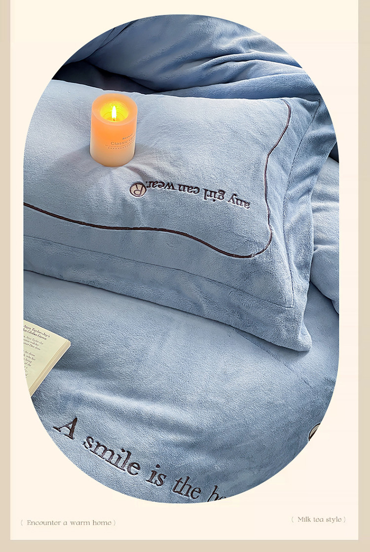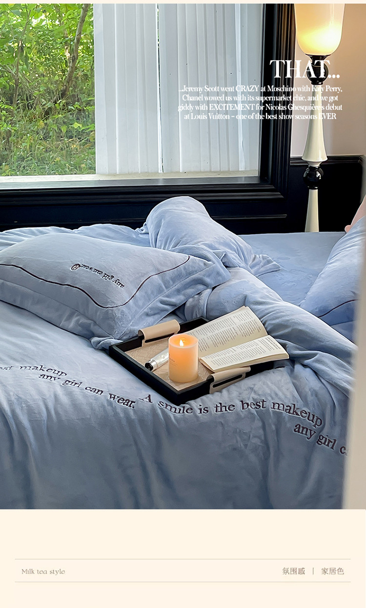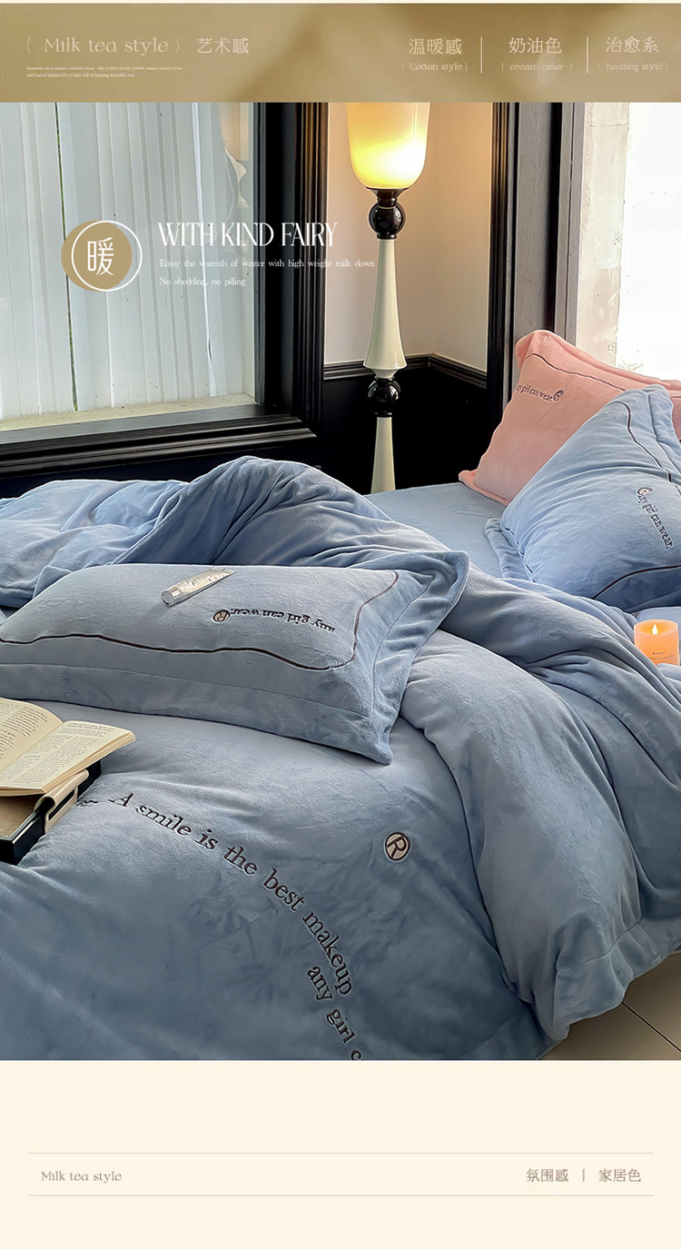 名品优仓 2023新款牛奶绒绣花款四件套-邂逅 邂逅-水冰蓝