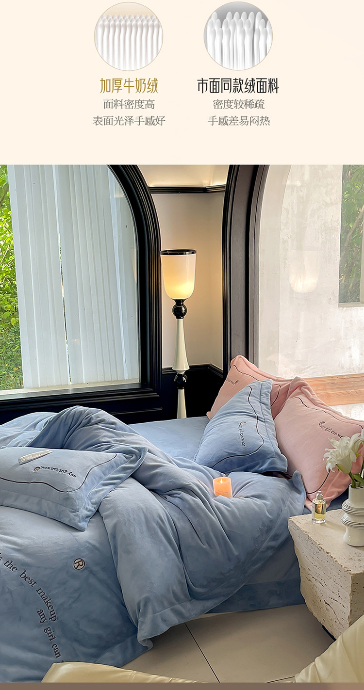 (总)名品优仓 2025新款220克牛奶绒绣花四件套-珊瑚,珊瑚-宝石蓝,珊瑚-粉色,珊瑚-姜黄,珊瑚-米杏,珊瑚-沫粉,珊瑚-杏粉