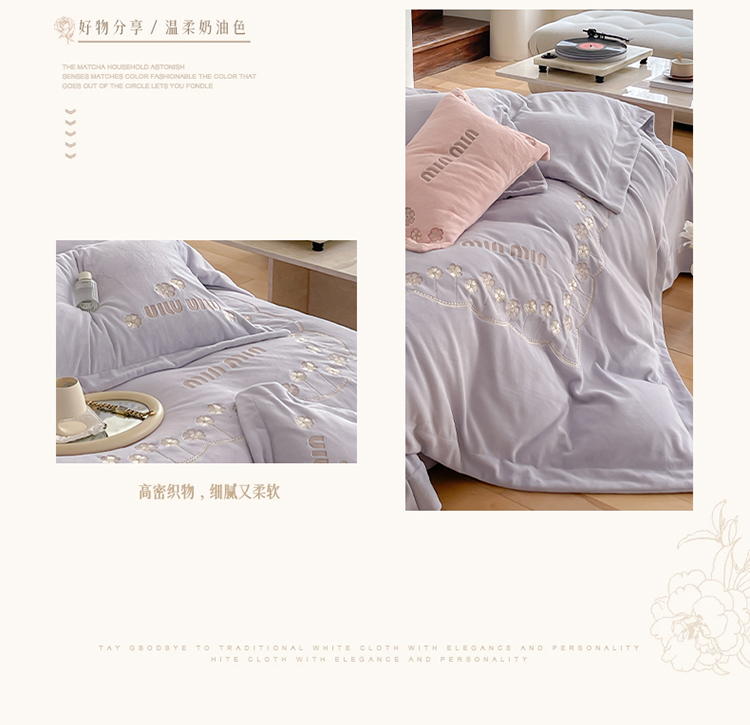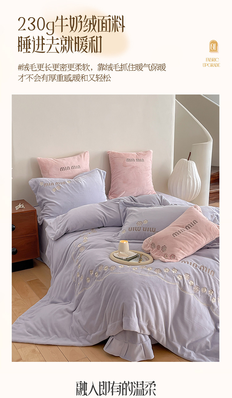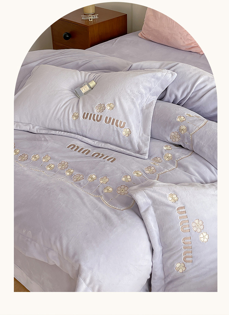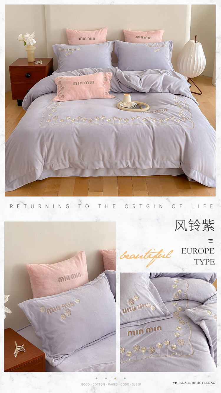 名品优仓 高克重230克牛奶绒绣花款四件套系列-林娜伊尔 林娜伊尔风铃紫