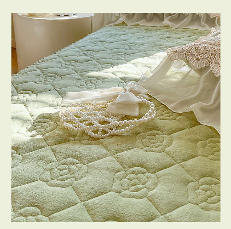商品名称:网红馆 2025新款花间浪漫牛奶雕花绒床盖 果绿色