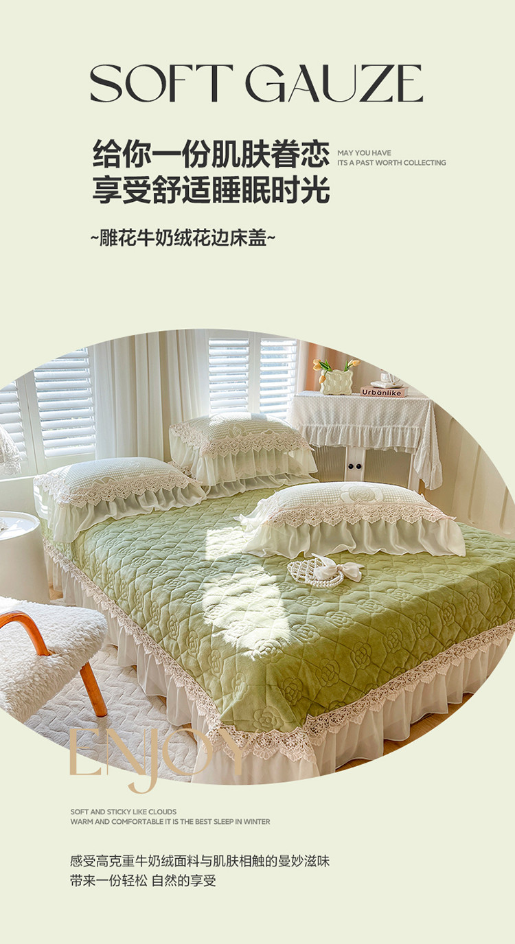 (总)网红馆(ck家纺) 2025新款牛奶绒花边床盖单品床盖床盖单件-甜蜜蜜,甜蜜蜜-粉,甜蜜蜜-咖,甜蜜蜜-绿,甜蜜蜜-米,甜蜜蜜-紫