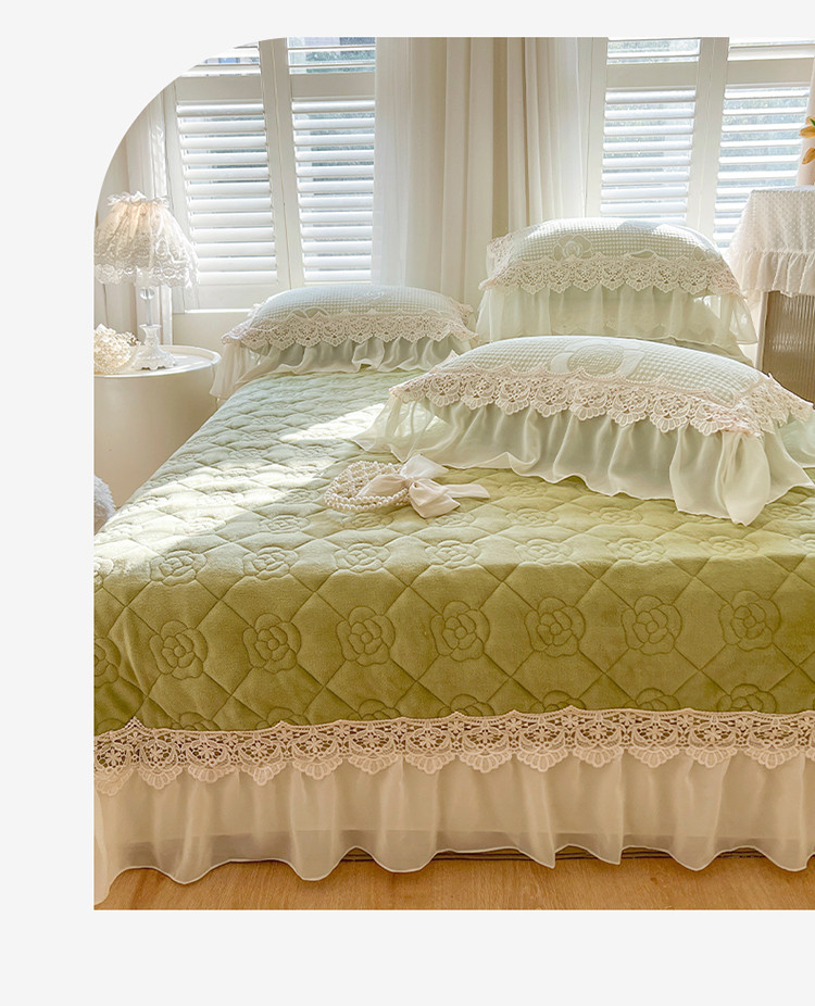 网红馆 2025新款花间浪漫牛奶雕花绒床盖 果绿色