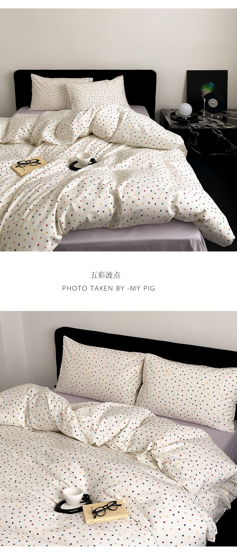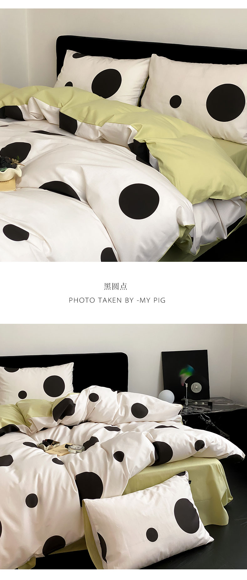 商品名称:Mr.pig猪先生水洗棉 2023新款A类全棉印花竖条纹四件套 黑圆点