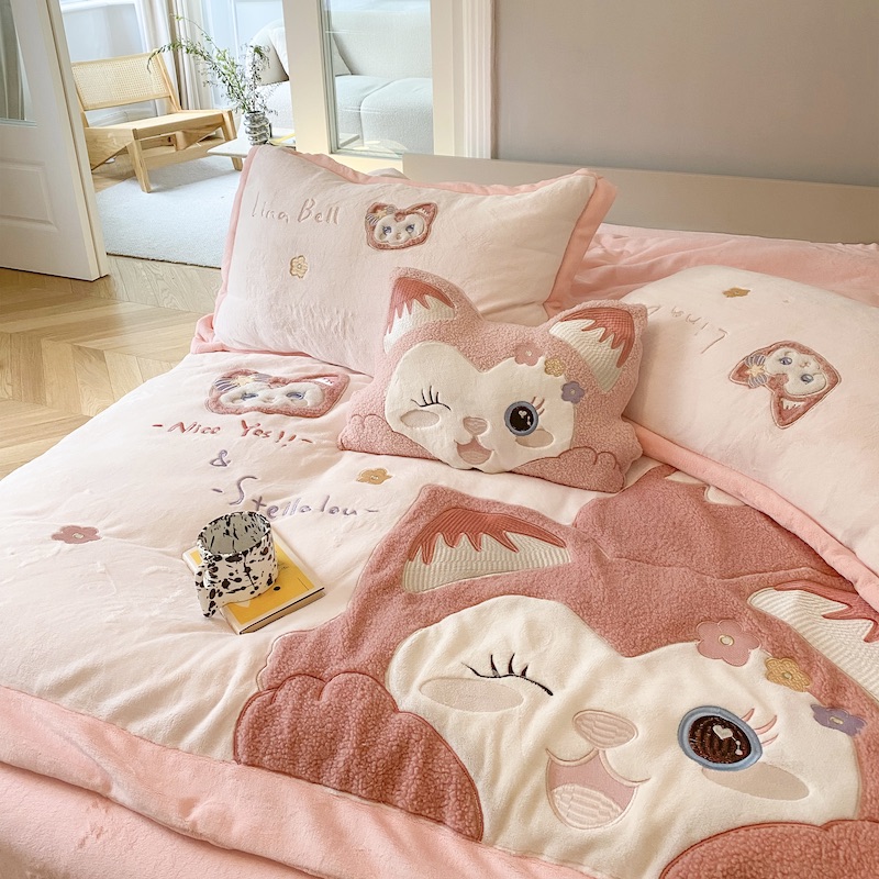 紫碧螺 2023新款牛奶绒系列四件套-林娜贝尔 林娜贝尔-粉色