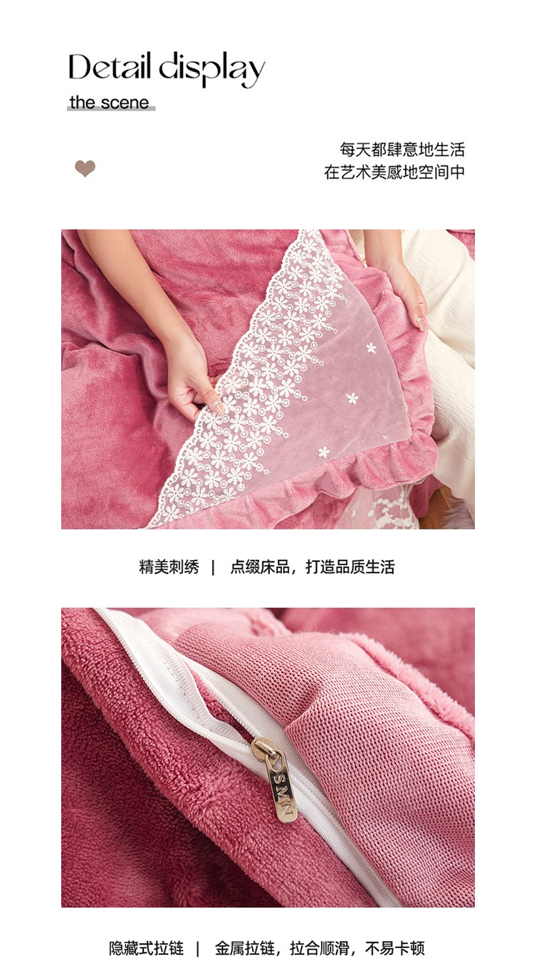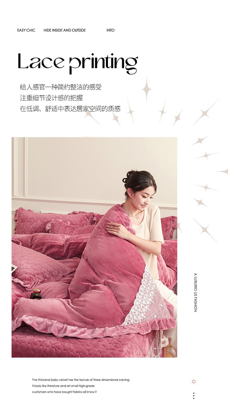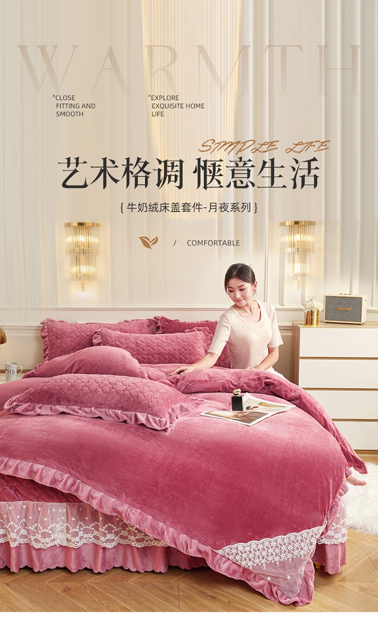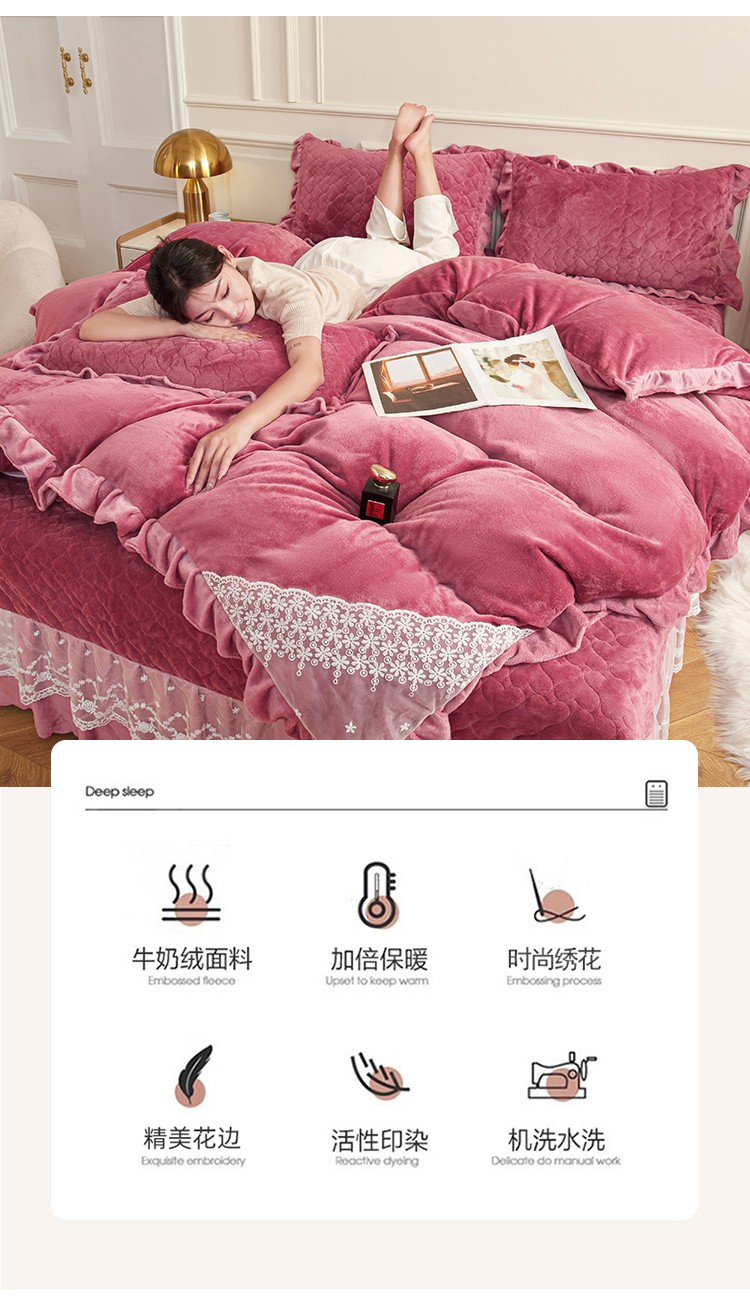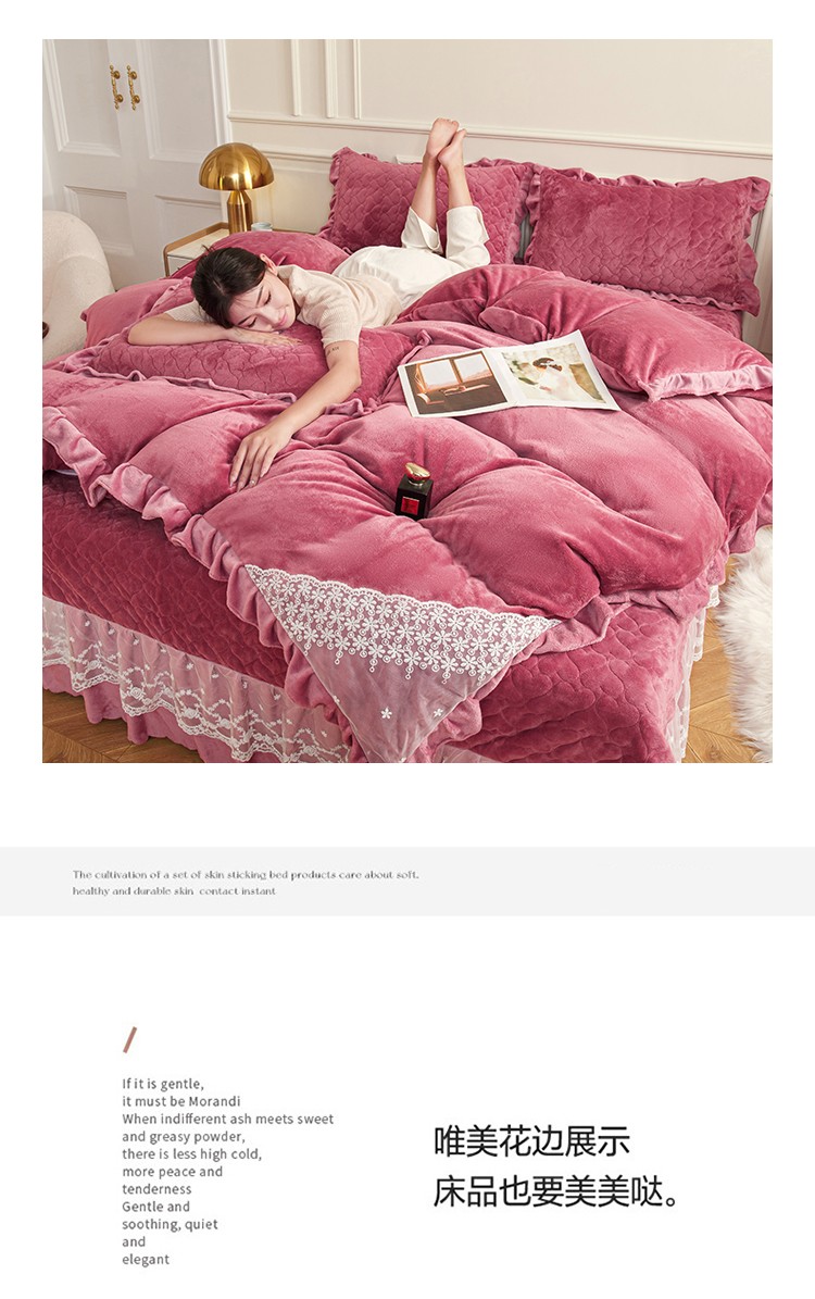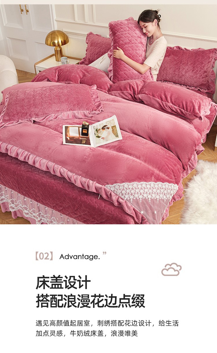 商品名称:漫布云家纺2023新款浪漫花语秋冬保暖加厚牛奶绒夹棉床盖四件套