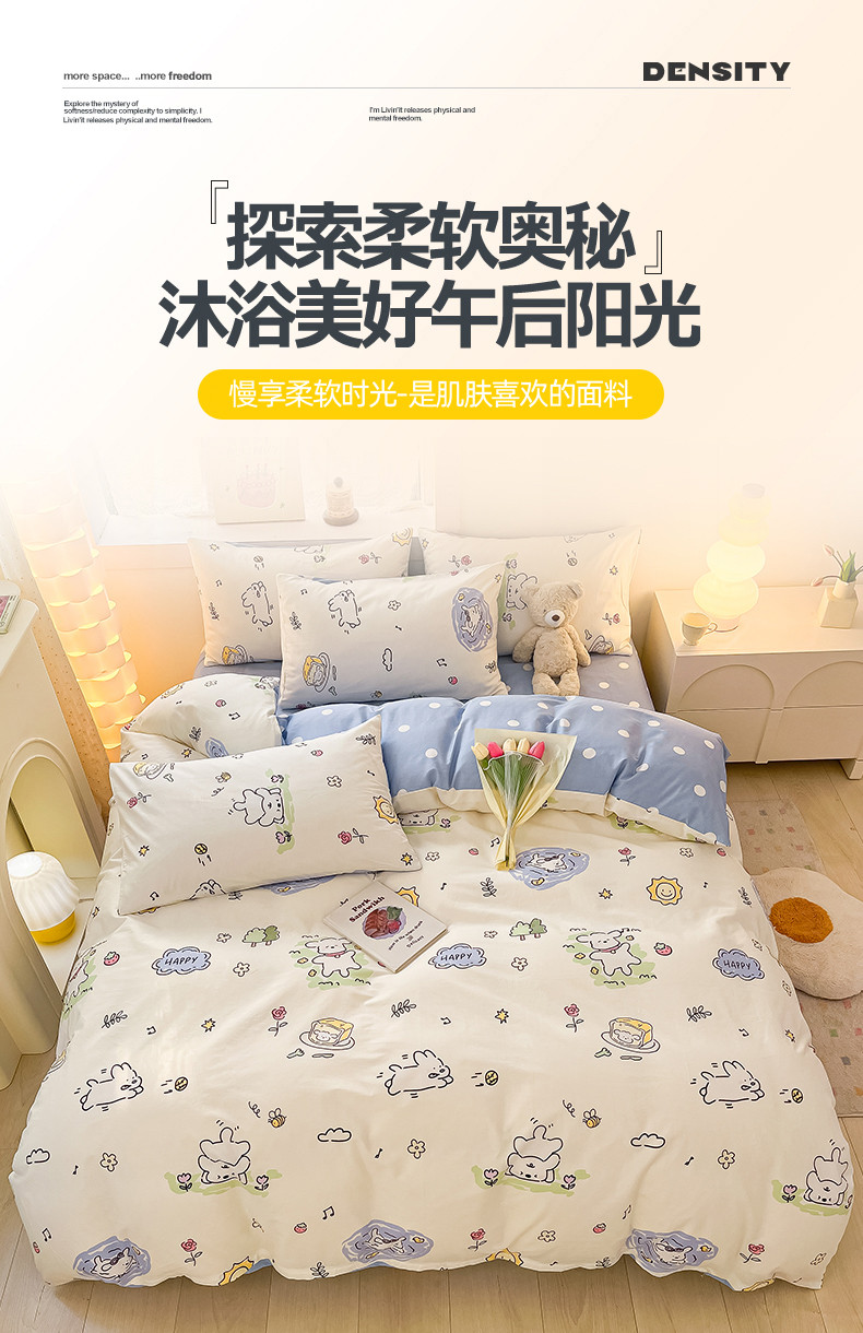 (总)曼之夏 2025新款原棉加厚磨毛印花四件套,比心,布鲁兔,春风十里,大都会,简兮,麦琪熊,麦语-灰,梦游记,眠时光,奇想,轻奢生活,塔维尔(米),甜心小熊,威斯丁,闲趣时光,意林(兰)