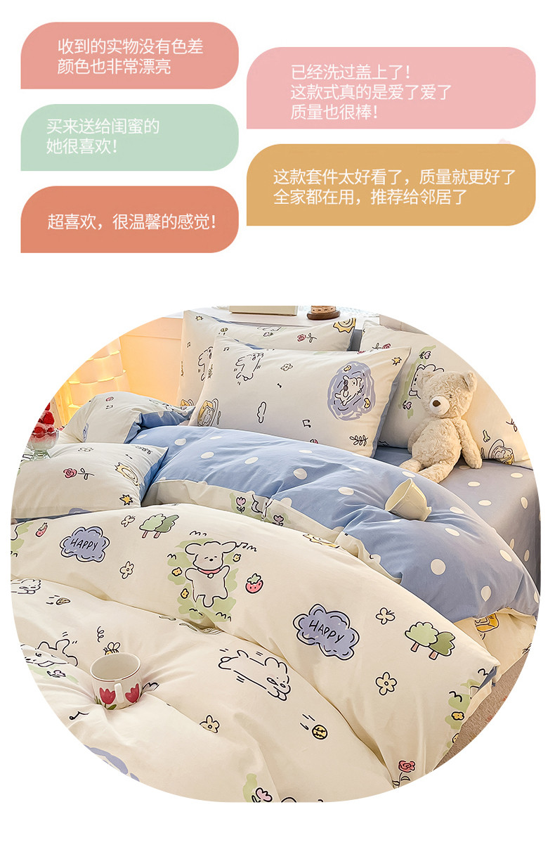 (总)曼之夏 2025新款全棉纯棉印花四件套,豹纹猫咪,笨笨象,缤纷乐园,草莓蛋糕,丛间密语,点点小腊肠,冬日可可狗,告白熊,格子小狗,快乐熊猫,萌萌哒,蜜糖,苹果熊仔,奇思妙想,圣诞星语,兔兔甜心,线团小猫,小熊序曲,心动狗狗,心心狗,星星凯蒂猫,幸运猪猪