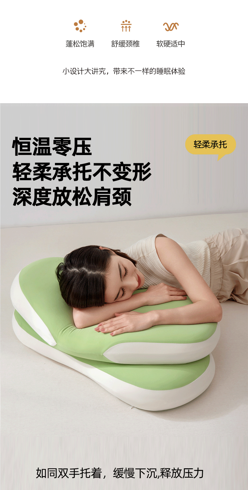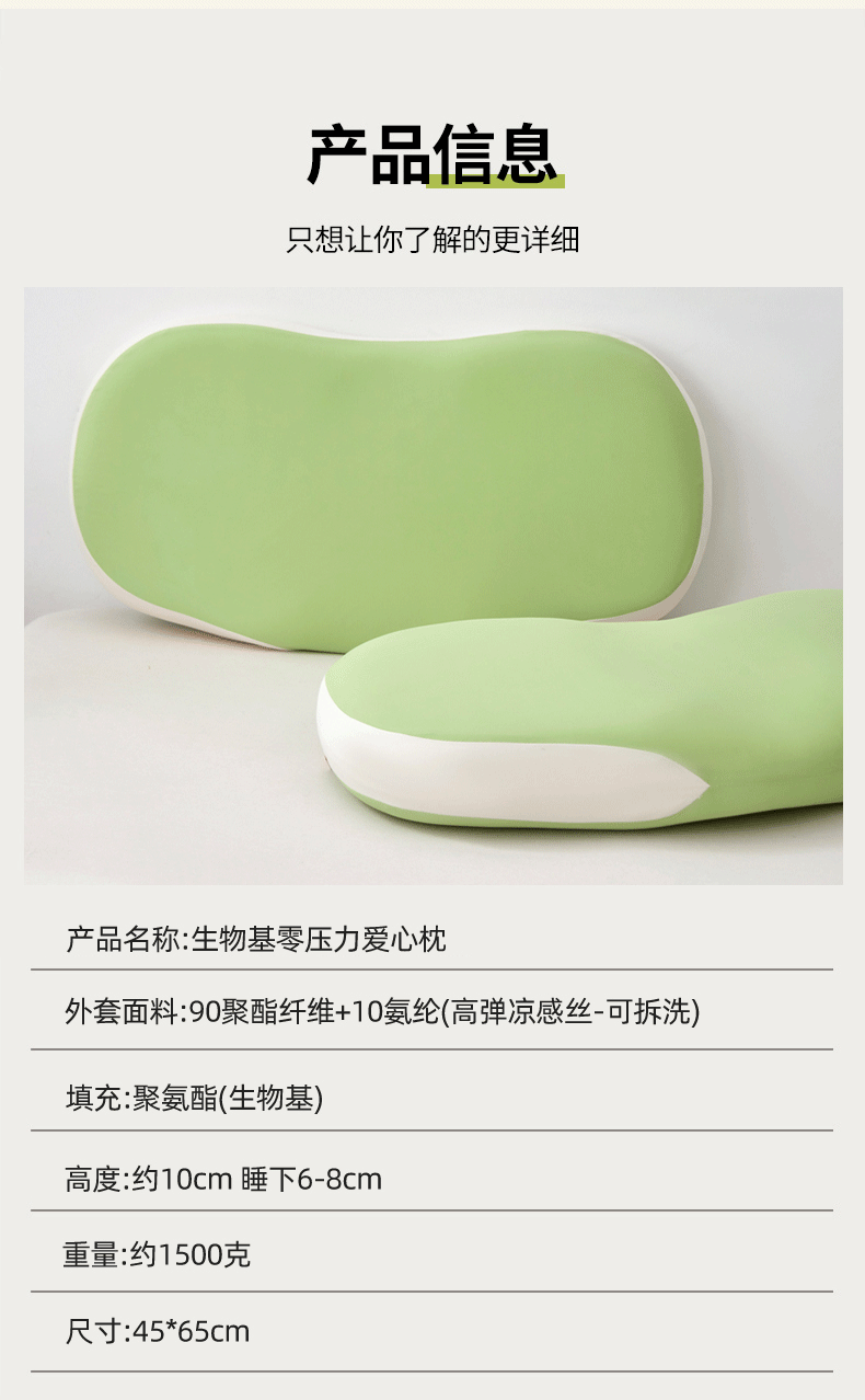 当前位置: 91家纺网 > 商品网购 > 枕头/枕芯/保健枕/颈椎枕 > 普通枕芯 > 麦肯锡 2024新款生物基零压力爱心枕模特图45*65 牛油果绿