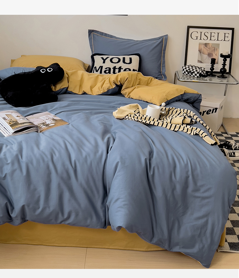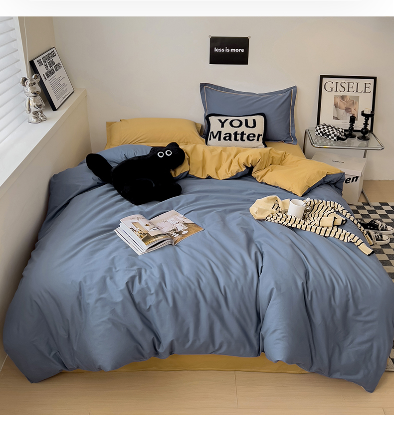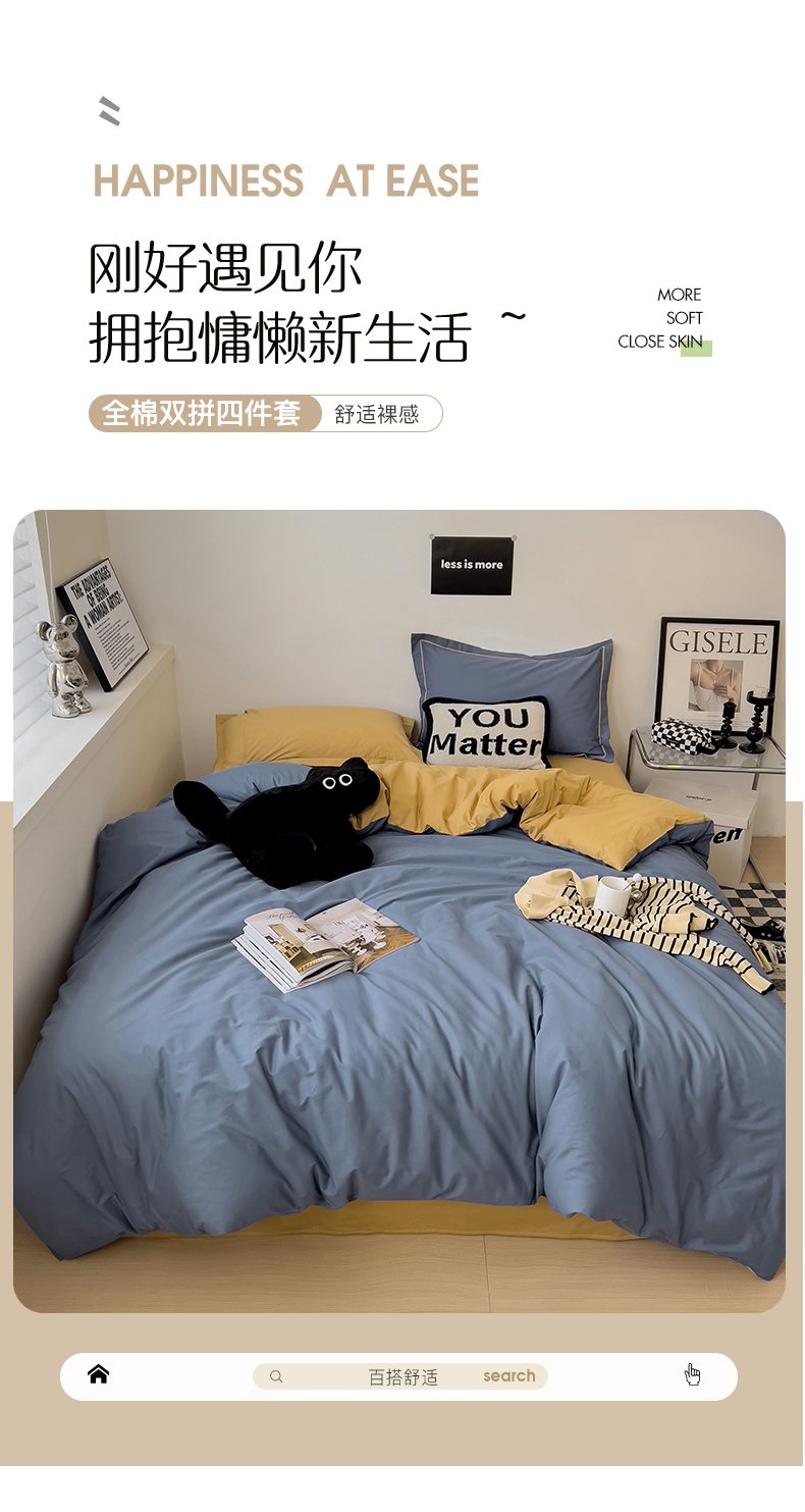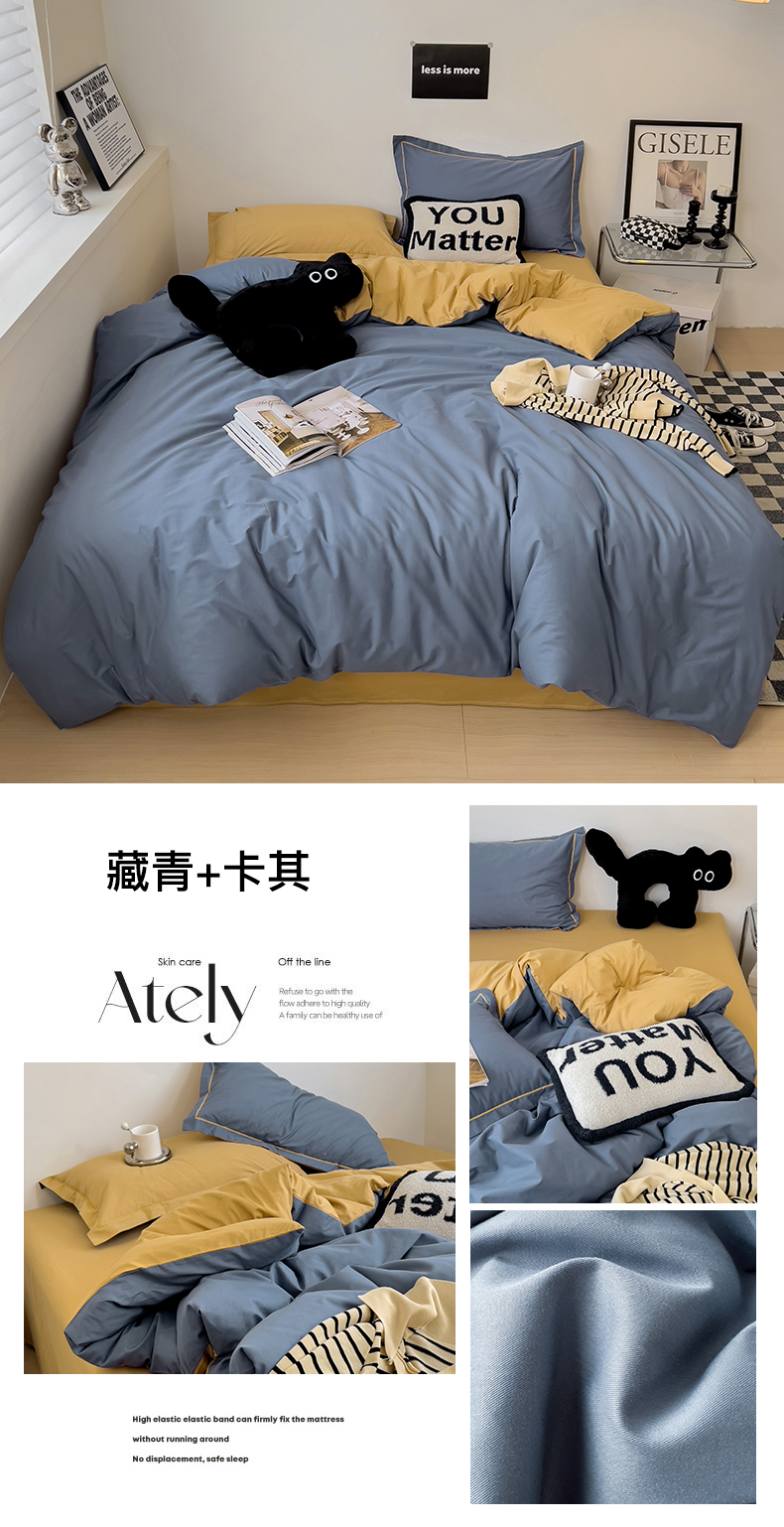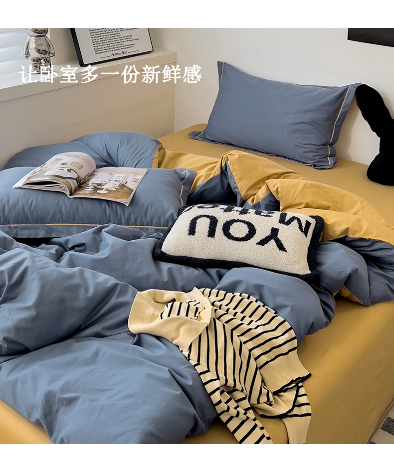 当前位置: 91家纺网 > 商品网购 > 床品套件 > 四件套 > 全棉普通四件套 > 恩泽家纺 2026新款全棉13372纯色双拼系列四件套 藏青+卡其色
