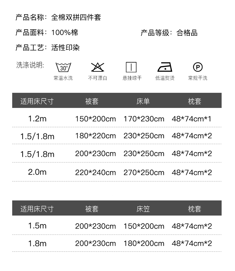 2米床四件套(被套220x240) | ¥106.00 |