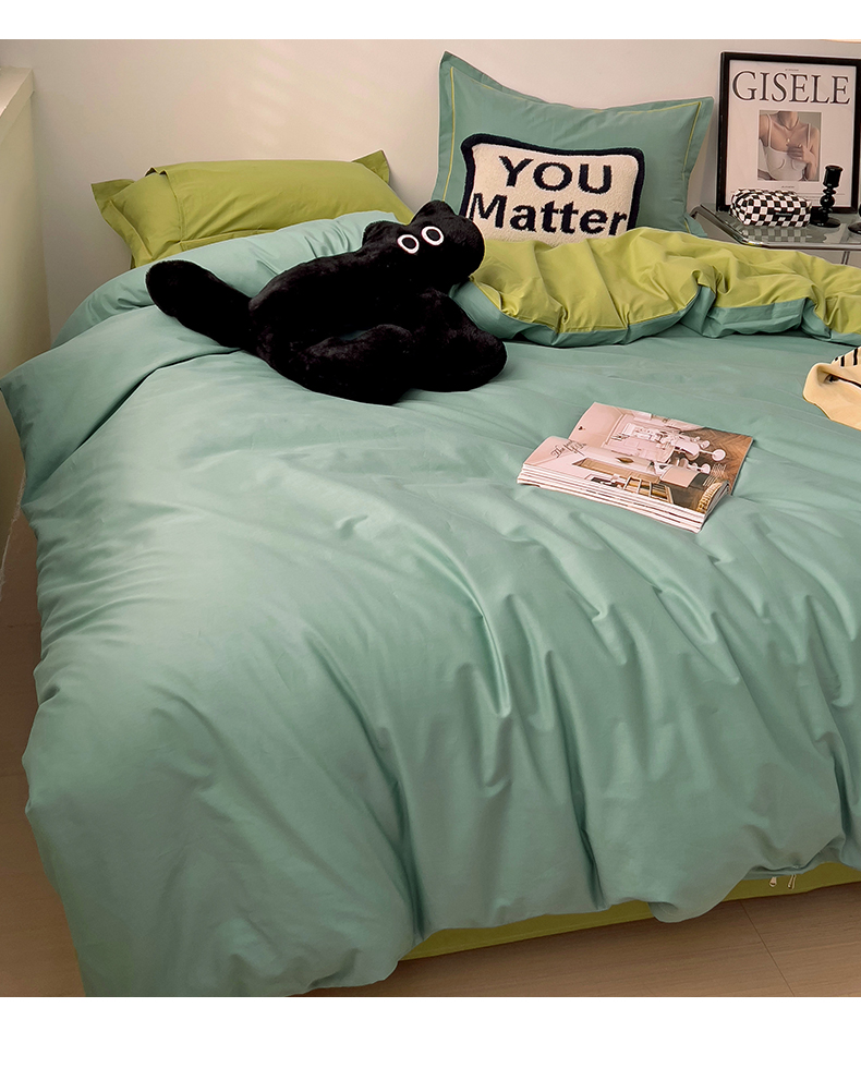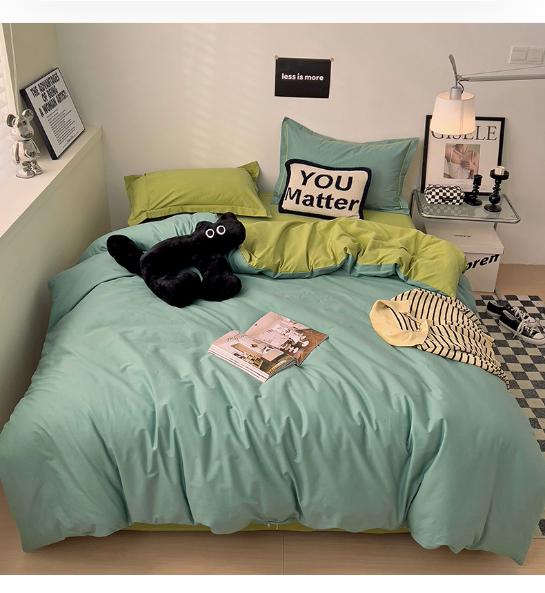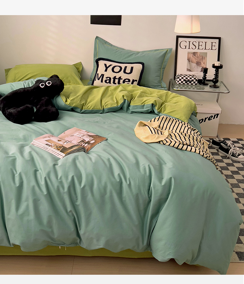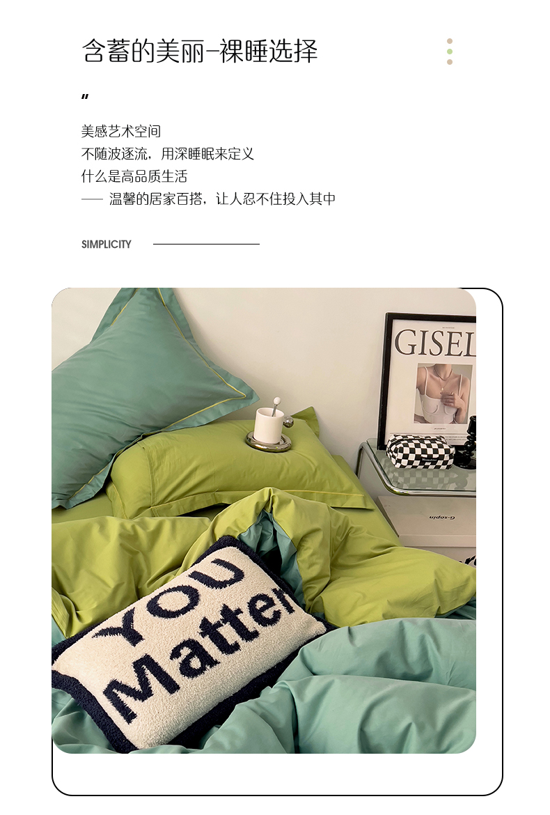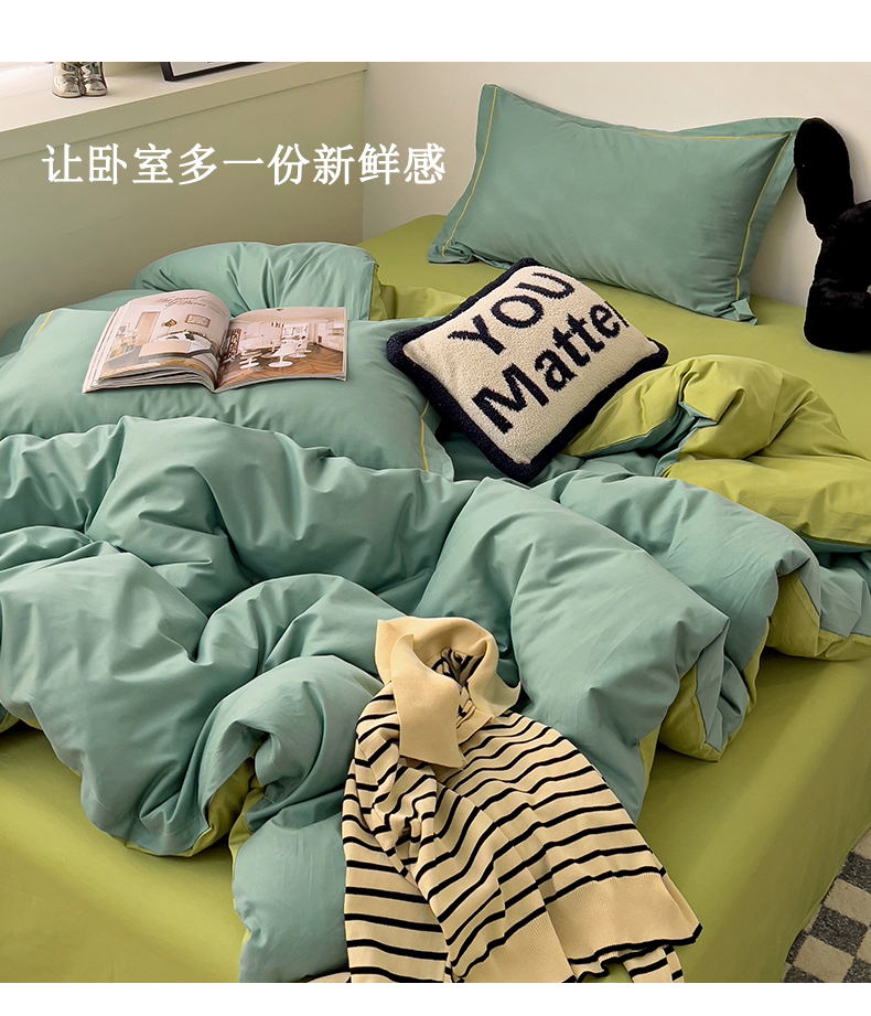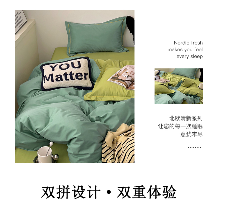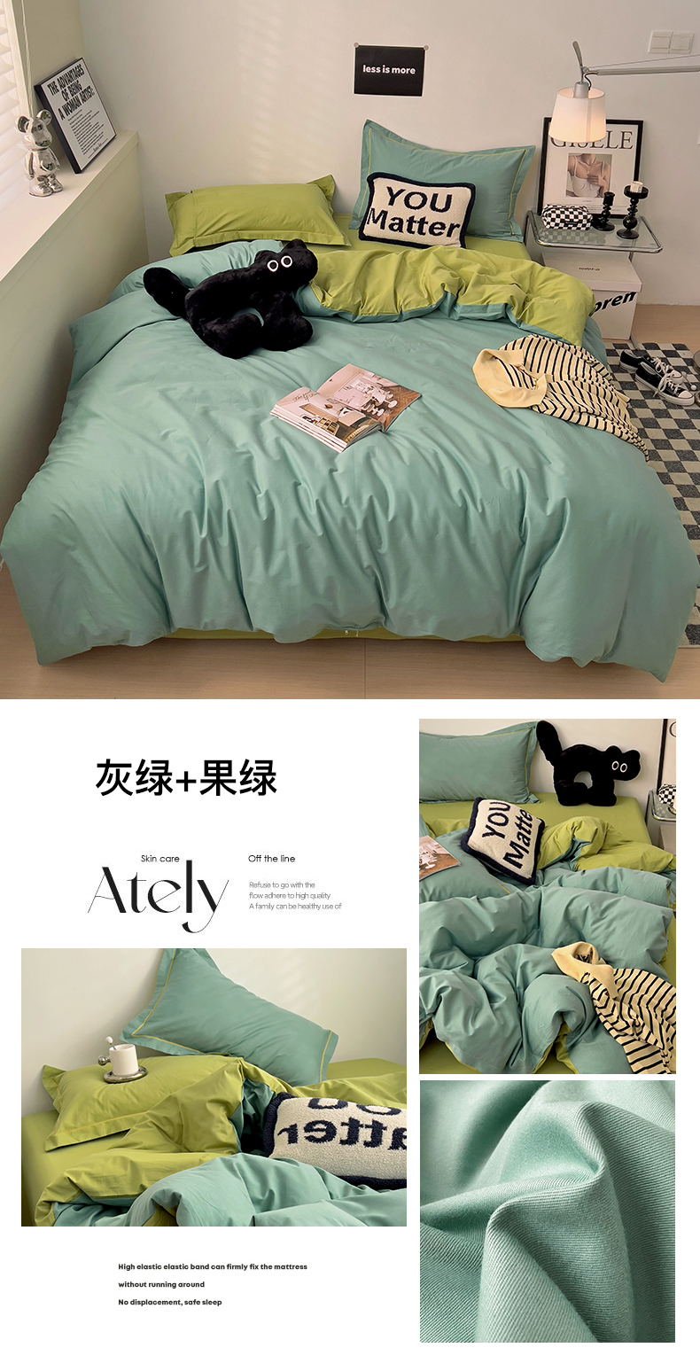当前位置: 91家纺网 > 商品网购 > 床品套件 > 四件套 > 全棉普通四件套 > 恩泽家纺 2026新款全棉13372纯色双拼系列四件套 灰绿+果绿