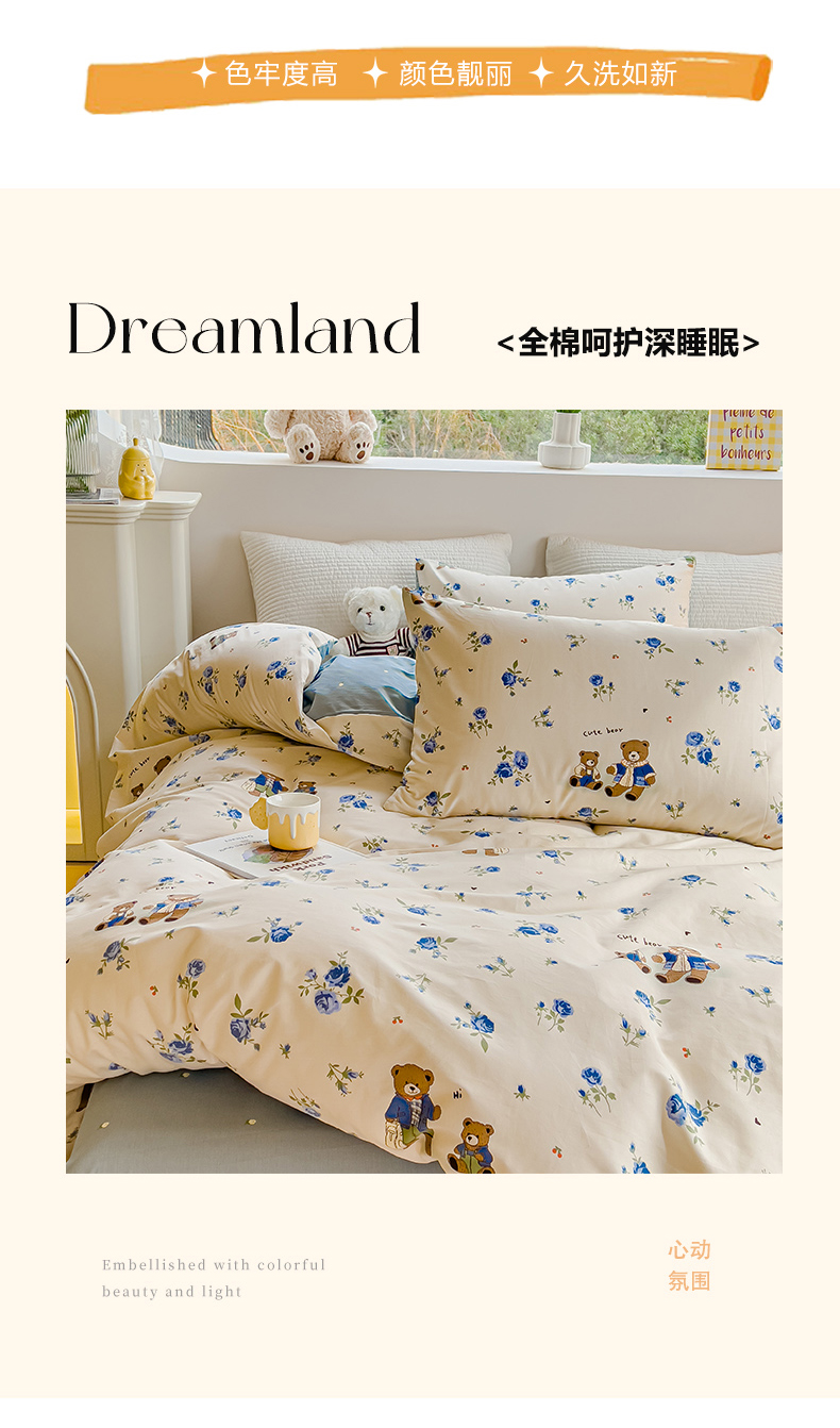当前位置: 91家纺网 > 商品网购 > 床品套件 > 四件套 > 全棉普通四件套 > 感遇家纺 2024春夏新品全棉卡通印花四件套-第一批 伙伴熊