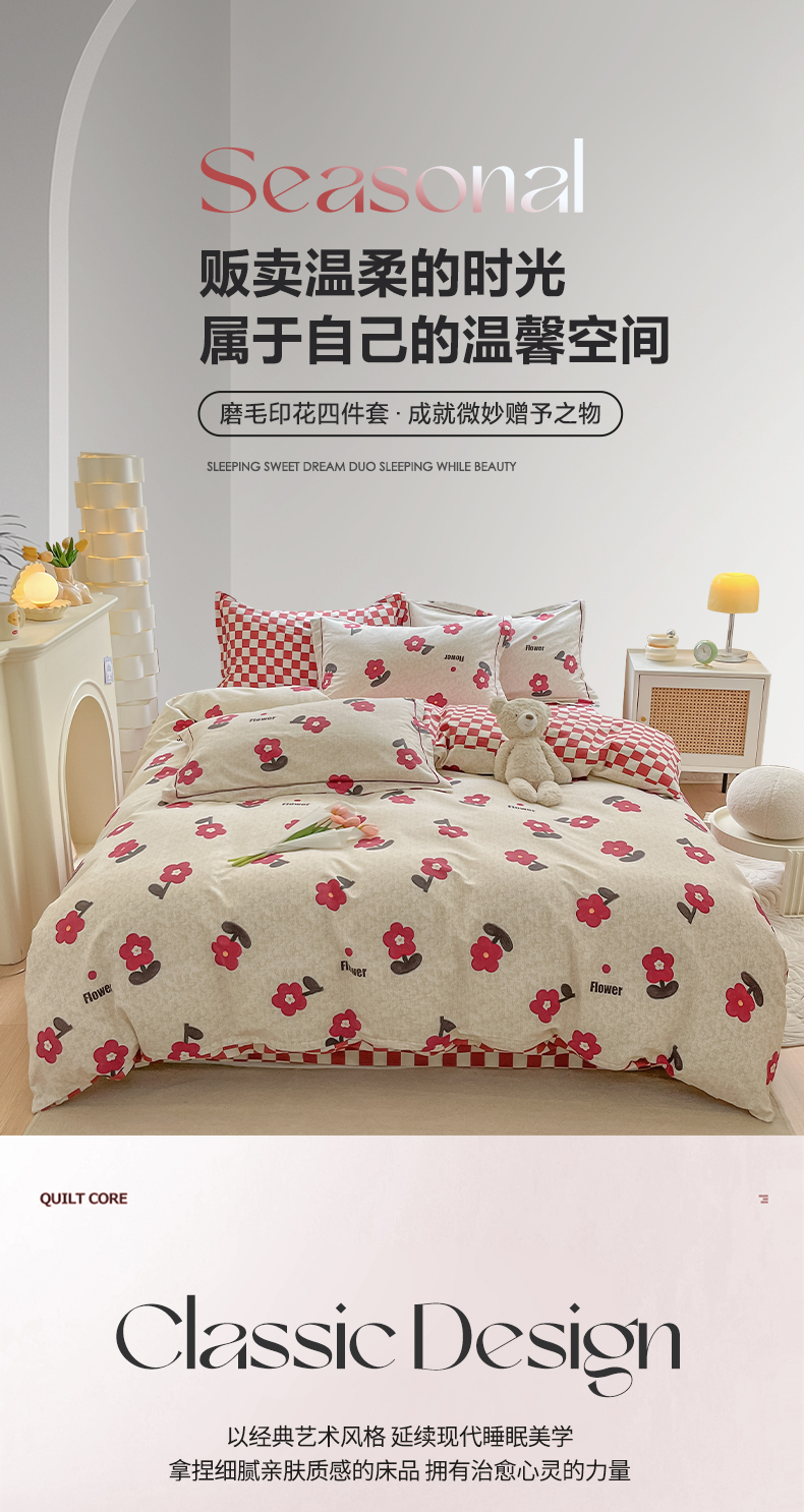 宜家坊 2024新款ins小清新磨毛印花四件套 梦里花
