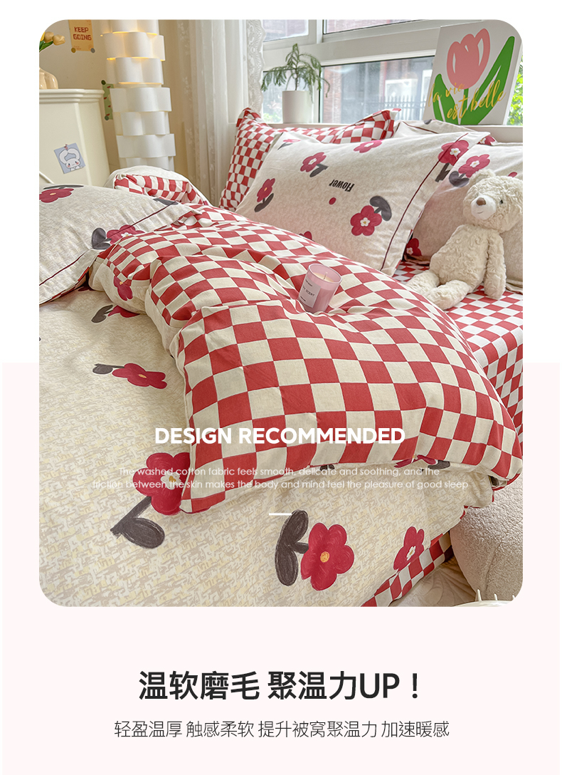 (总)宜家坊 2023新款直播韩版印花花边款牛奶绒四件套,比格熊,草莓兔,春暖花开,告白,加油鸭,流星花园,萌萌熊,牛油果,千鸟格,小女孩,一见倾心,郁金香