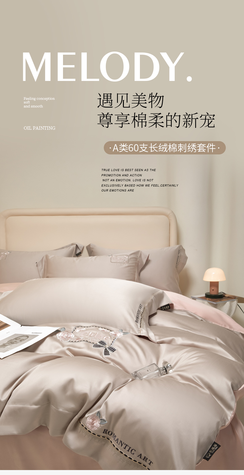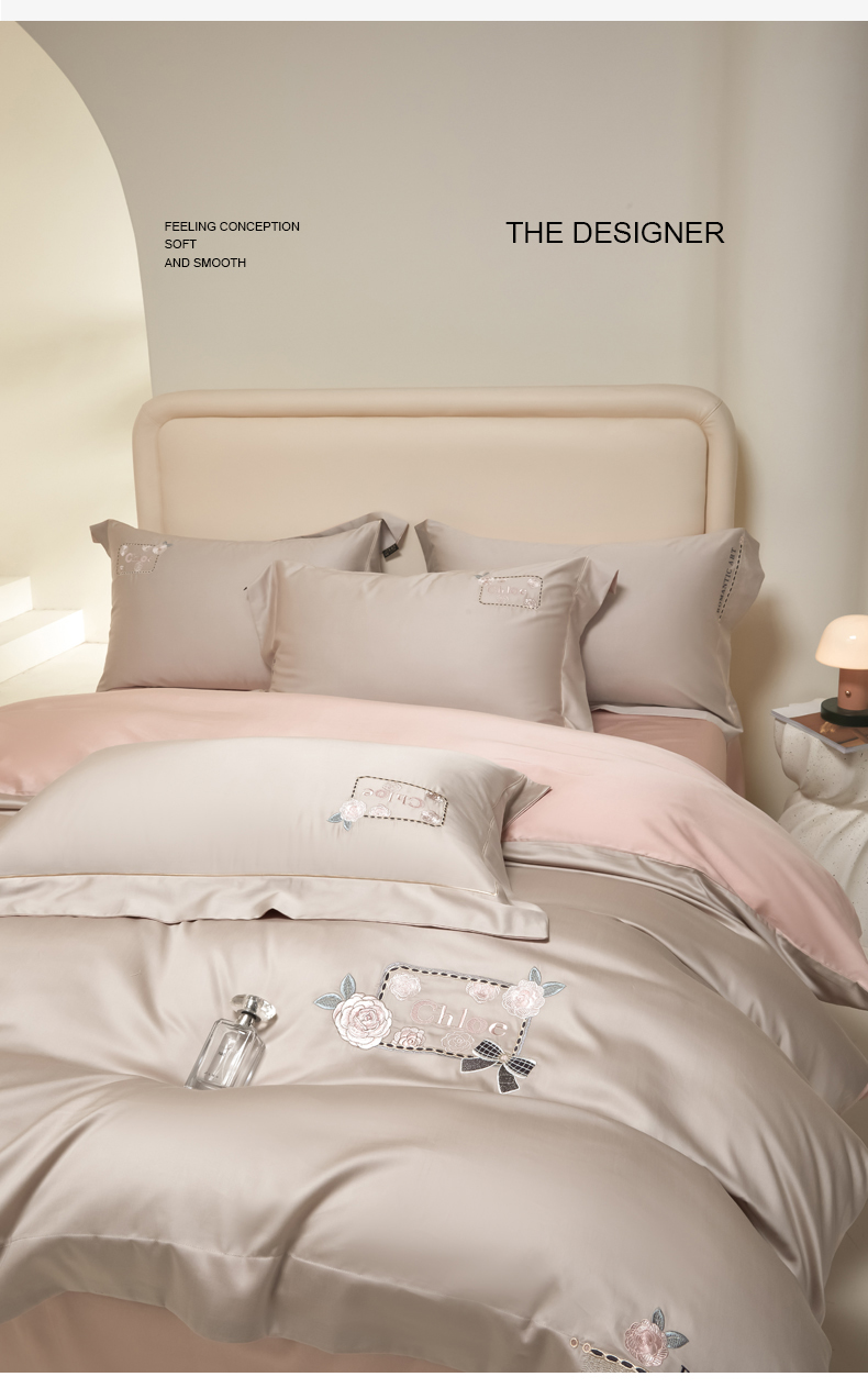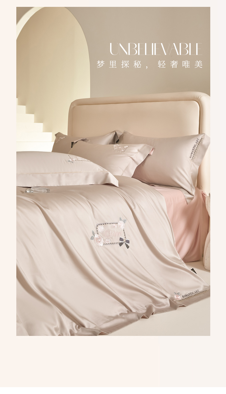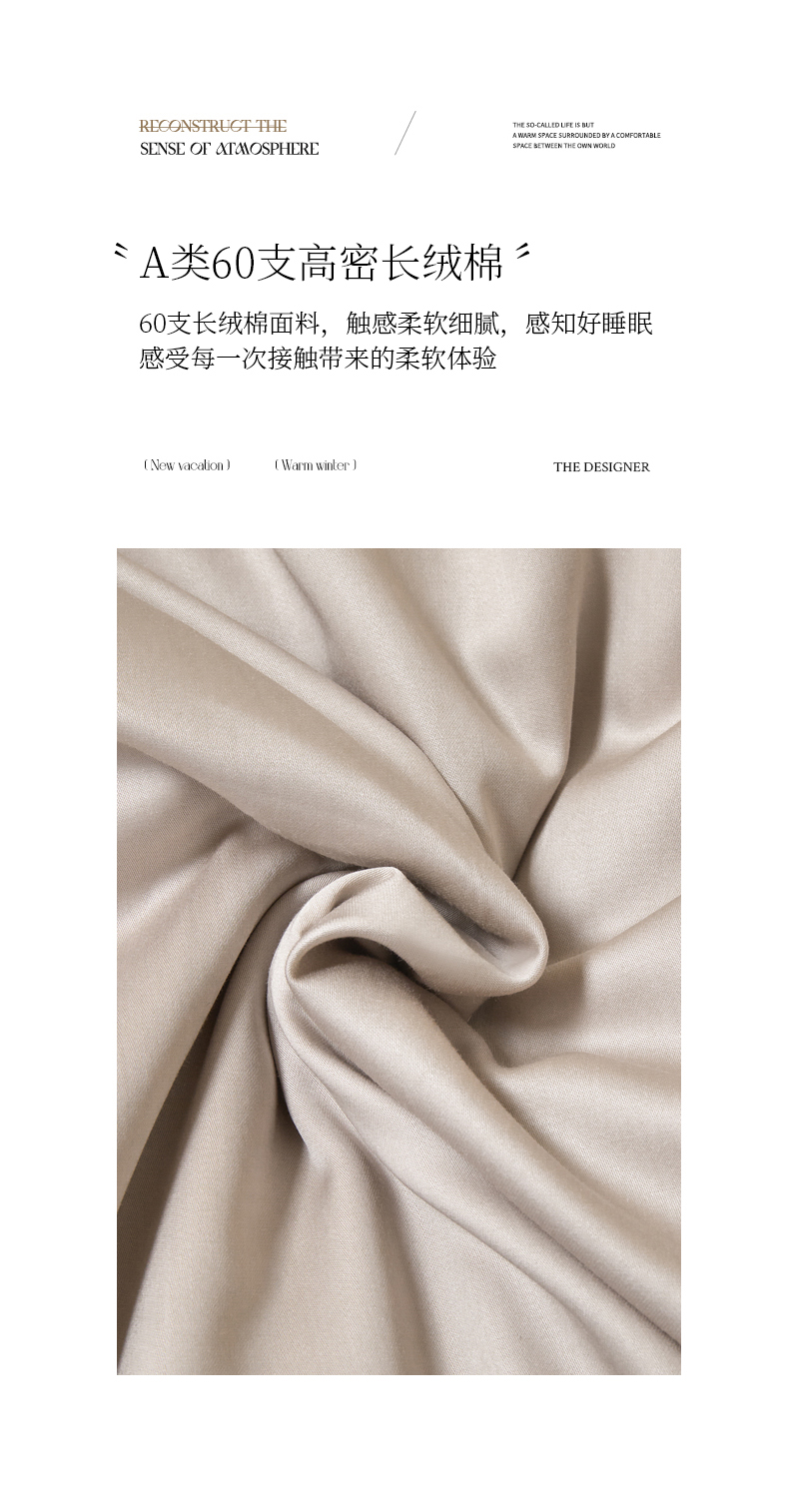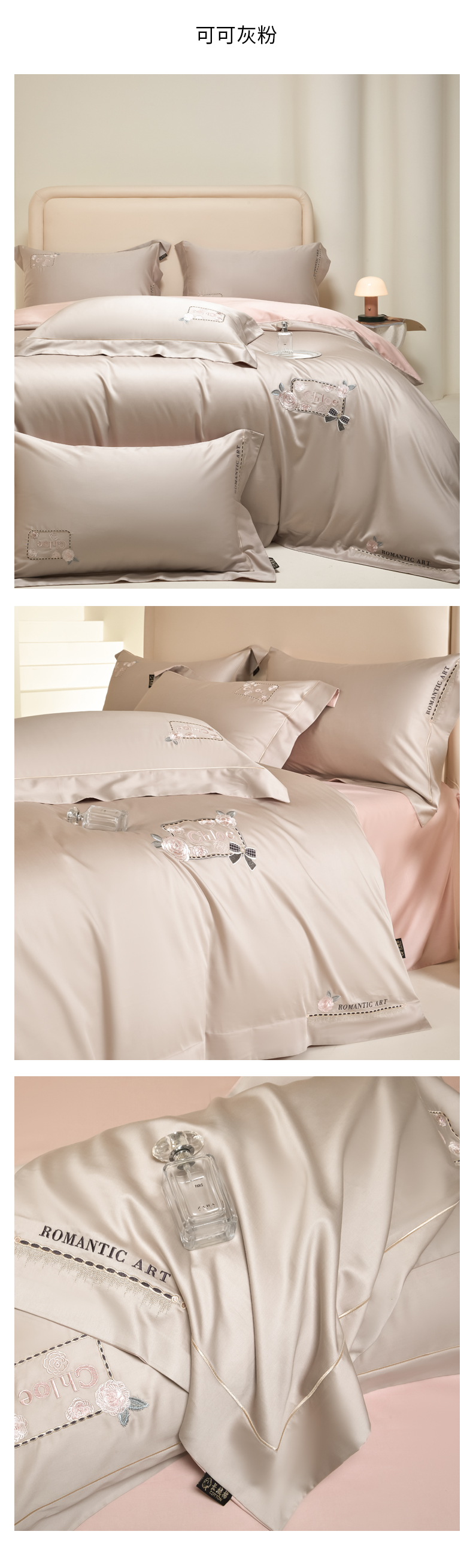 商品名称:(总)618家纺 2024新款A类60s长绒棉全棉纯棉四件套100%全棉可可系列 可可灰粉