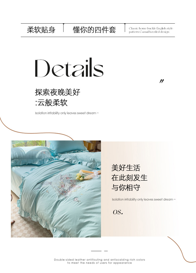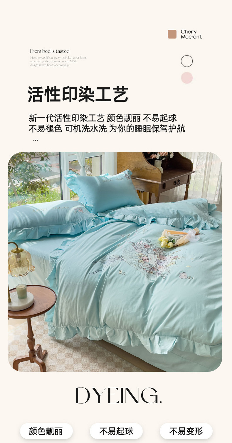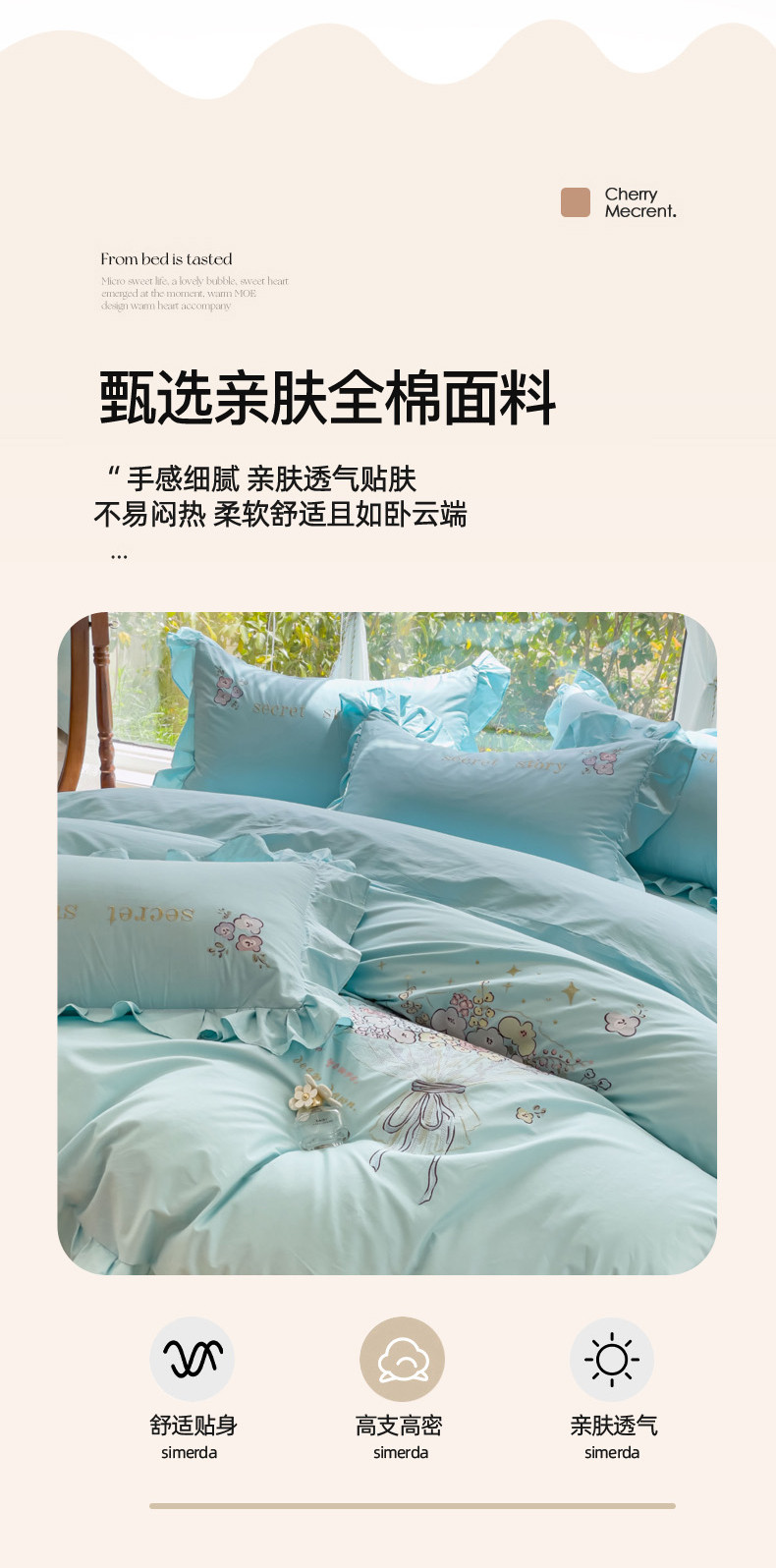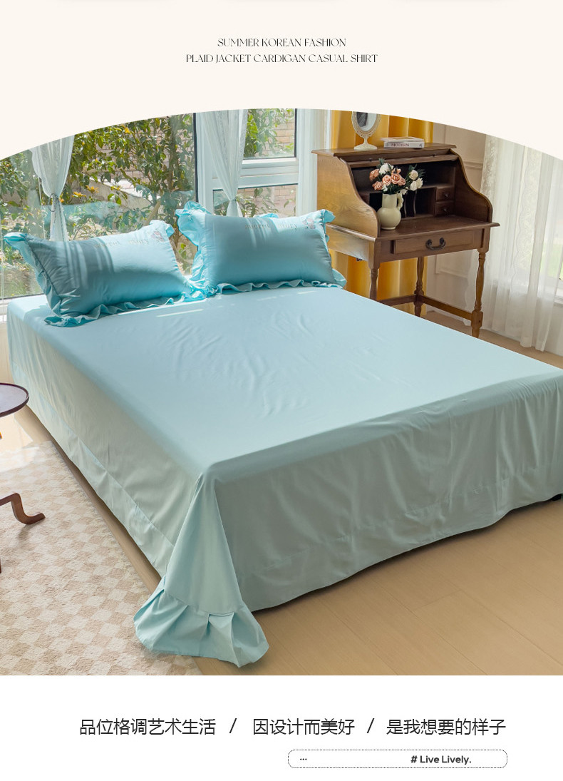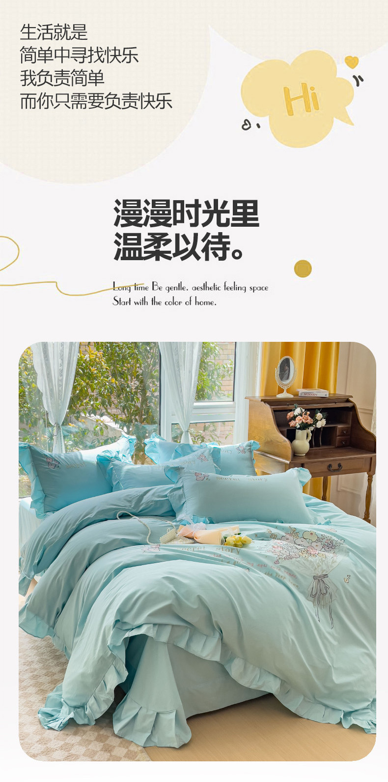 星尚家纺 2024新款全棉水洗棉韩版花边绣花纯棉四件套-馥郁 水绿
