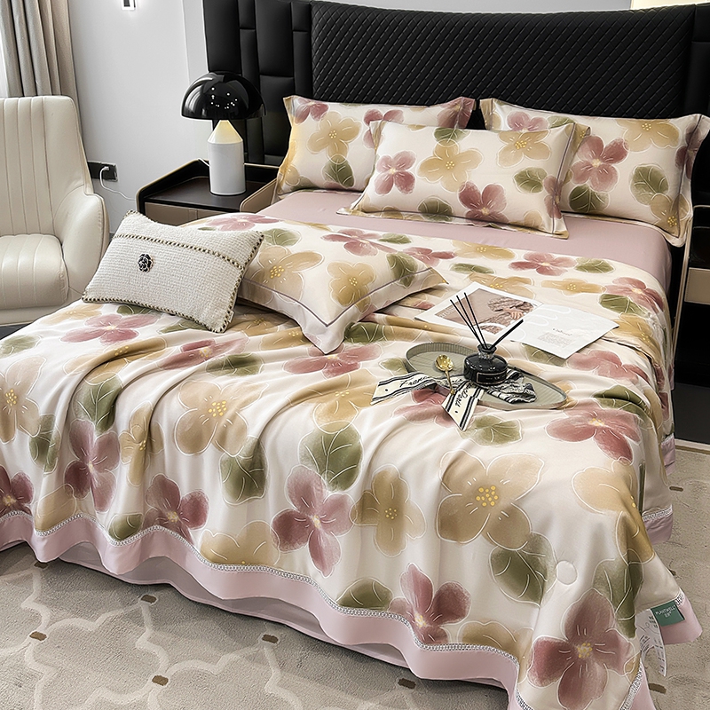 娇逸家居 2025新款50支莱赛尔镂空花边印花天丝夏被 朵颐