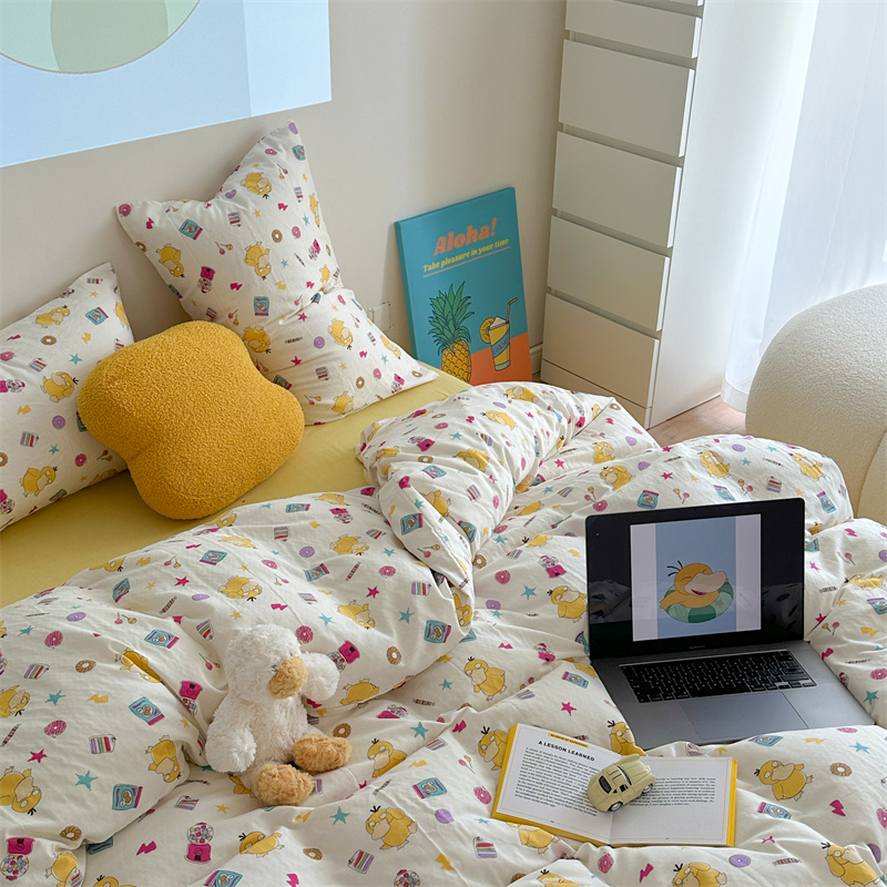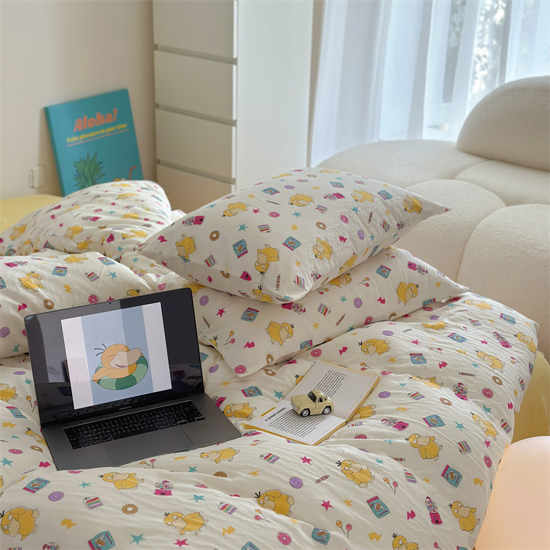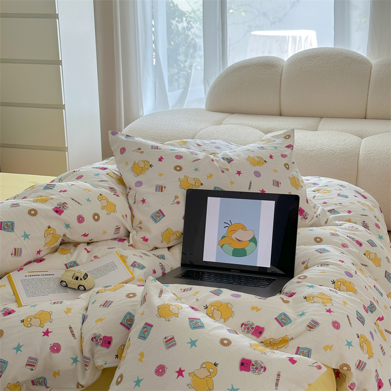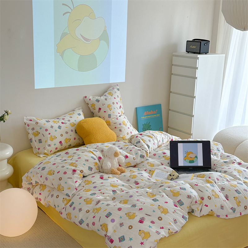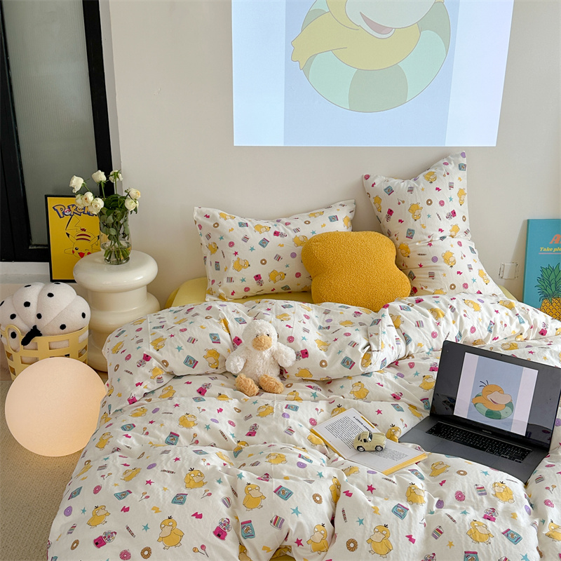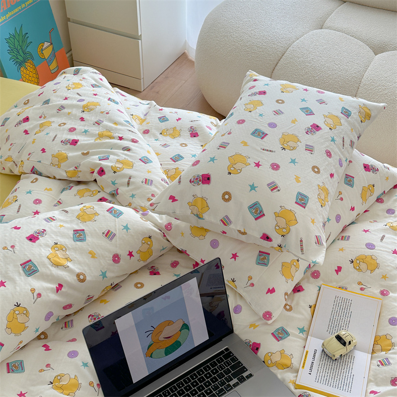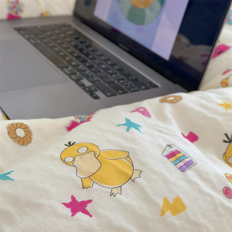 当前位置: 91家纺网 > 商品网购 > 床品套件 > 四件套 > 全棉普通四件套 > 时年 2024新款全棉双层纱四件套-宝可梦系列 可达鸭呀