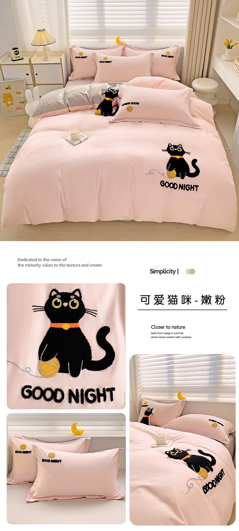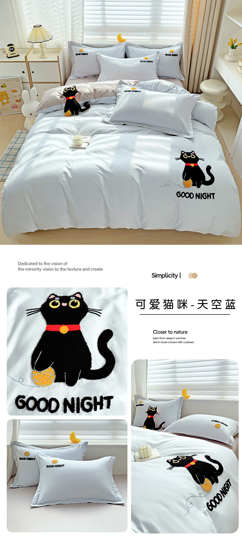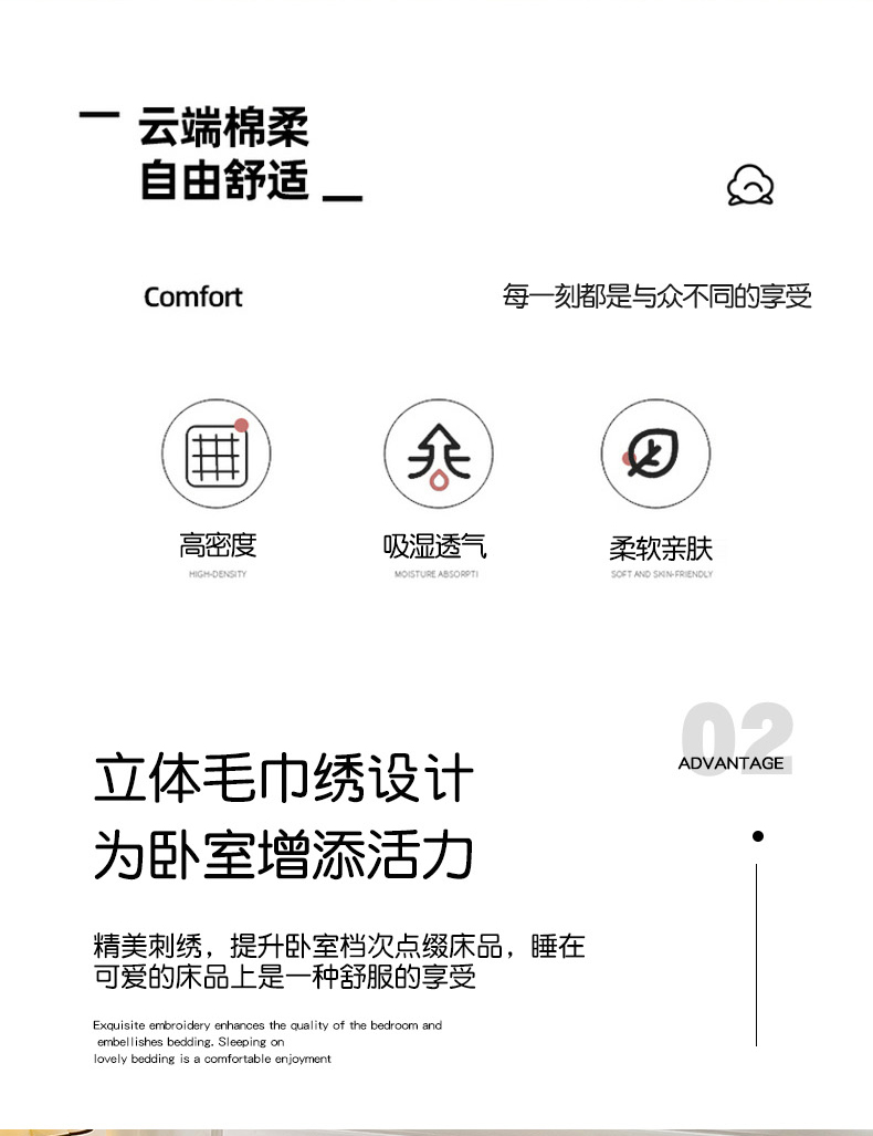 商品名称:娜娜 2024新款全棉亲肤舒适毛巾绣卡通系列四件套 可爱猫咪-奶昔白