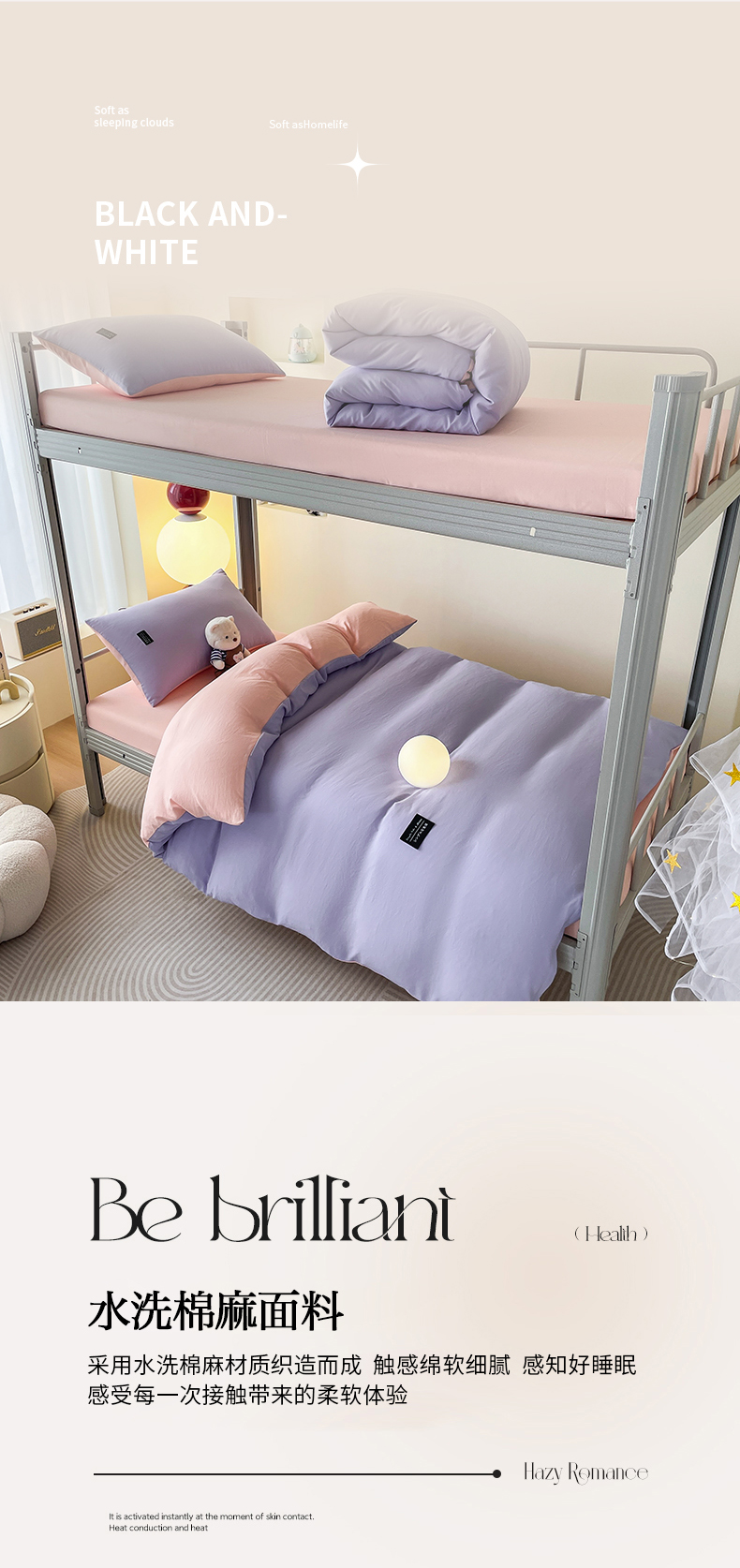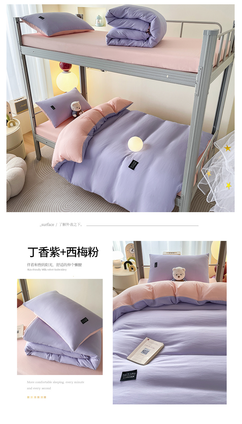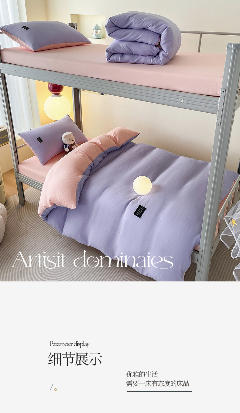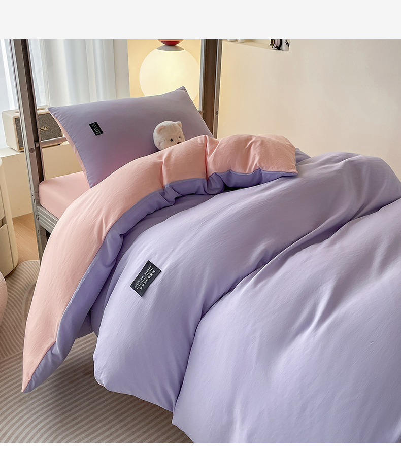 当前位置: 91家纺网 > 商品网购 > 床品套件 > 三件套 > 米瑞娜 2024新款水洗棉麻双拼纯色学生三件套 丁香紫+西梅粉