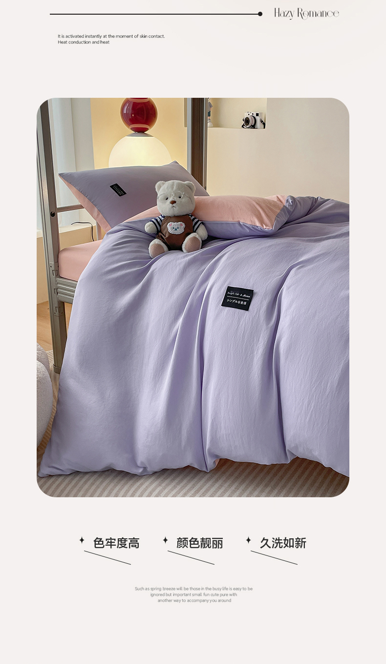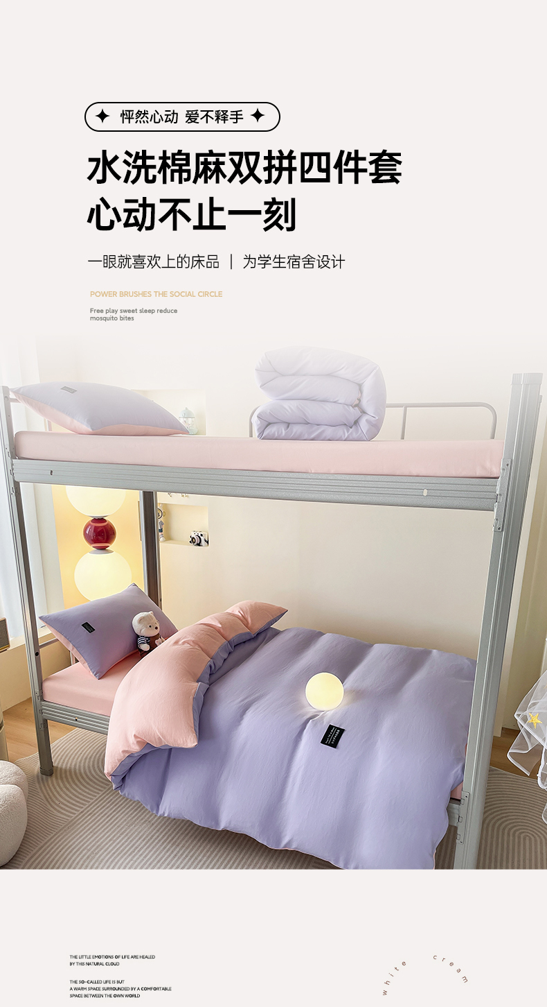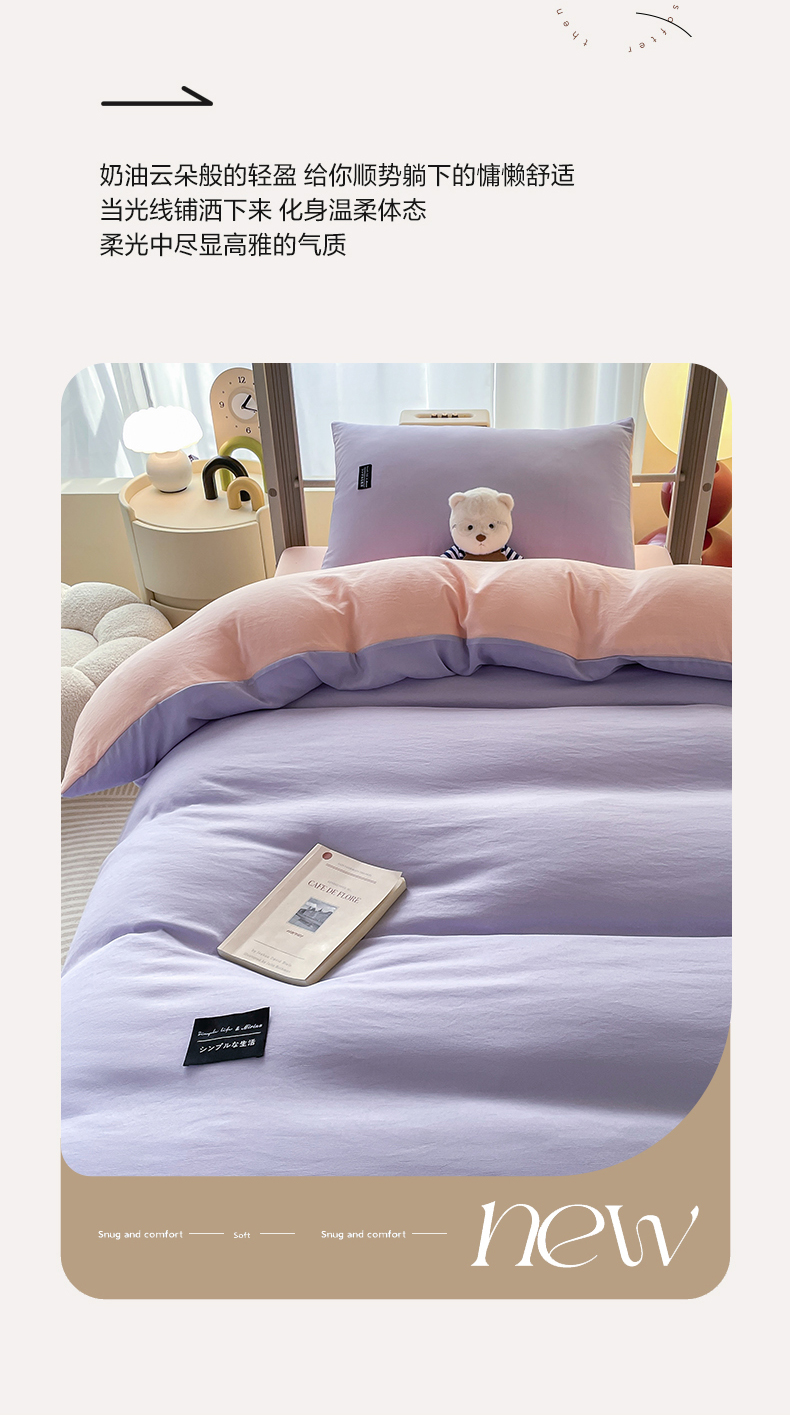 当前位置: 91家纺网 > 商品网购 > 床品套件 > 三件套 > 米瑞娜 2024新款水洗棉麻双拼纯色学生三件套 丁香紫+西梅粉
