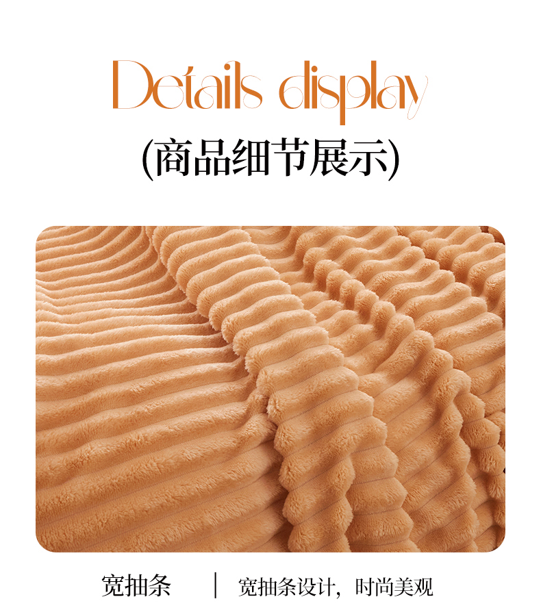 (总)春妮 2024新款兔毛绒宽抽条毛毯,豆沙色,卡其色,奶油白,暖阳橘,青灰色,深咖色,雾霾灰,曜石黑