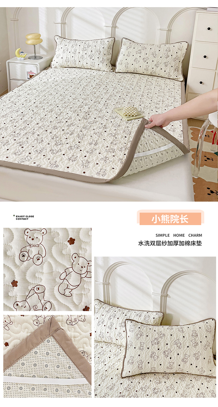 纽缦家纺 水洗双层纱加厚加棉床垫 小熊院长