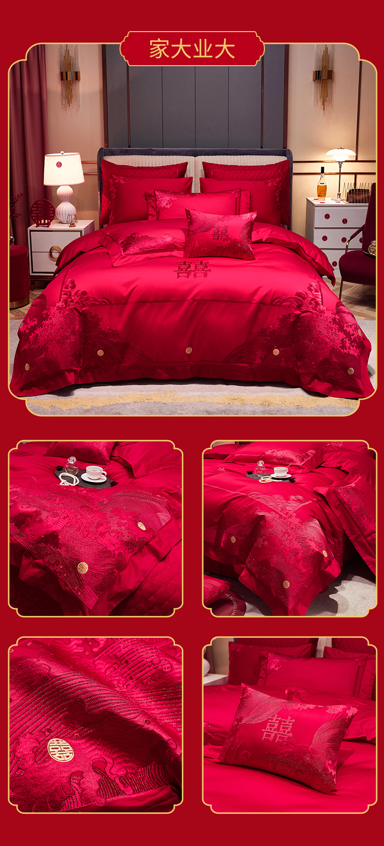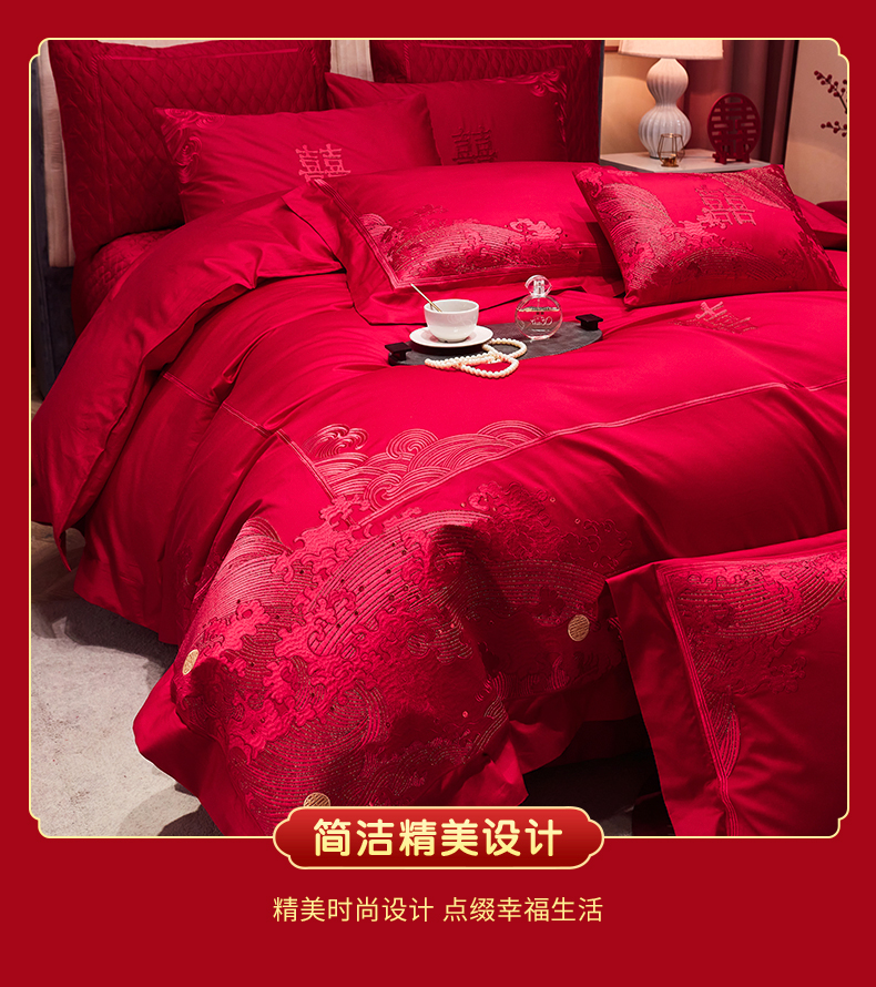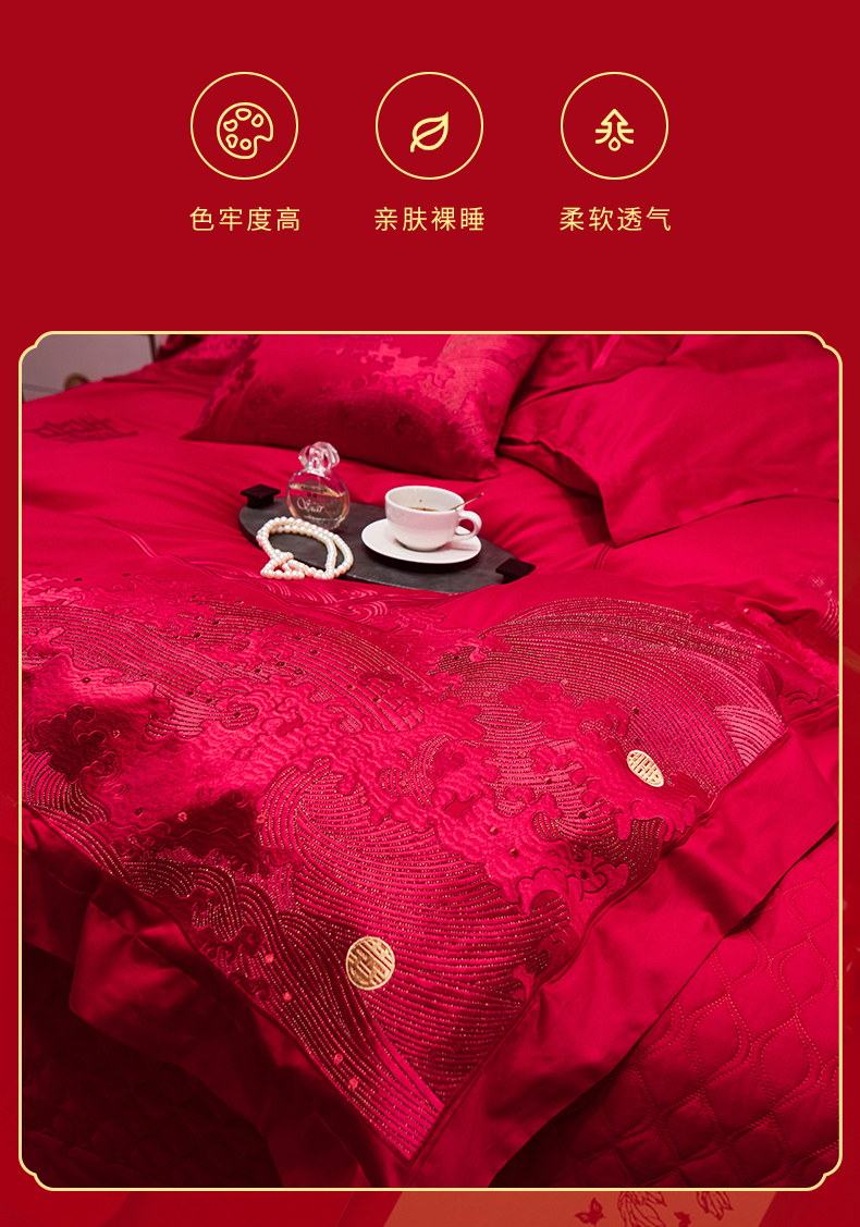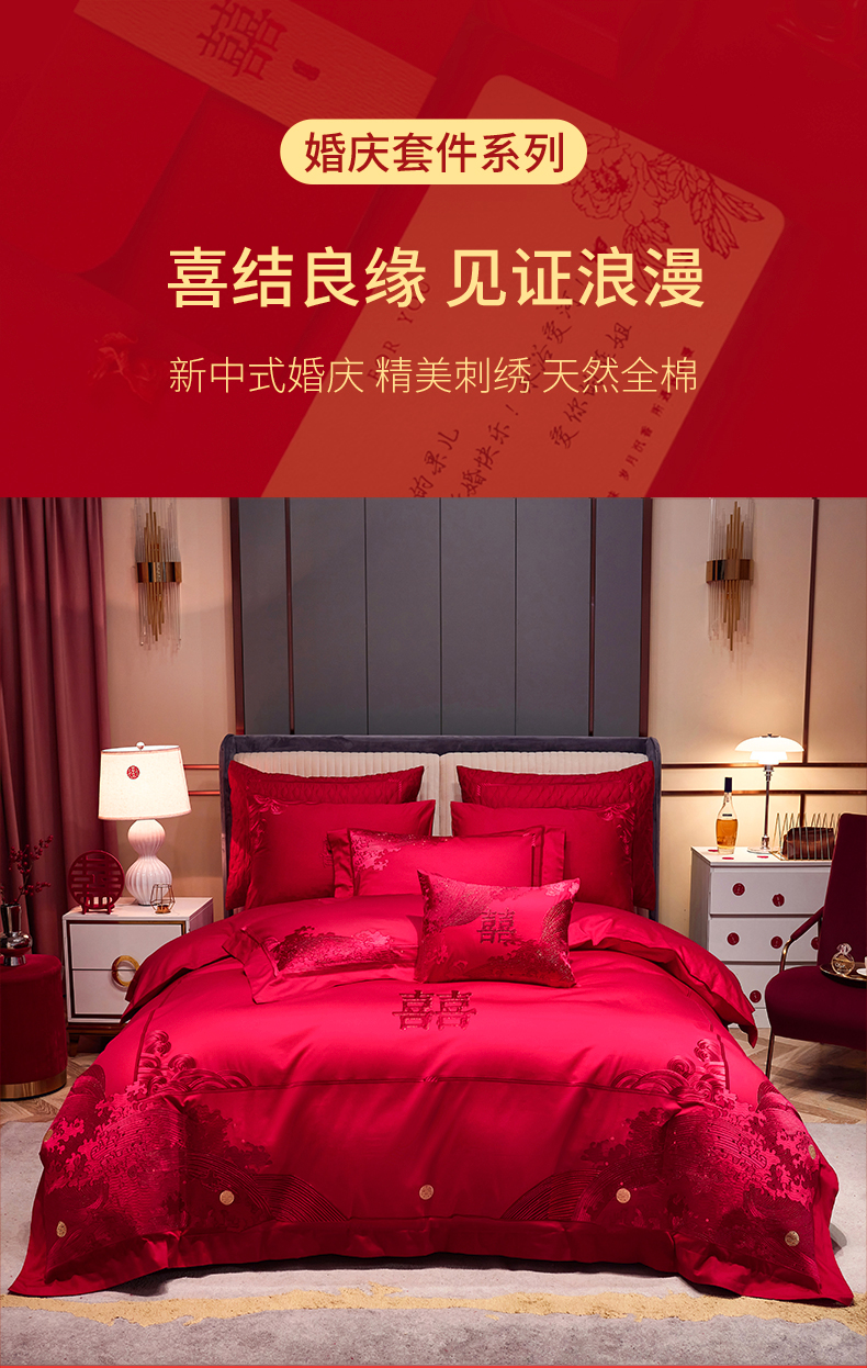 当前位置: 91家纺网 > 商品网购 > 床品套件 > 四件套 > 婚庆四件套 > 美娘阁 2025新款长绒棉贡缎提花古典新中式奢华精美刺绣四件套系列二 一往情深